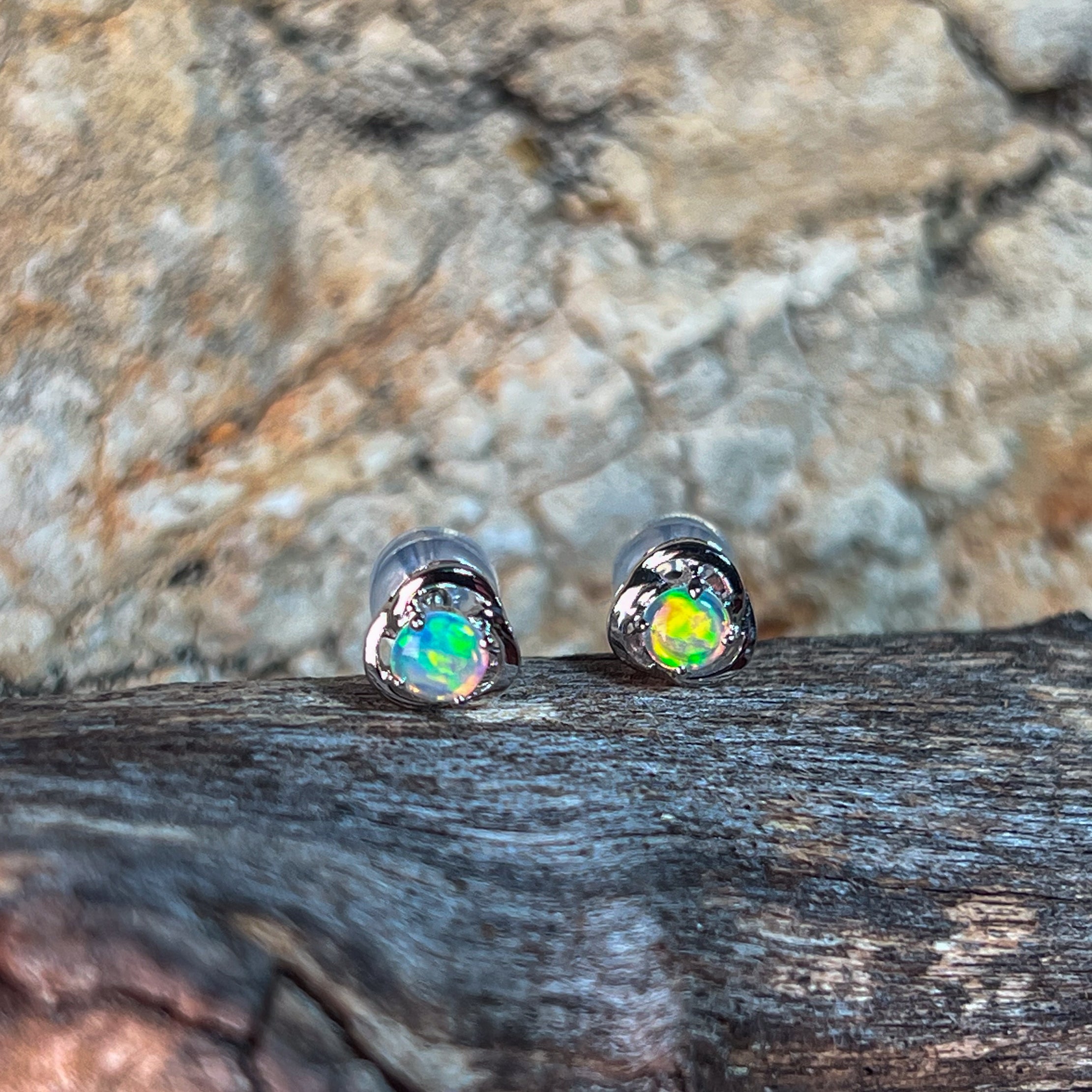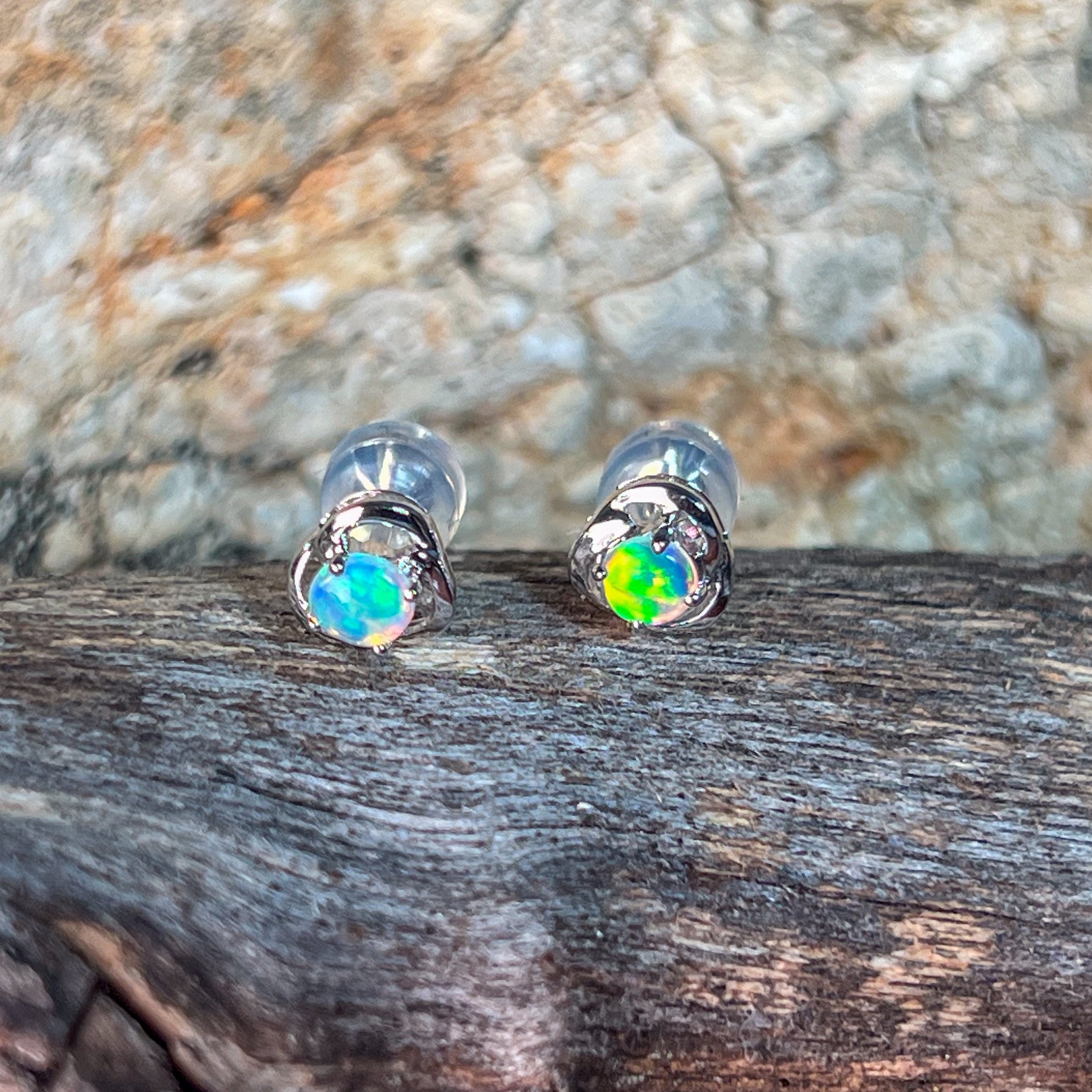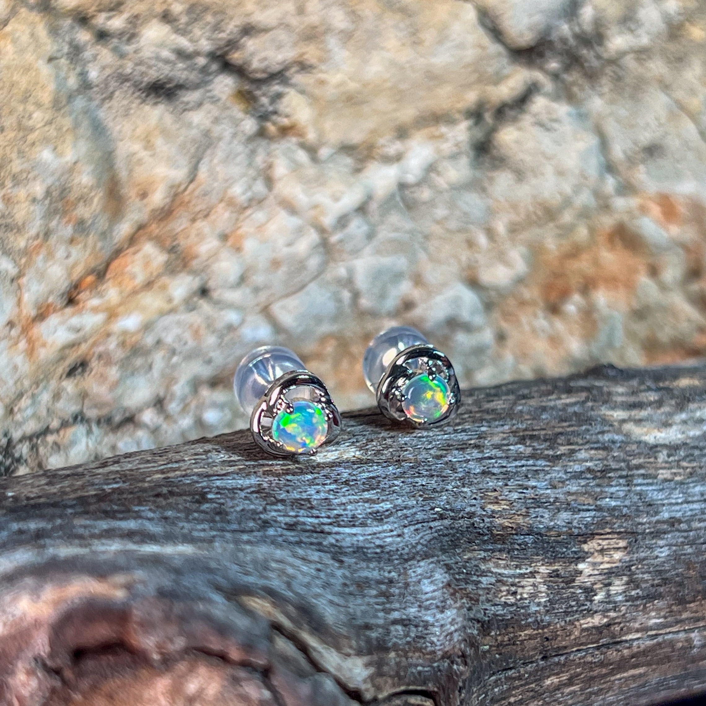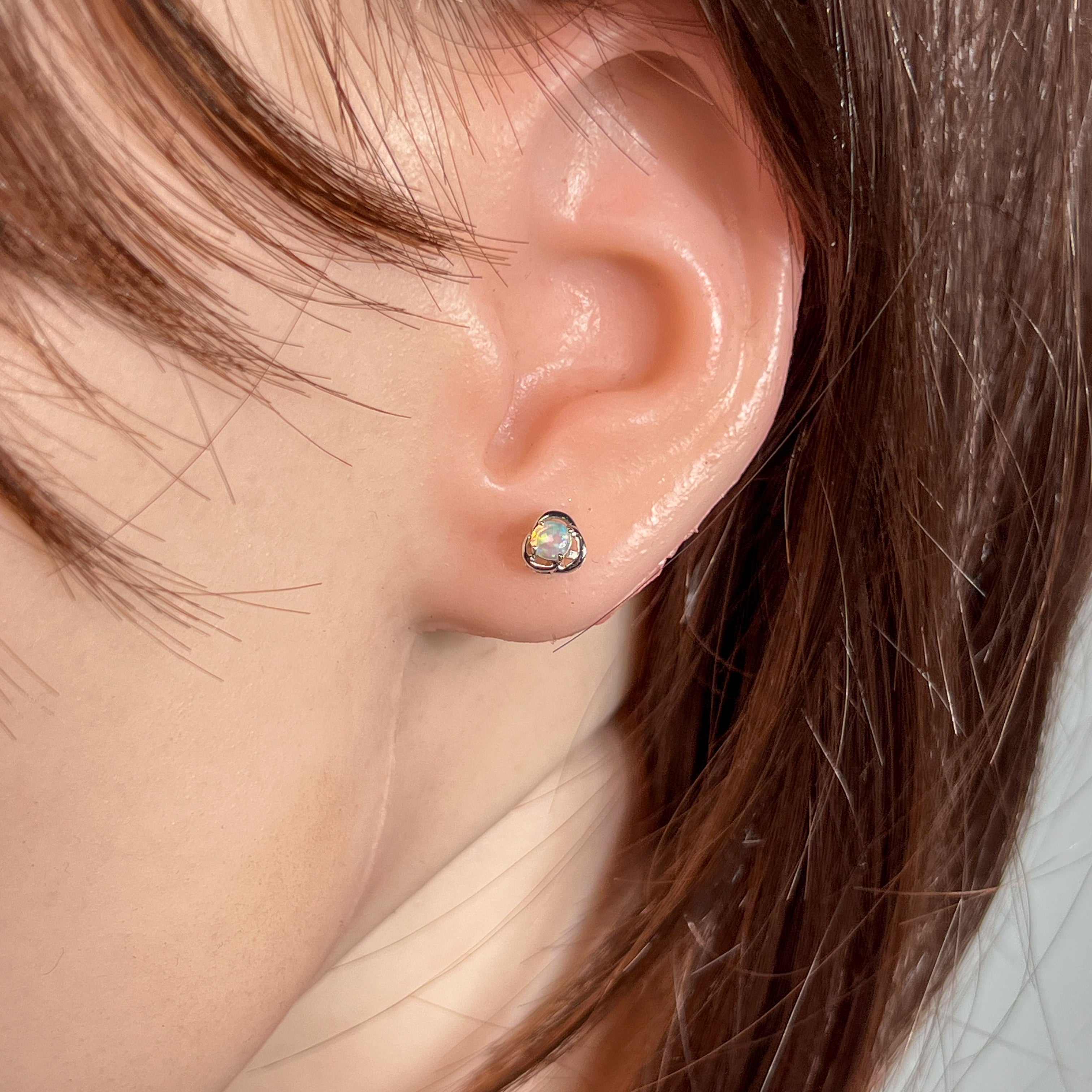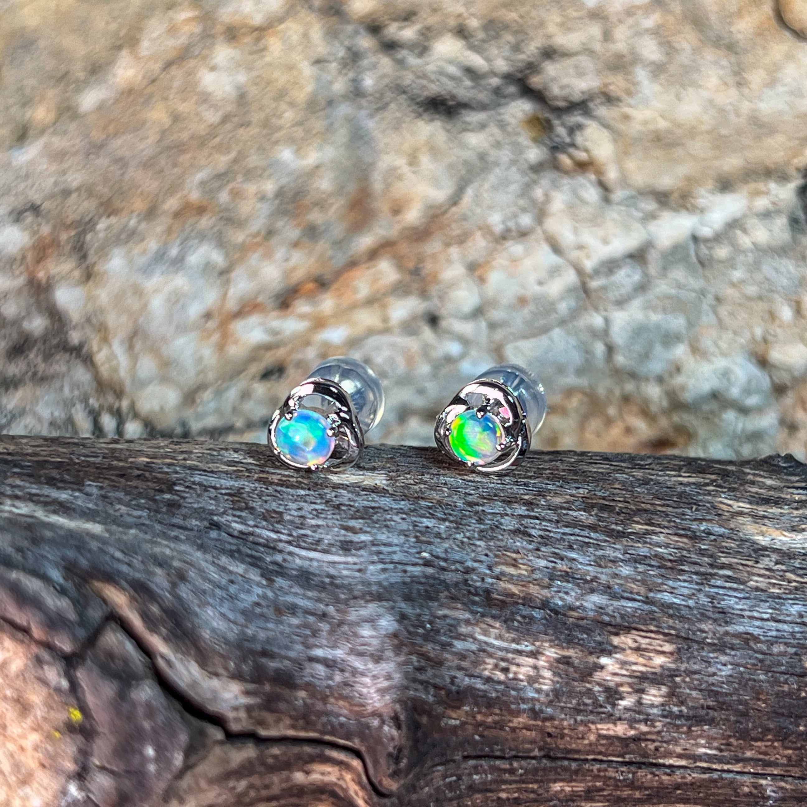 One pair of 14kt White gold Opal Round cut shape claw drop circle style studs