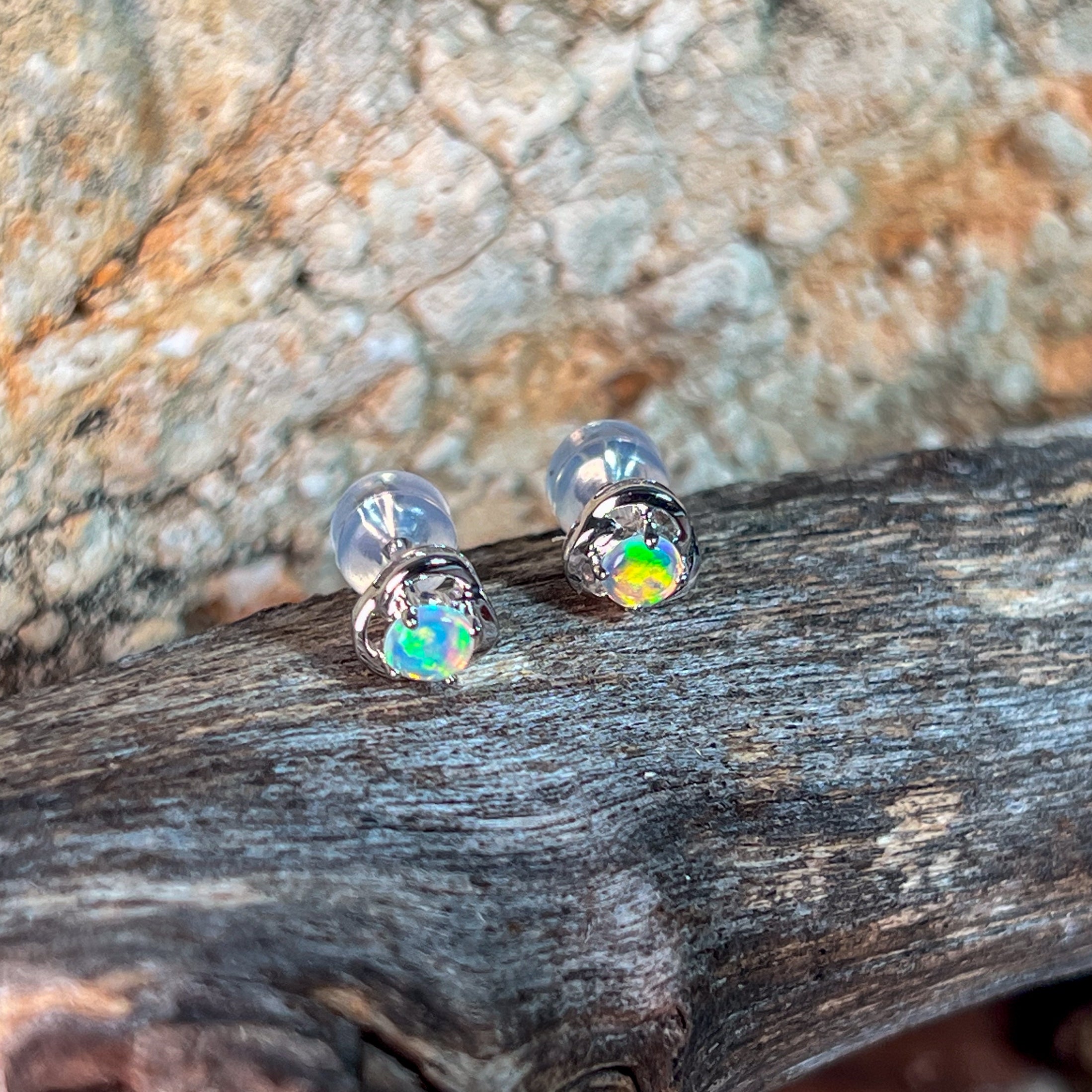 14kt White gold short dangle 3mm Crystal Opal circle studs