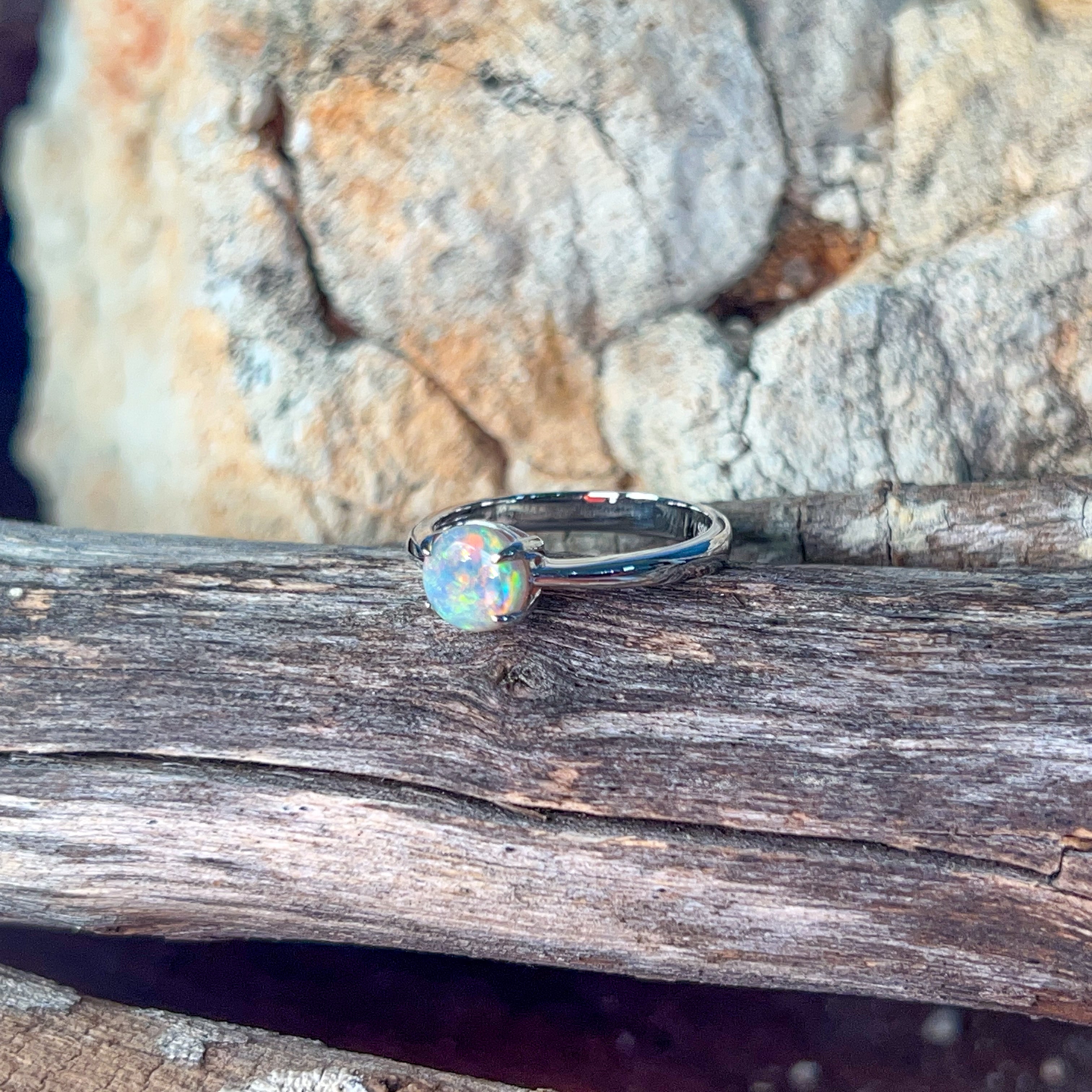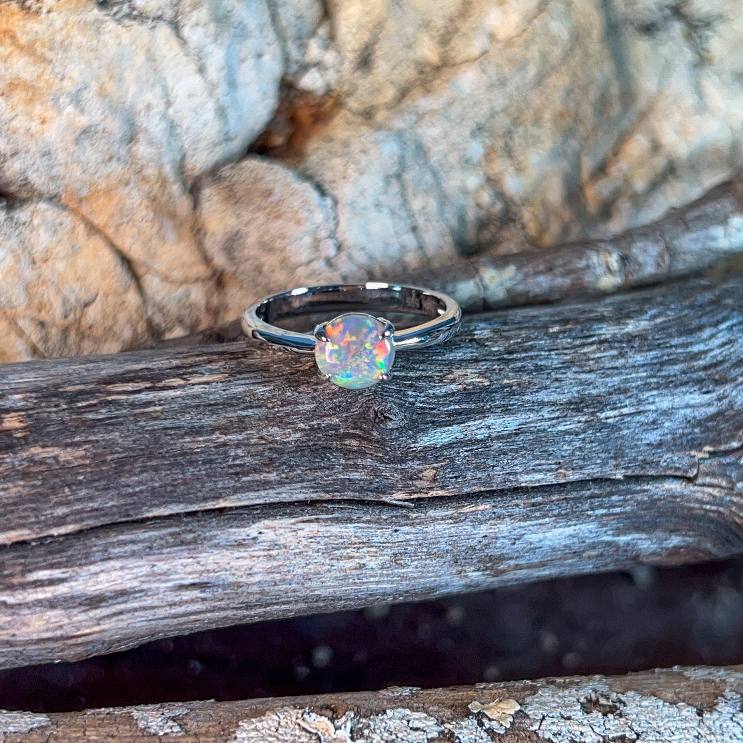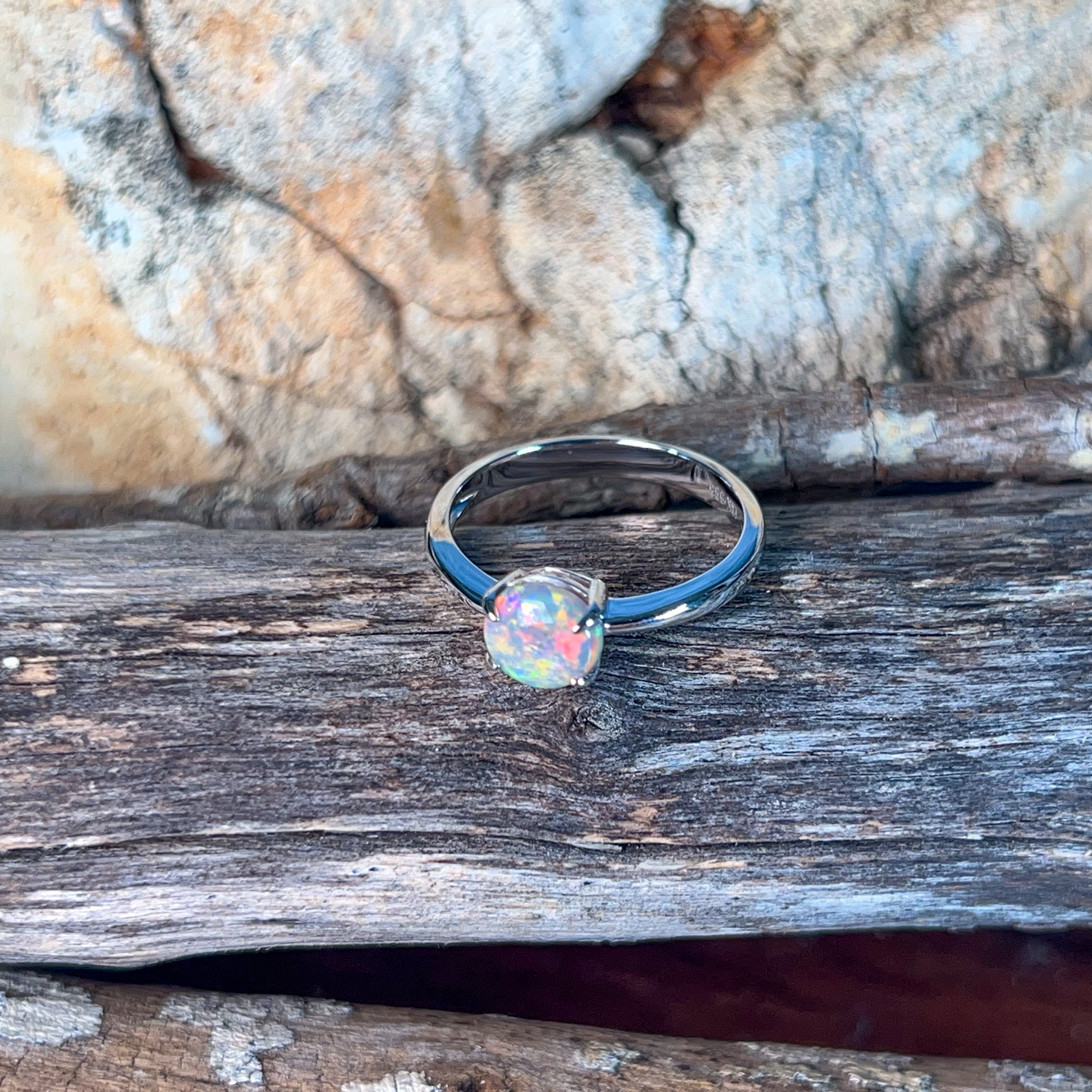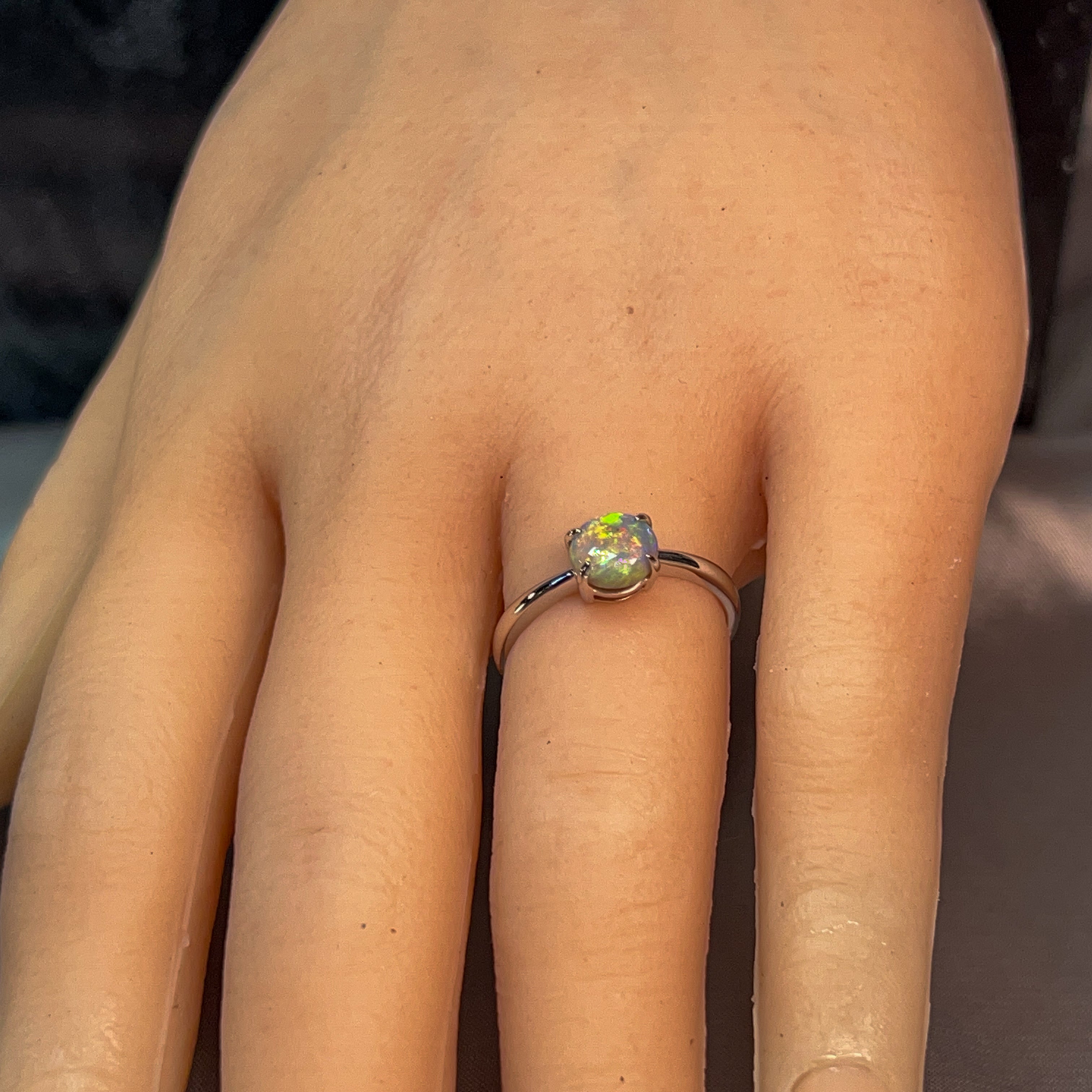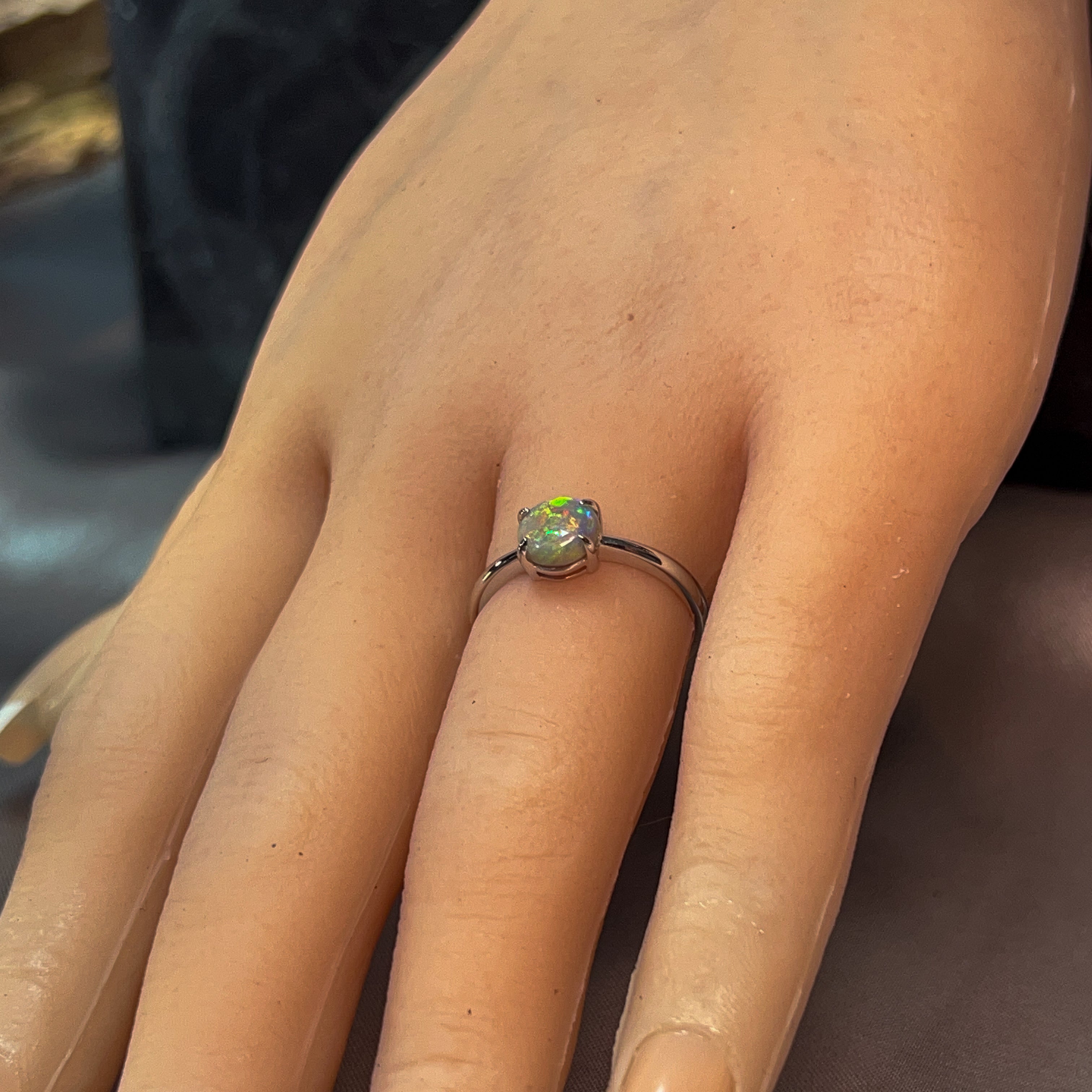 14kt White Gold solitaire Black Opal 0.8ct ring