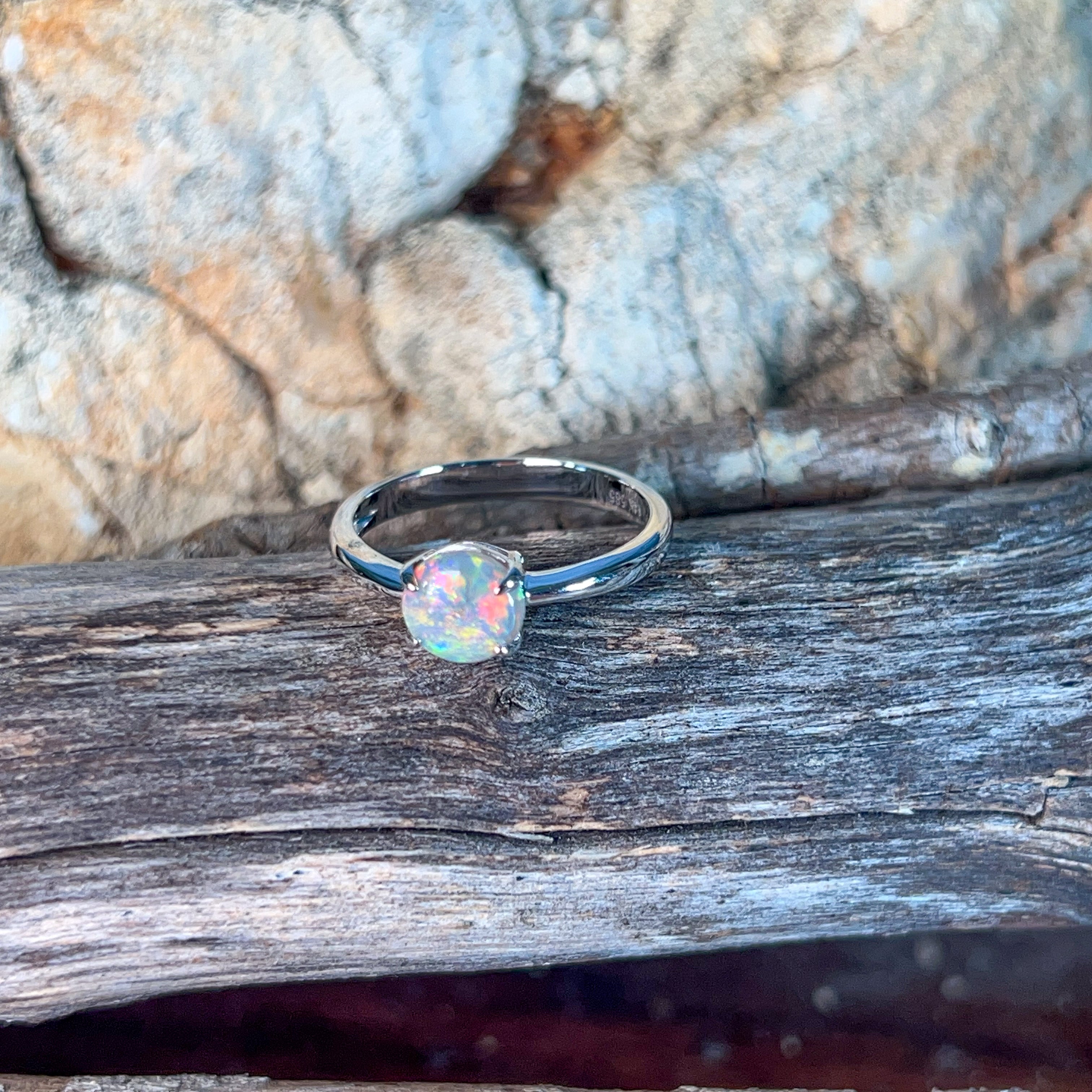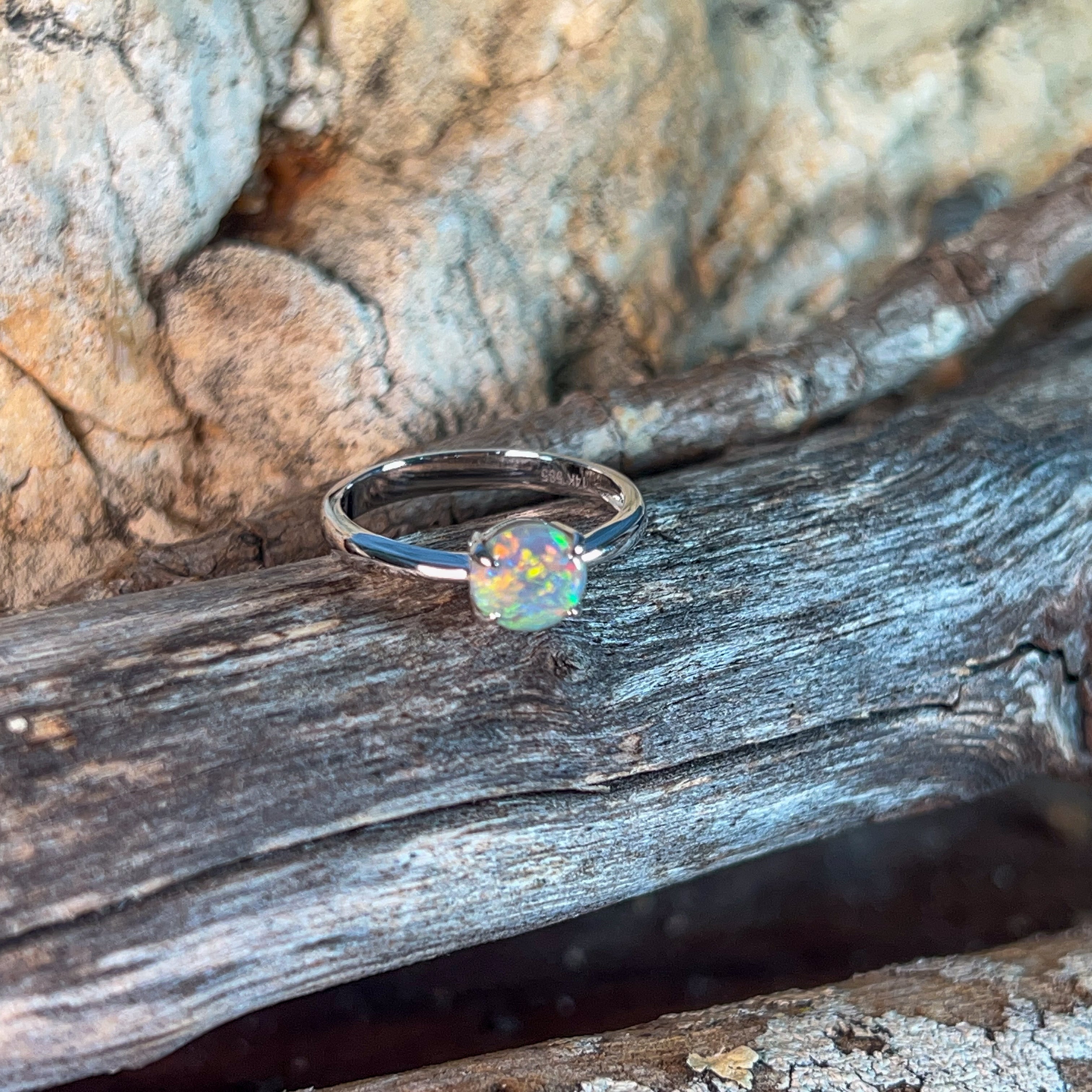 Discover timeless elegance with this stunning 14kt white gold solitaire ring, showcasing a captivating 0.8ct black opal as its centrepiece. The deep, mesmerising play of colour in the opal is beautifully enhanced by the lustrous white gold setting, creating a sophisticated piece that commands attention. Black opals are among the world's most precious gemstones, prized for their rarity and unique light-reflecting properties. This classic solitaire design ensures your opal takes centre stage, making it an ideal choice for an engagement ring, special occasion, or a luxurious addition to your jewellery collection. Crafted with precision and care, this ring combines investment-quality gemstone with enduring design.