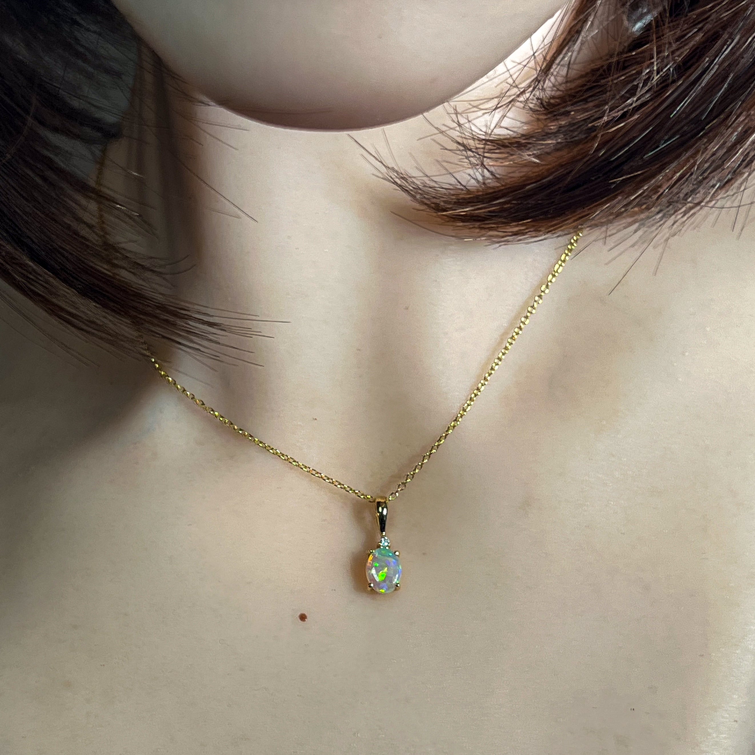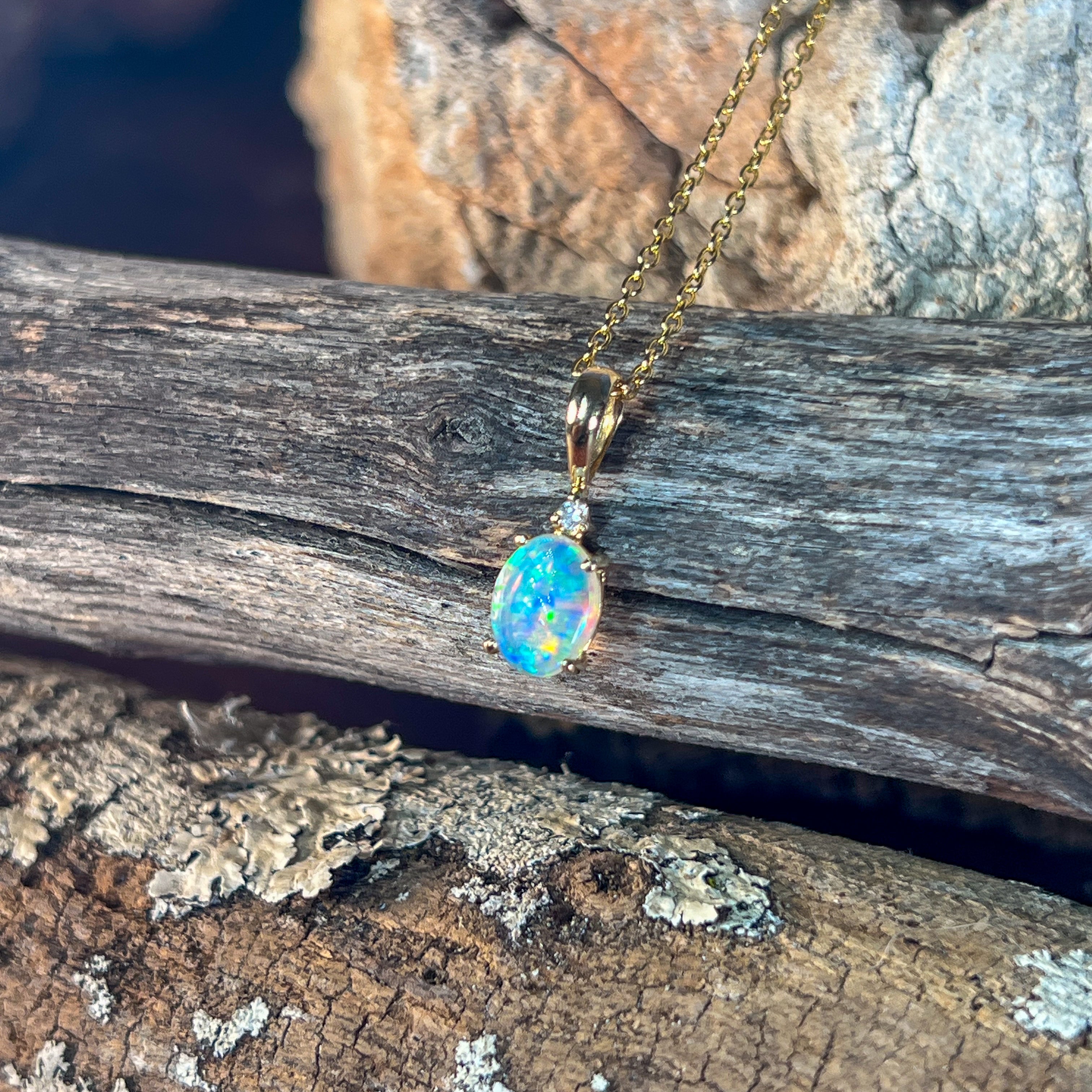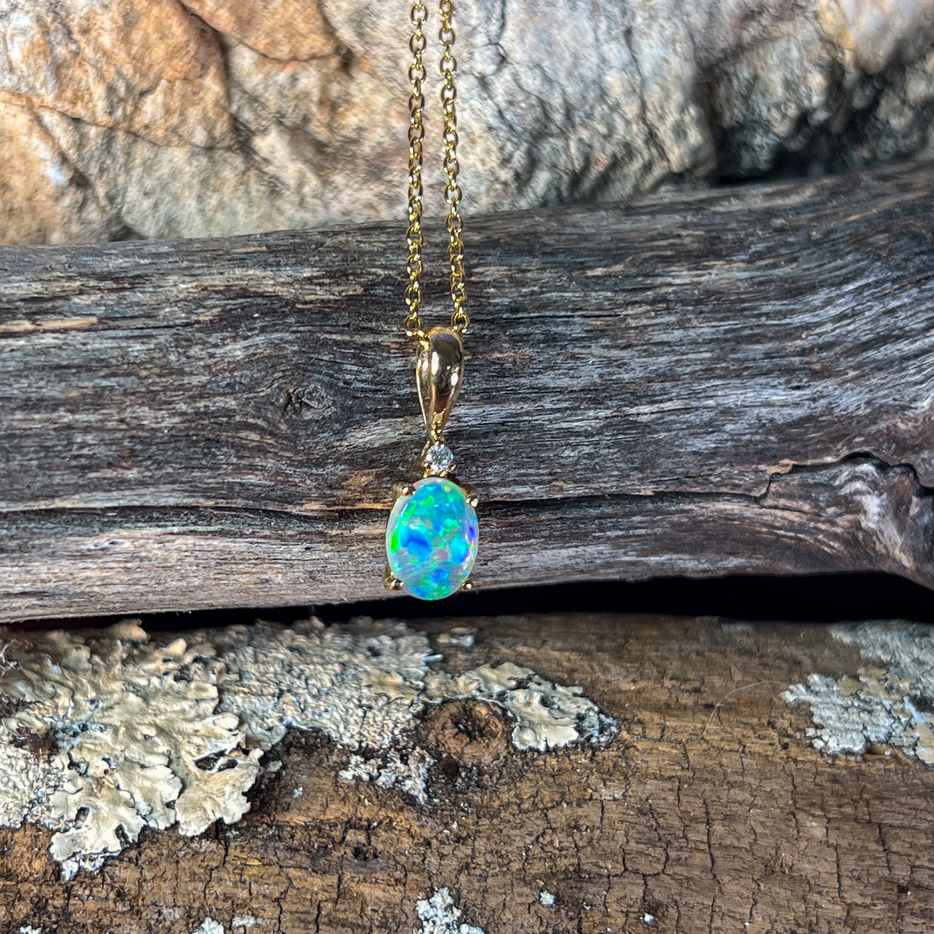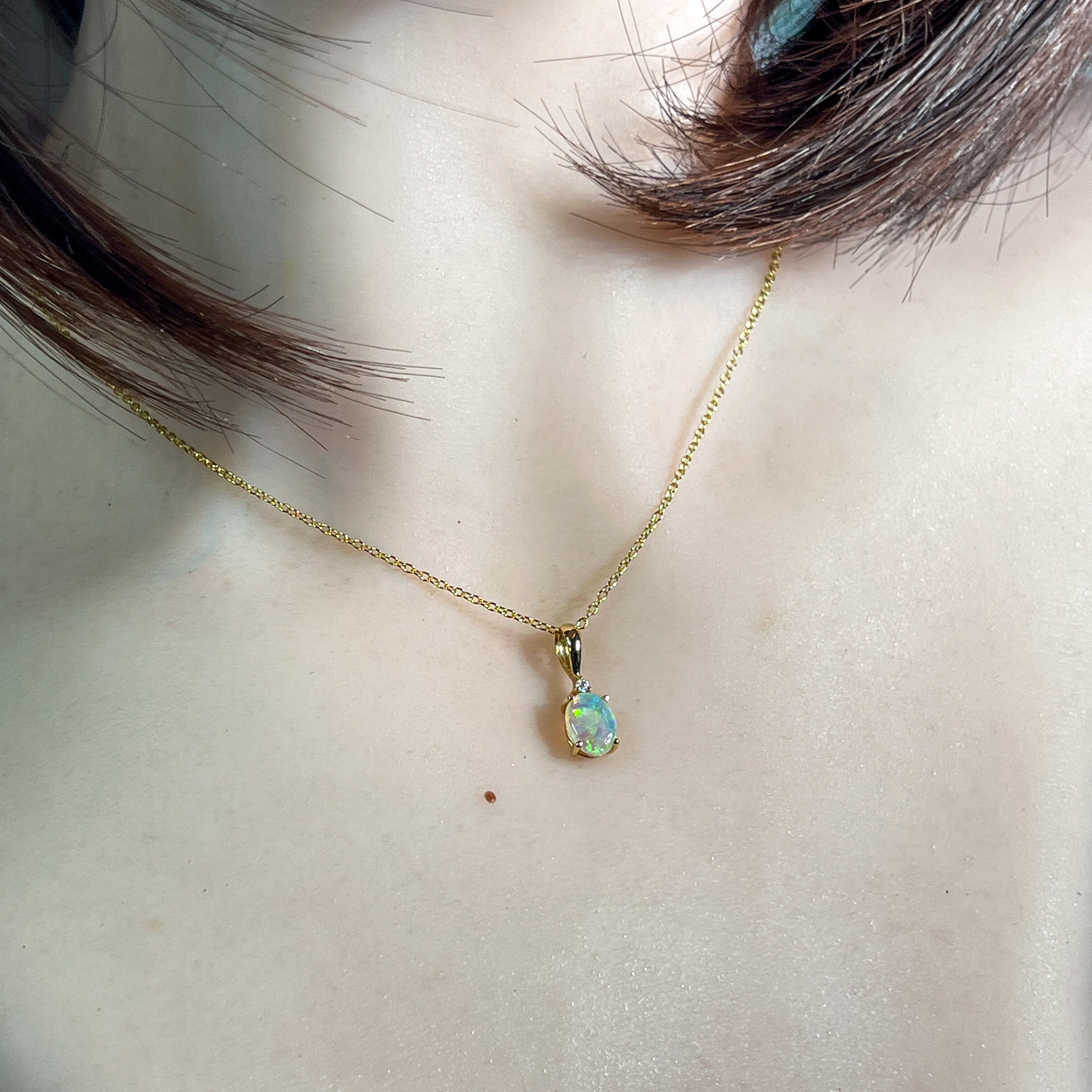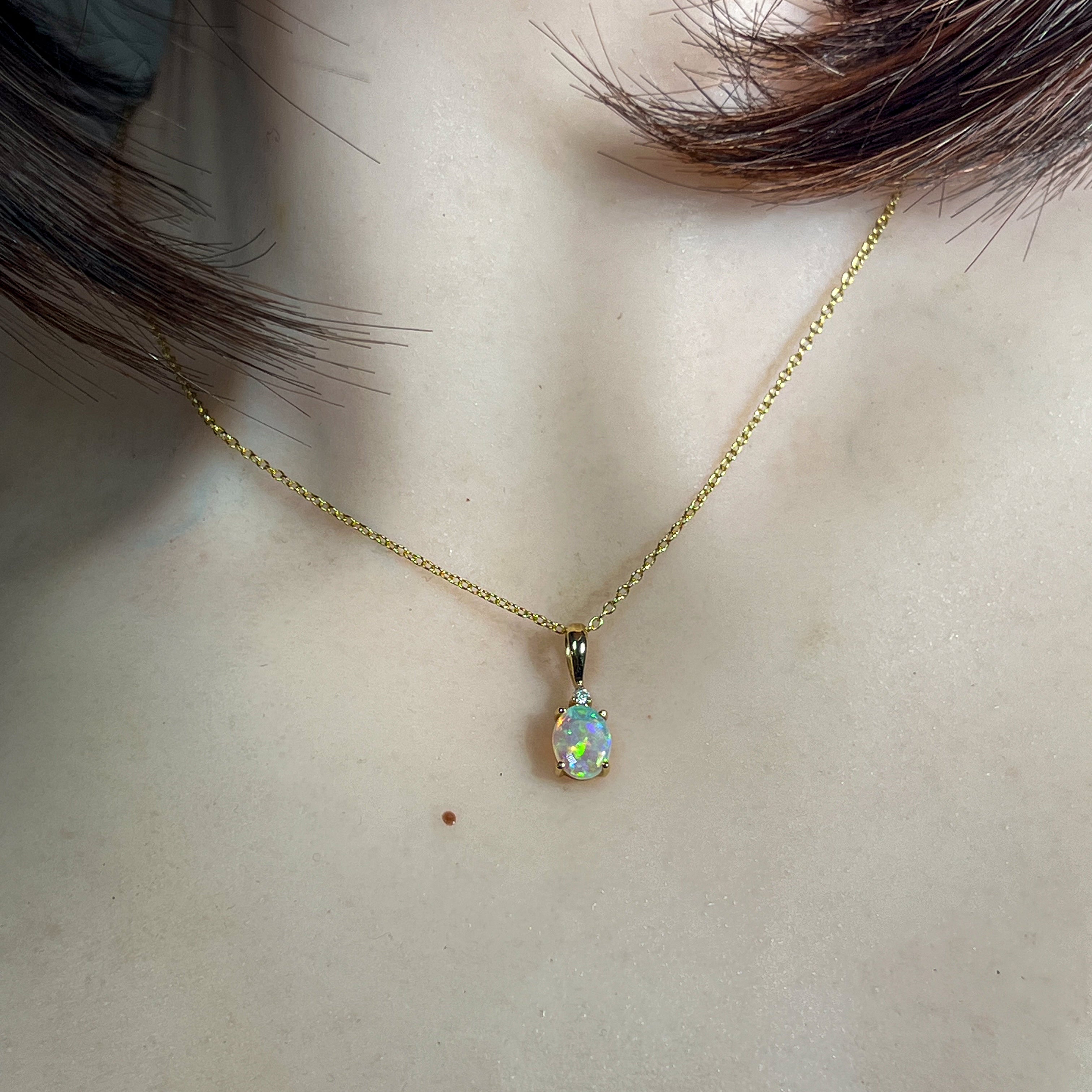 14kt Yellow Gold 8x6mm Crystal Opal and diamond pendant