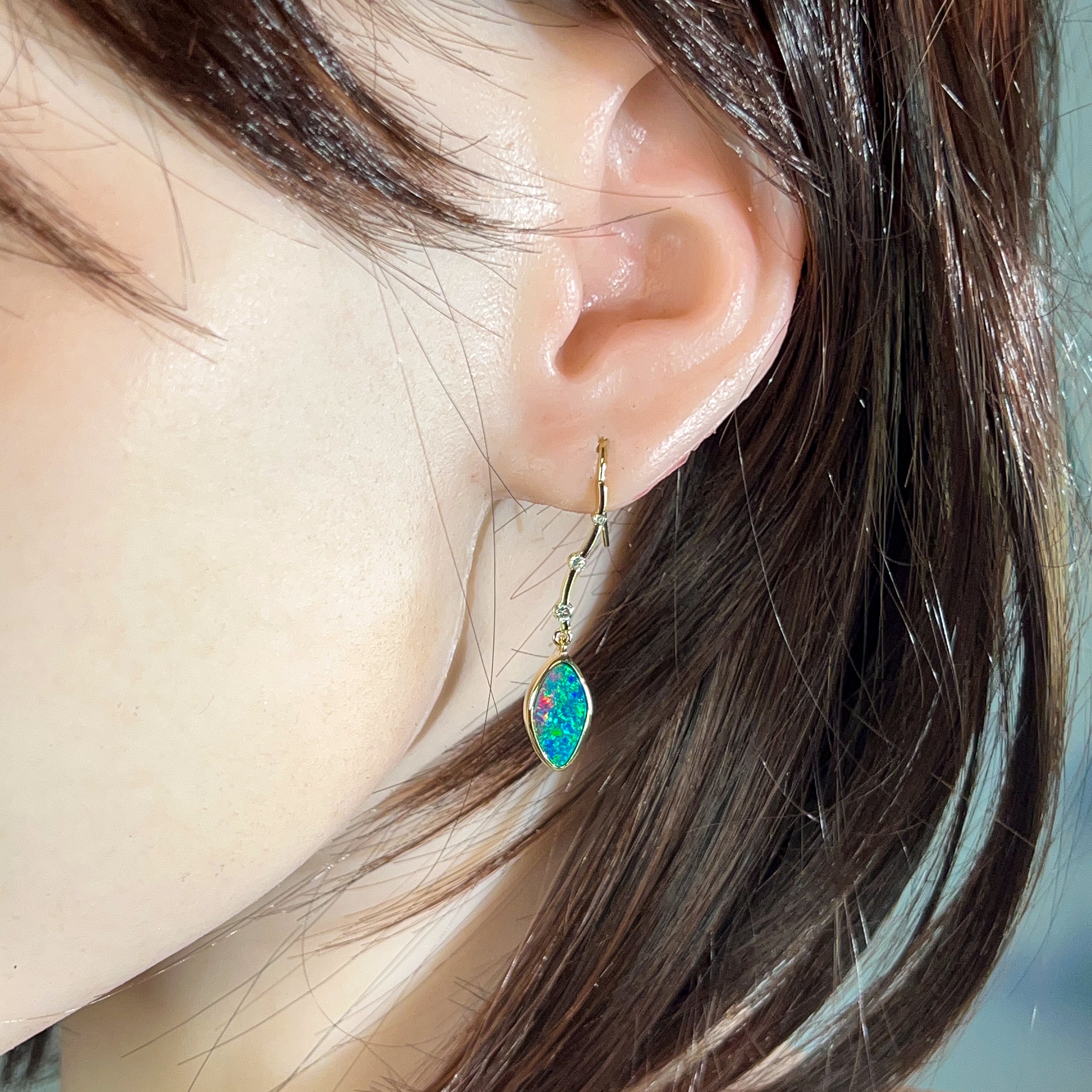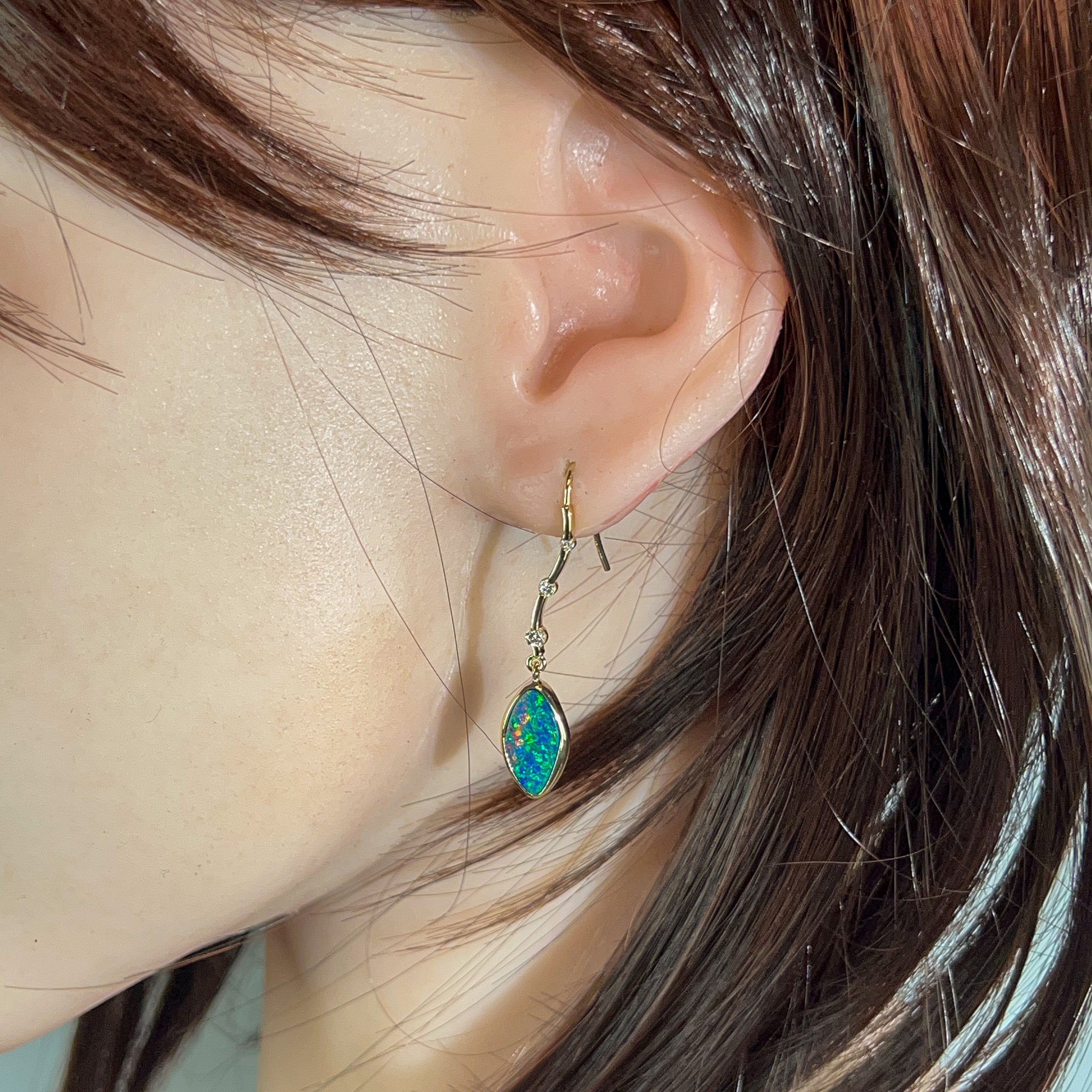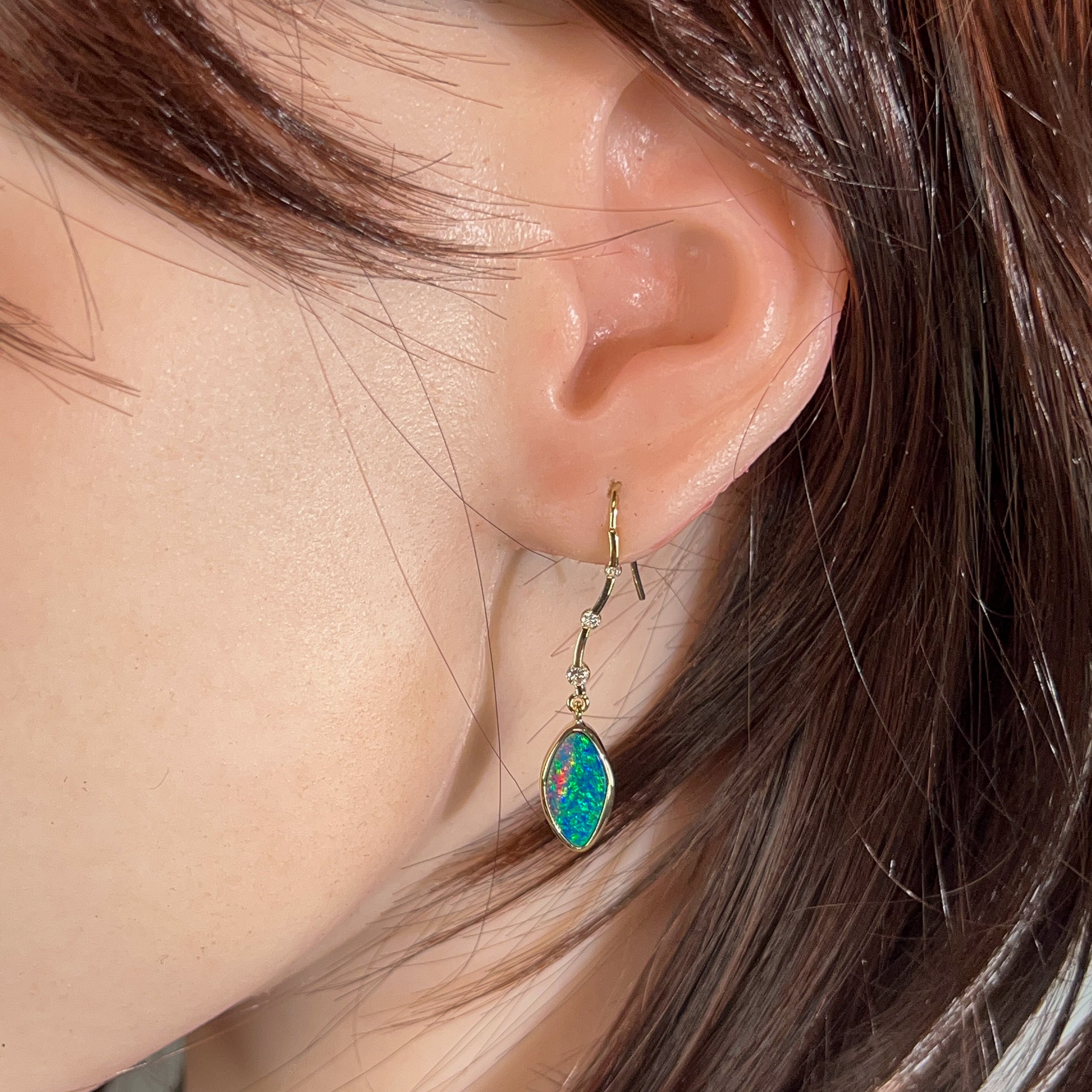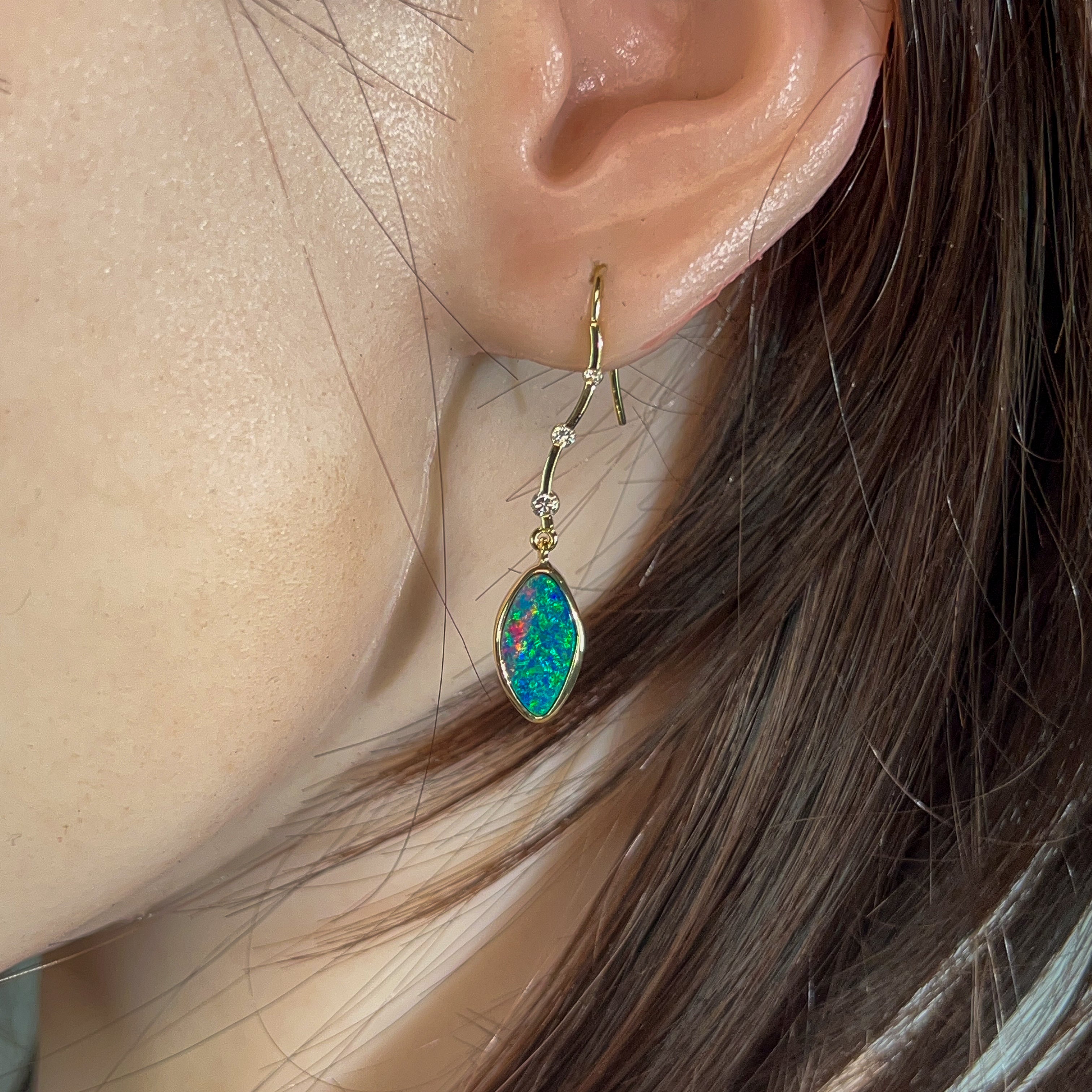 14kt Yellow Gold dangling wave earrings Opal doublet set