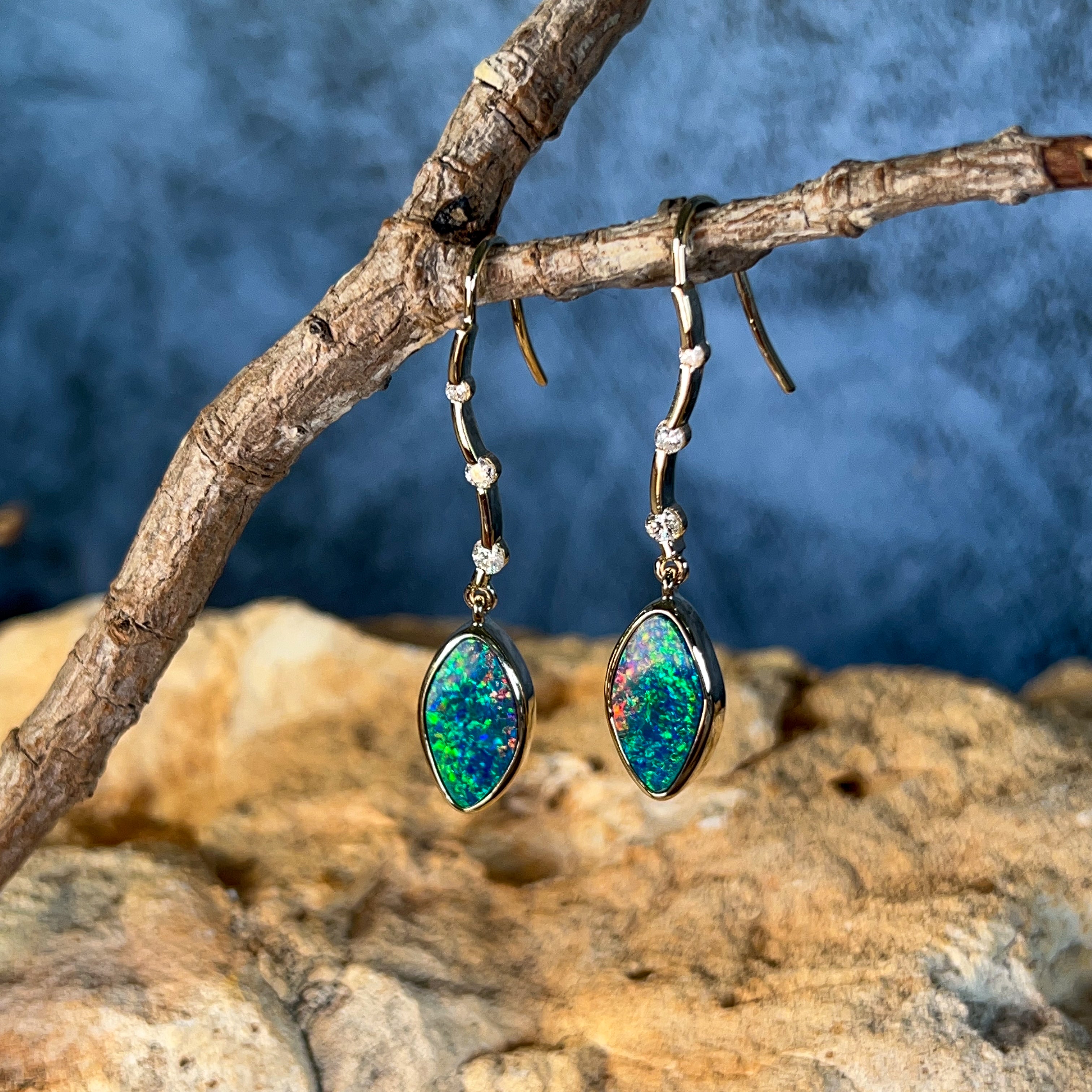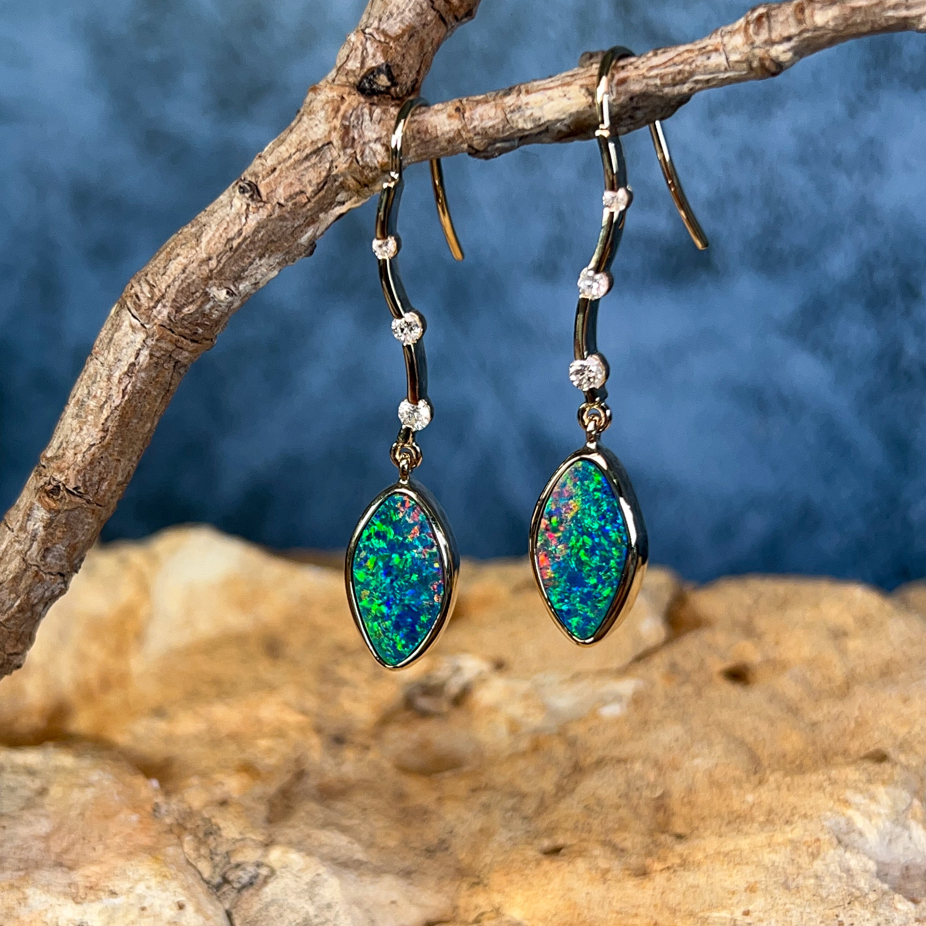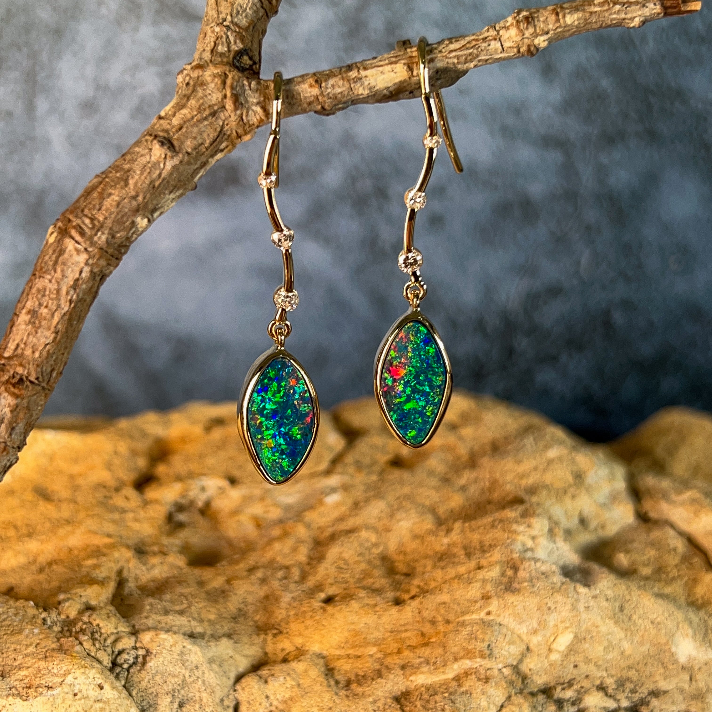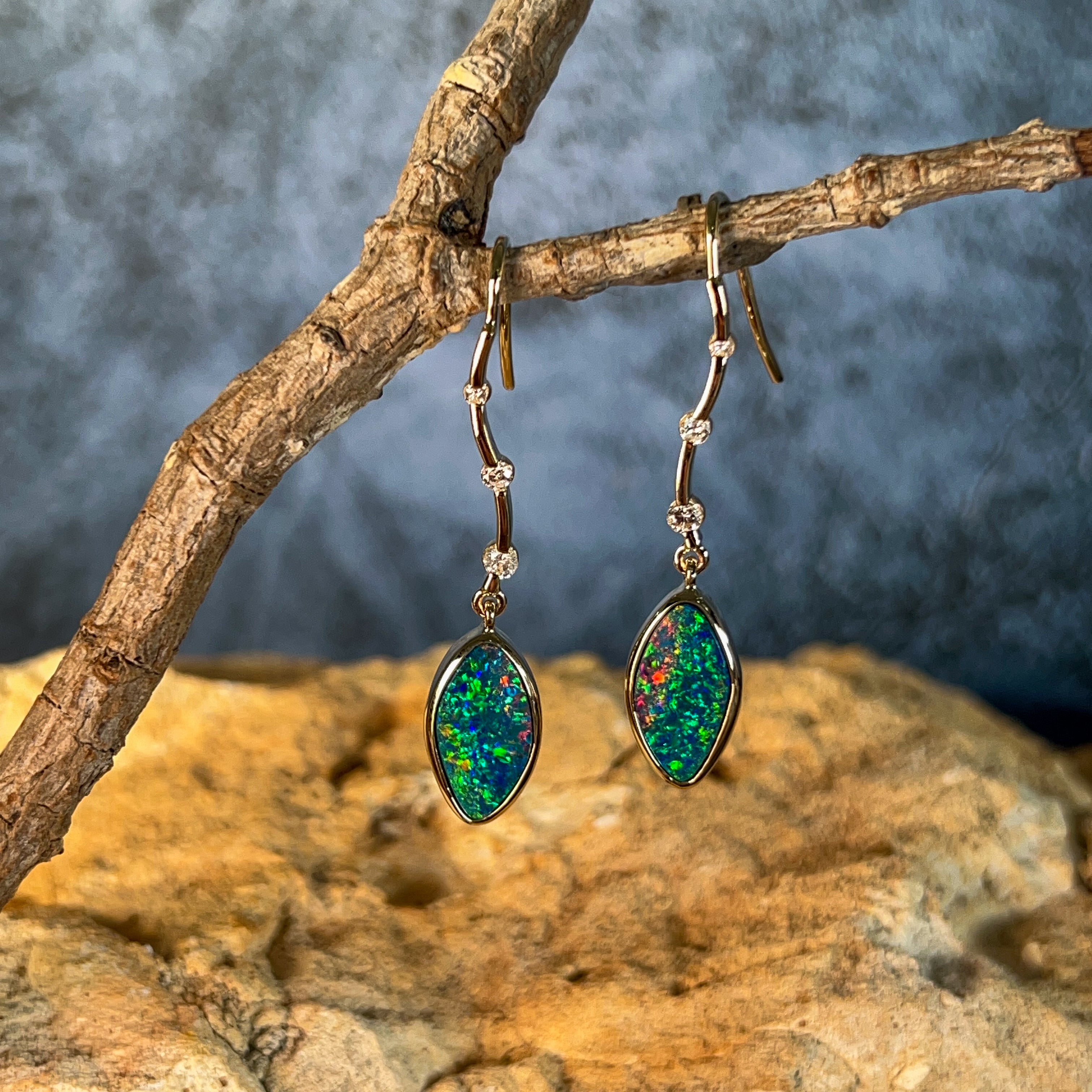 14kt Yellow Gold dangling wave earrings Opal doublet set