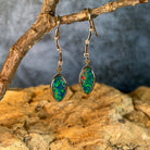One pair of 14kt Yellow Gold bezel set Opal earrings dangling