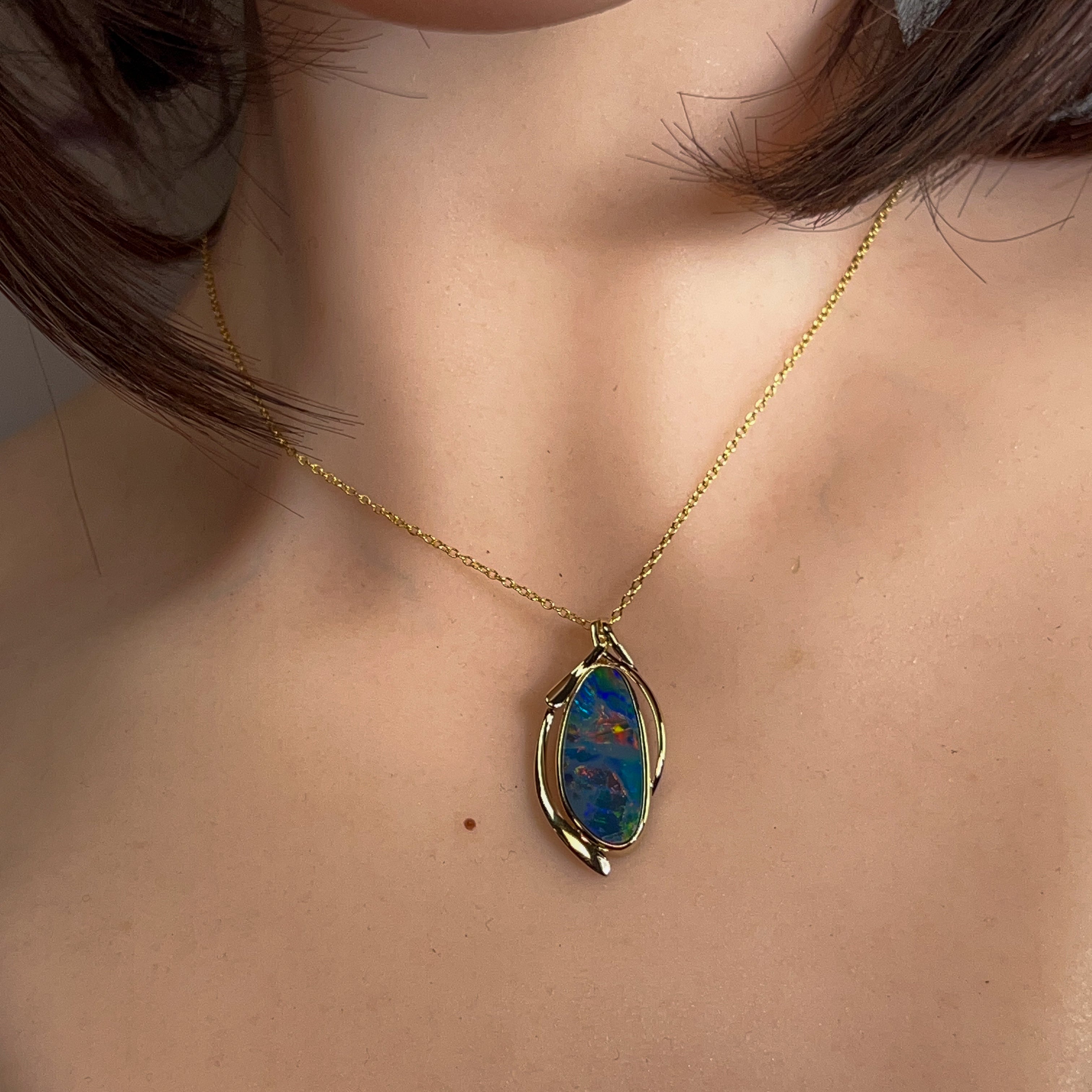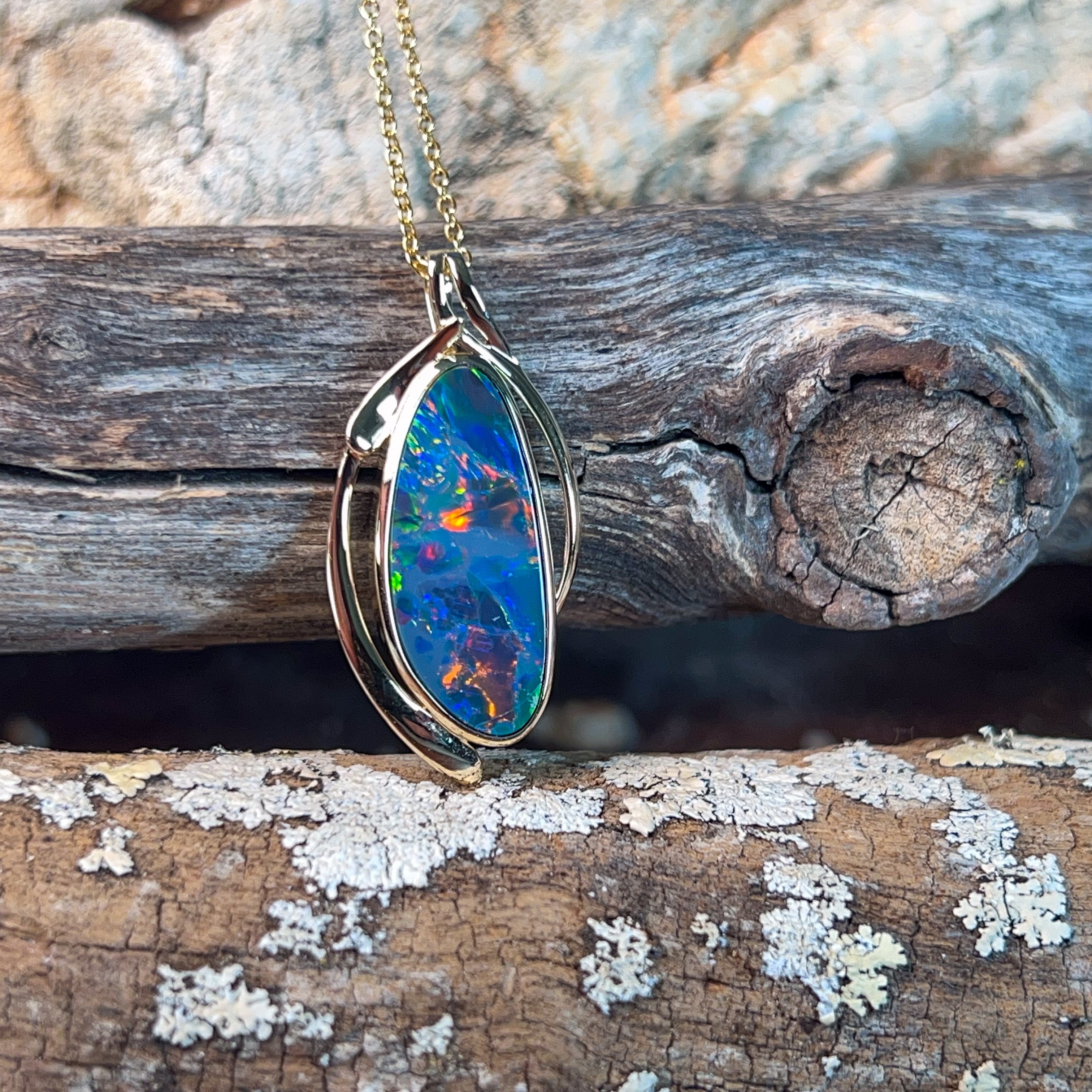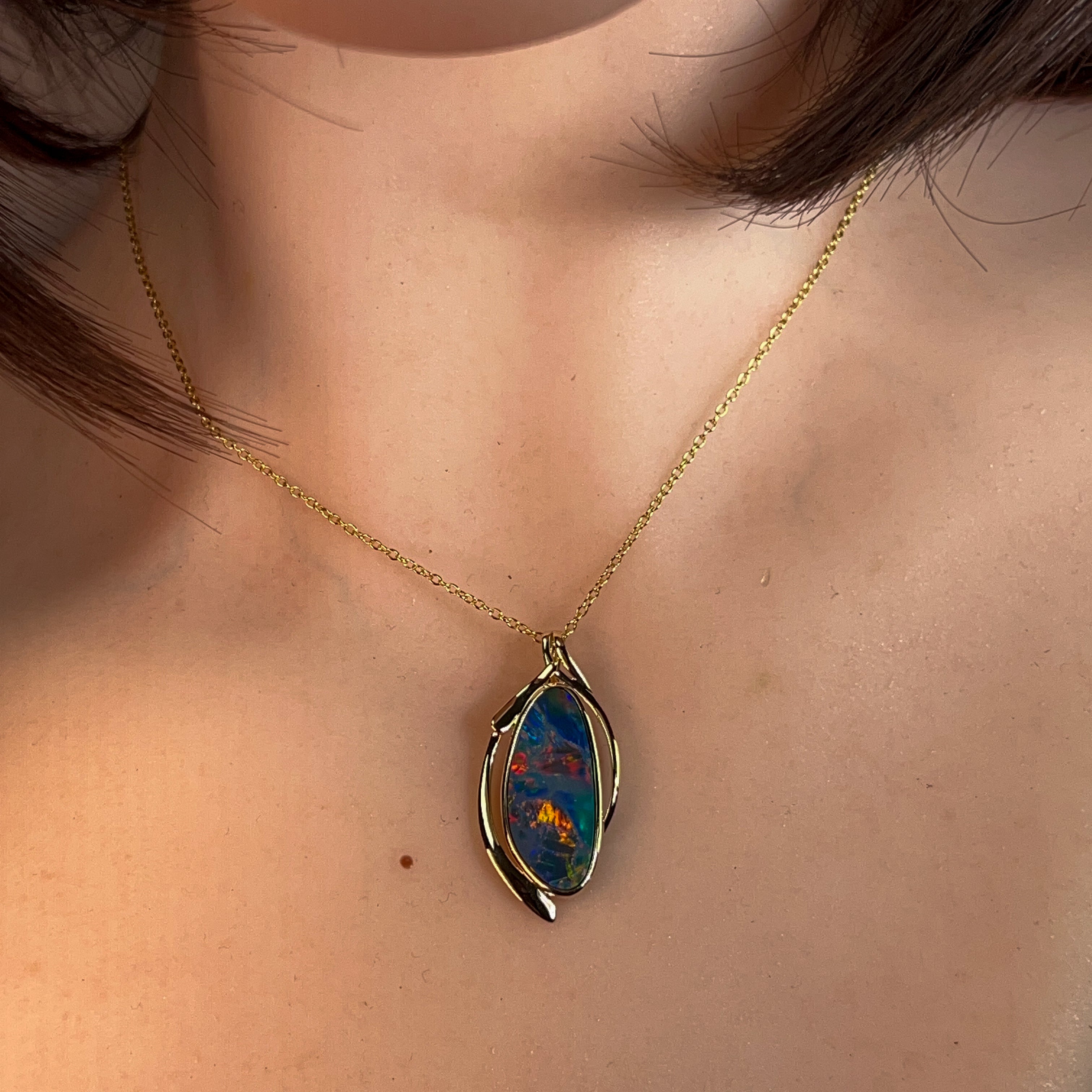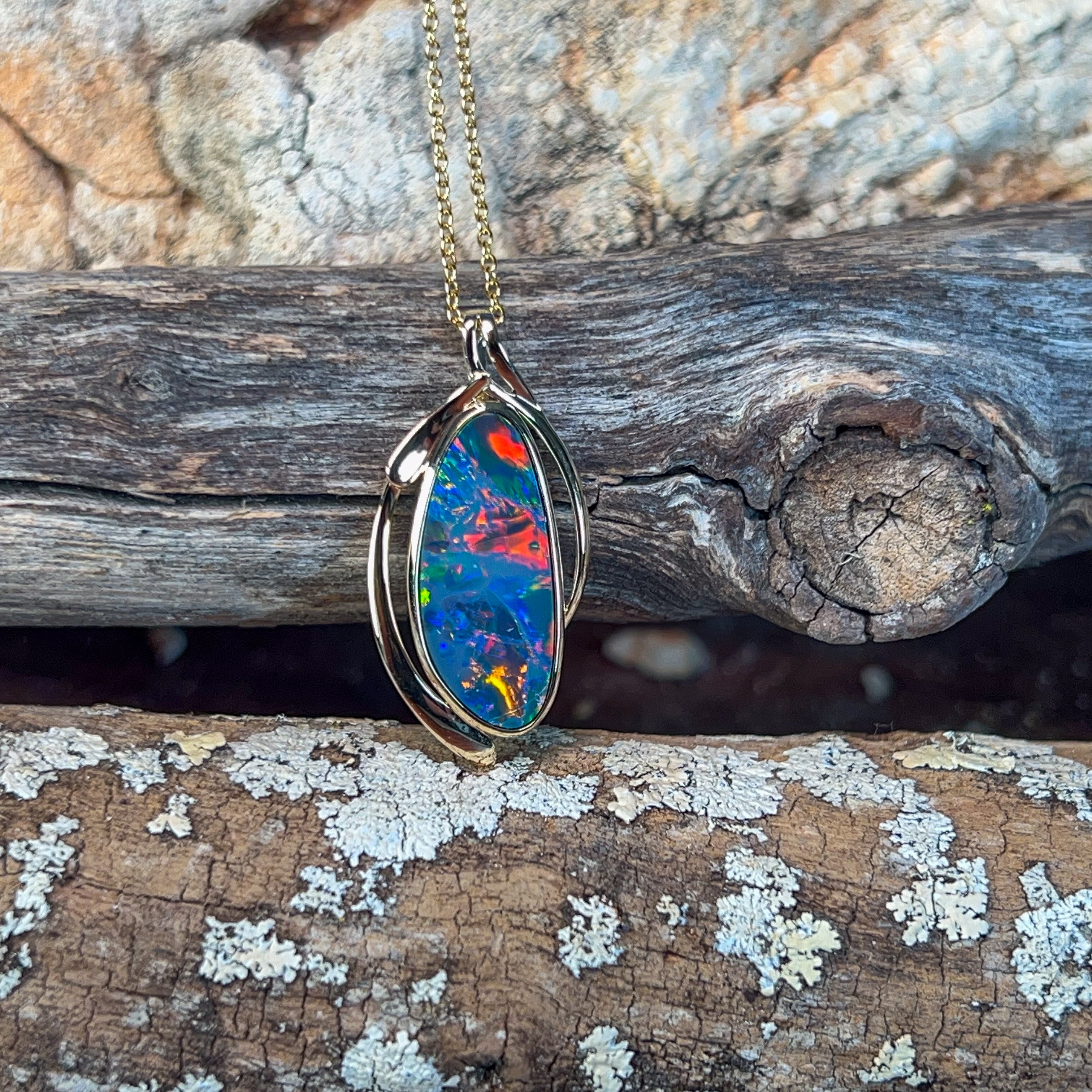 14kt Yellow Gold Fire Opal doublet 4.6ct pendant