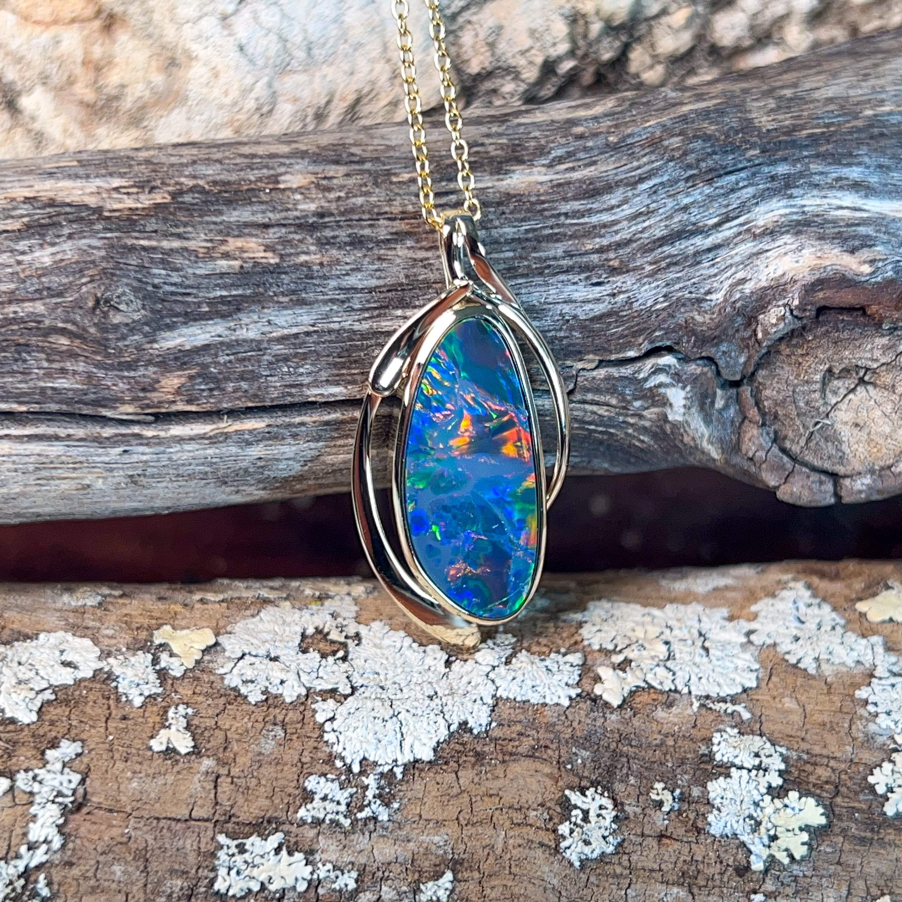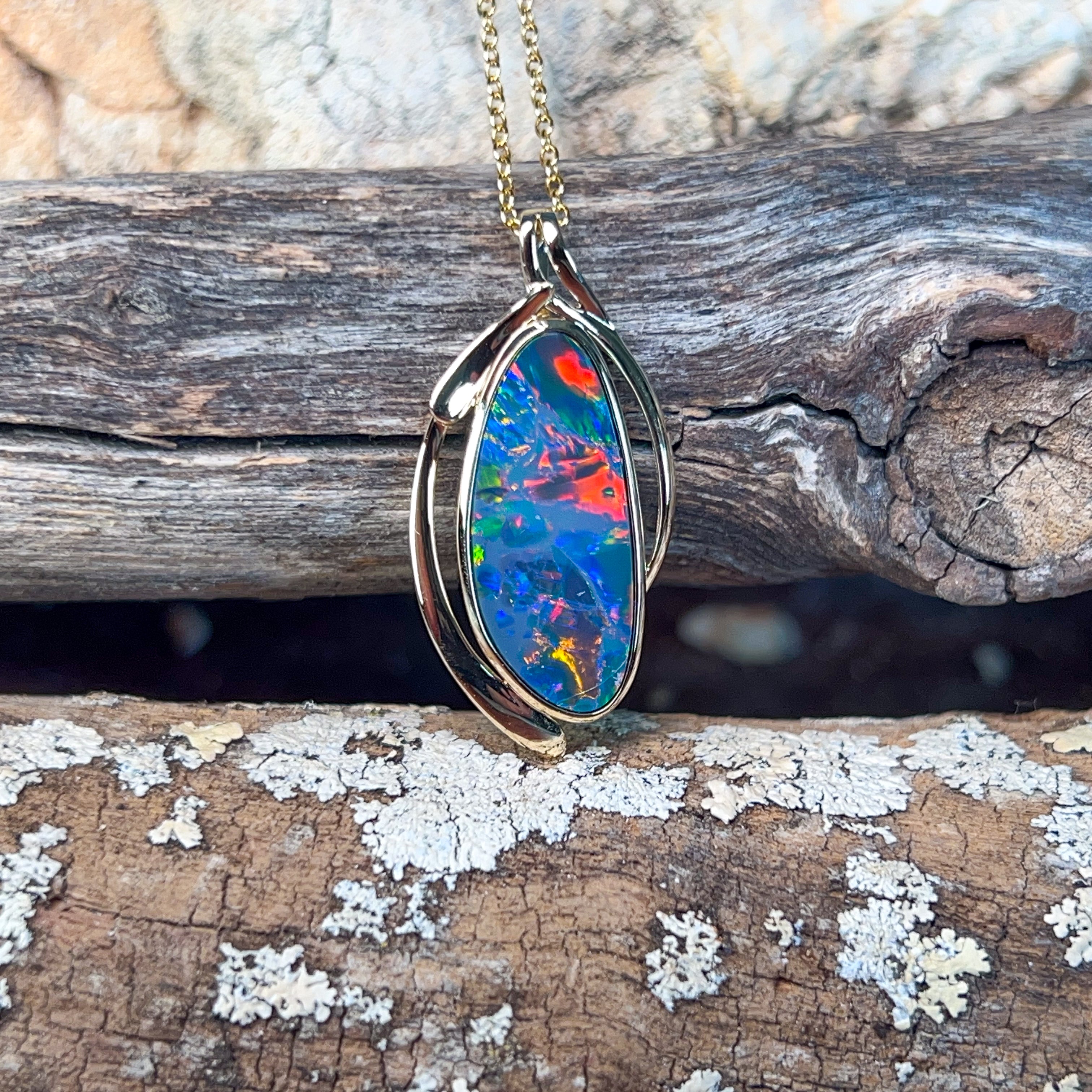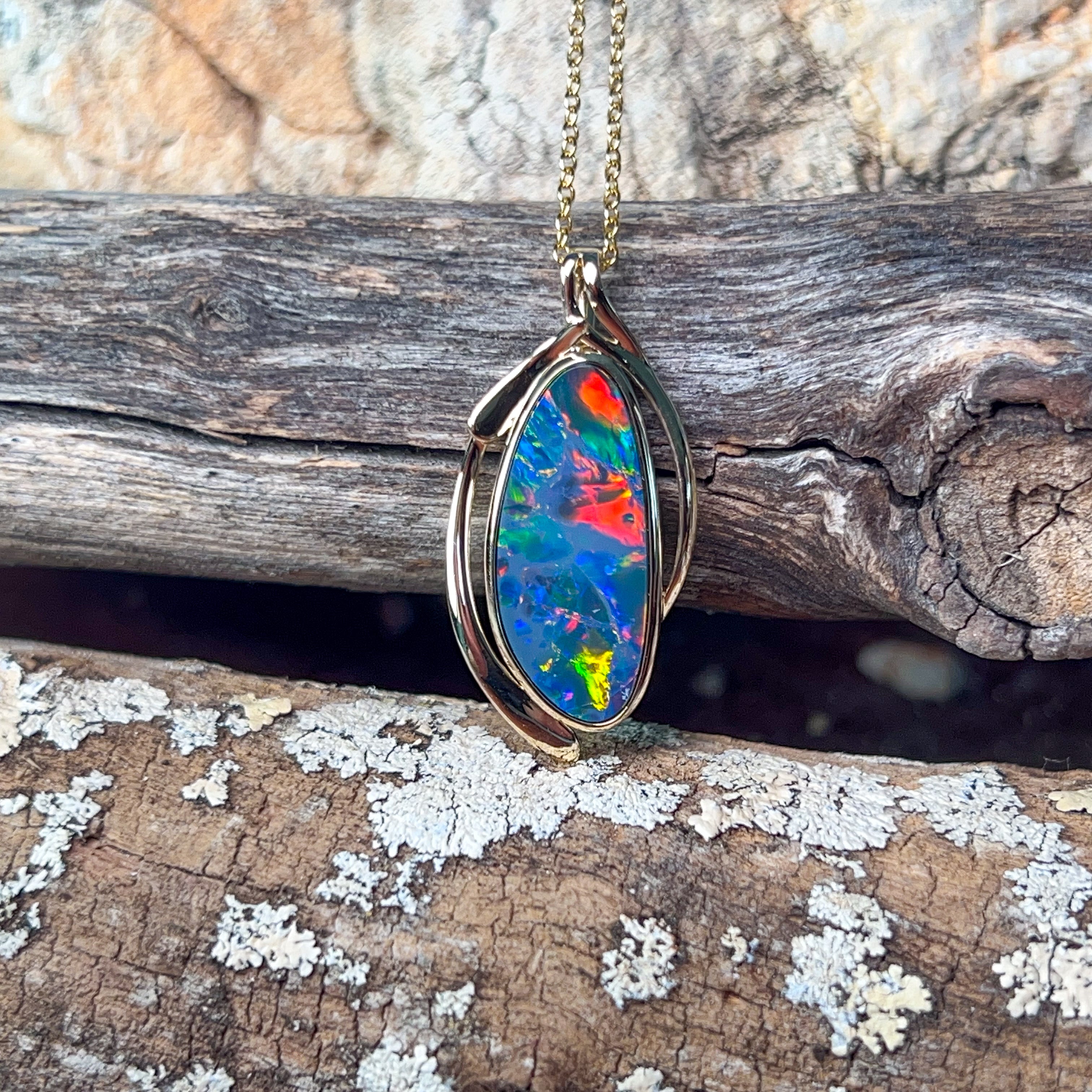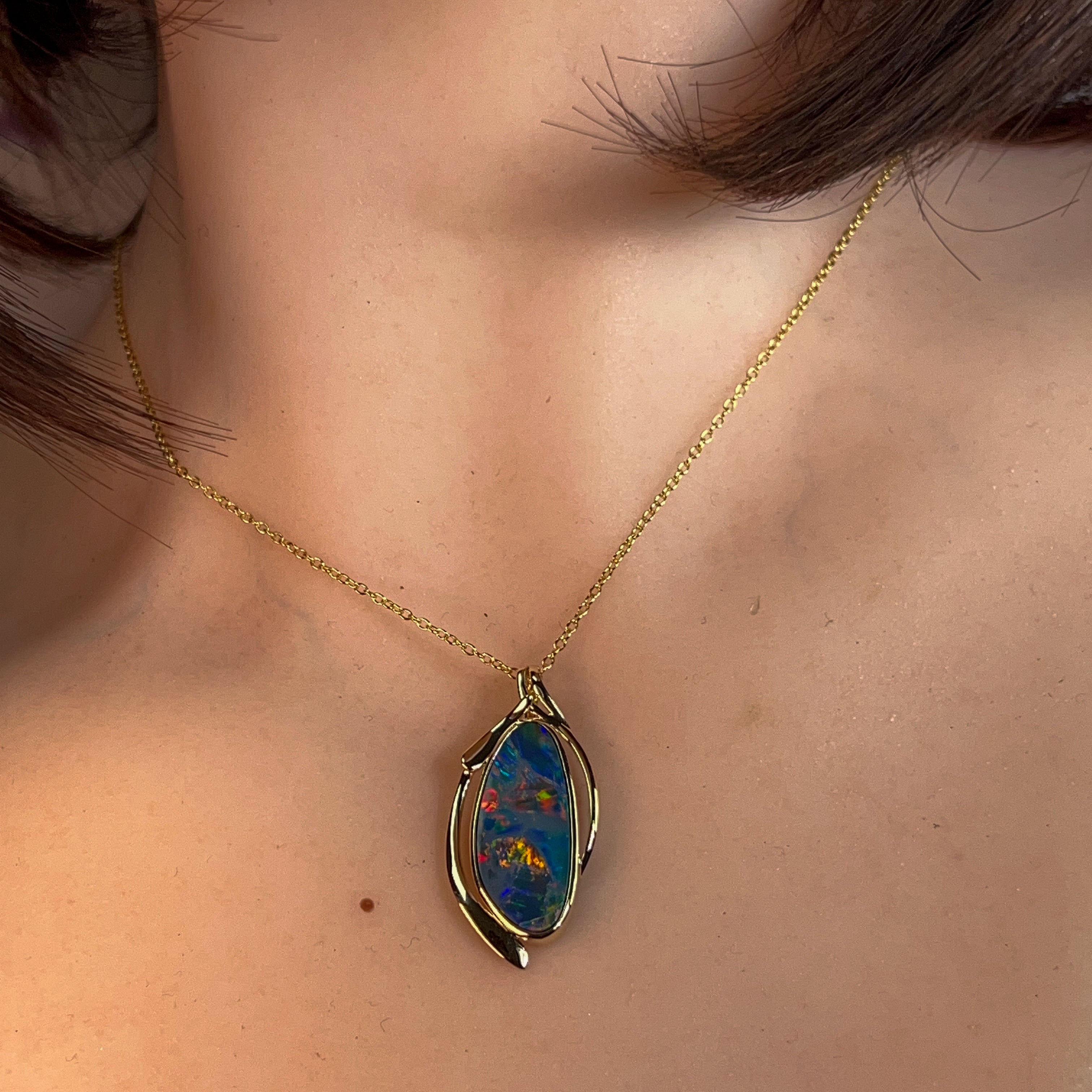 14kt Yellow Gold Fire Opal doublet 4.6ct pendant