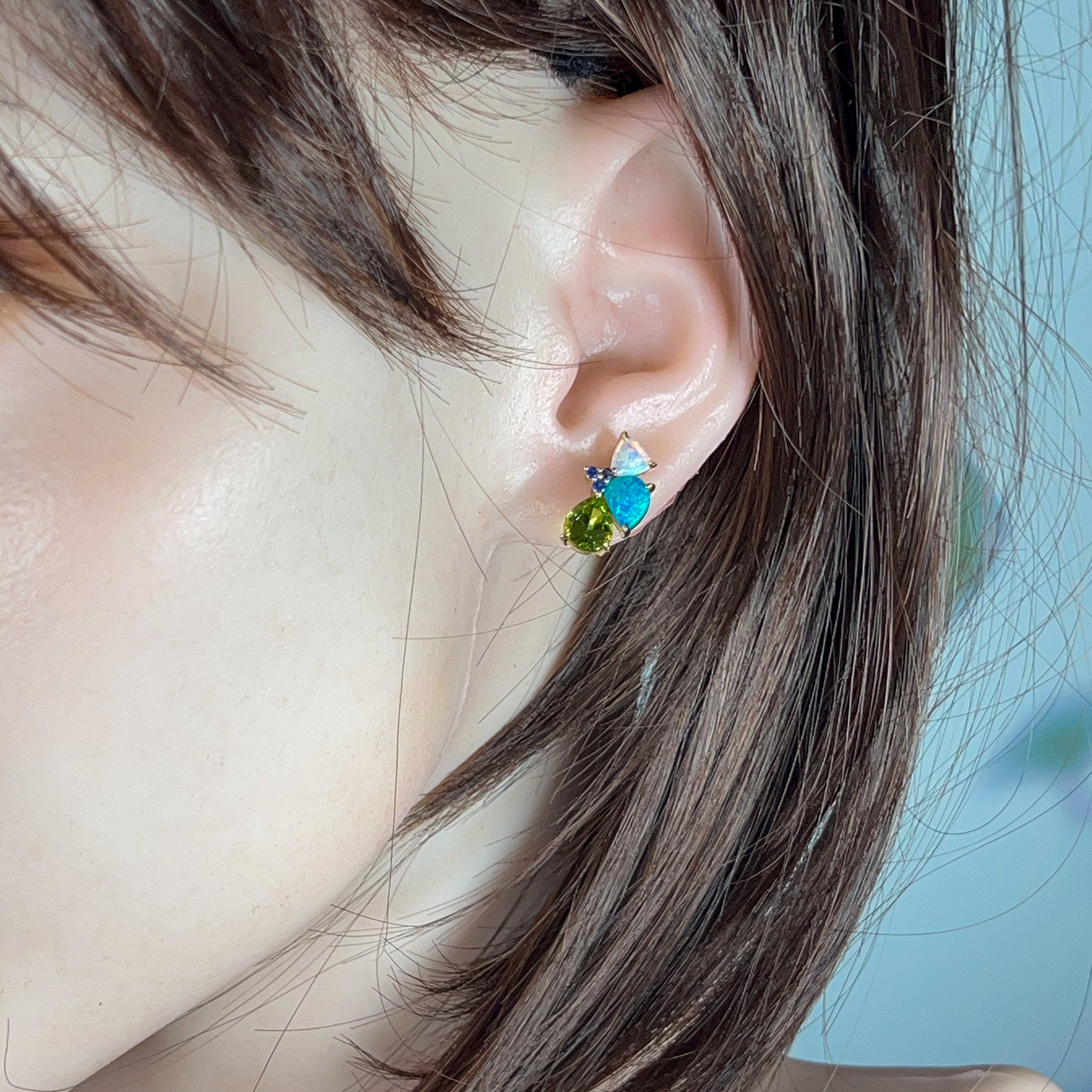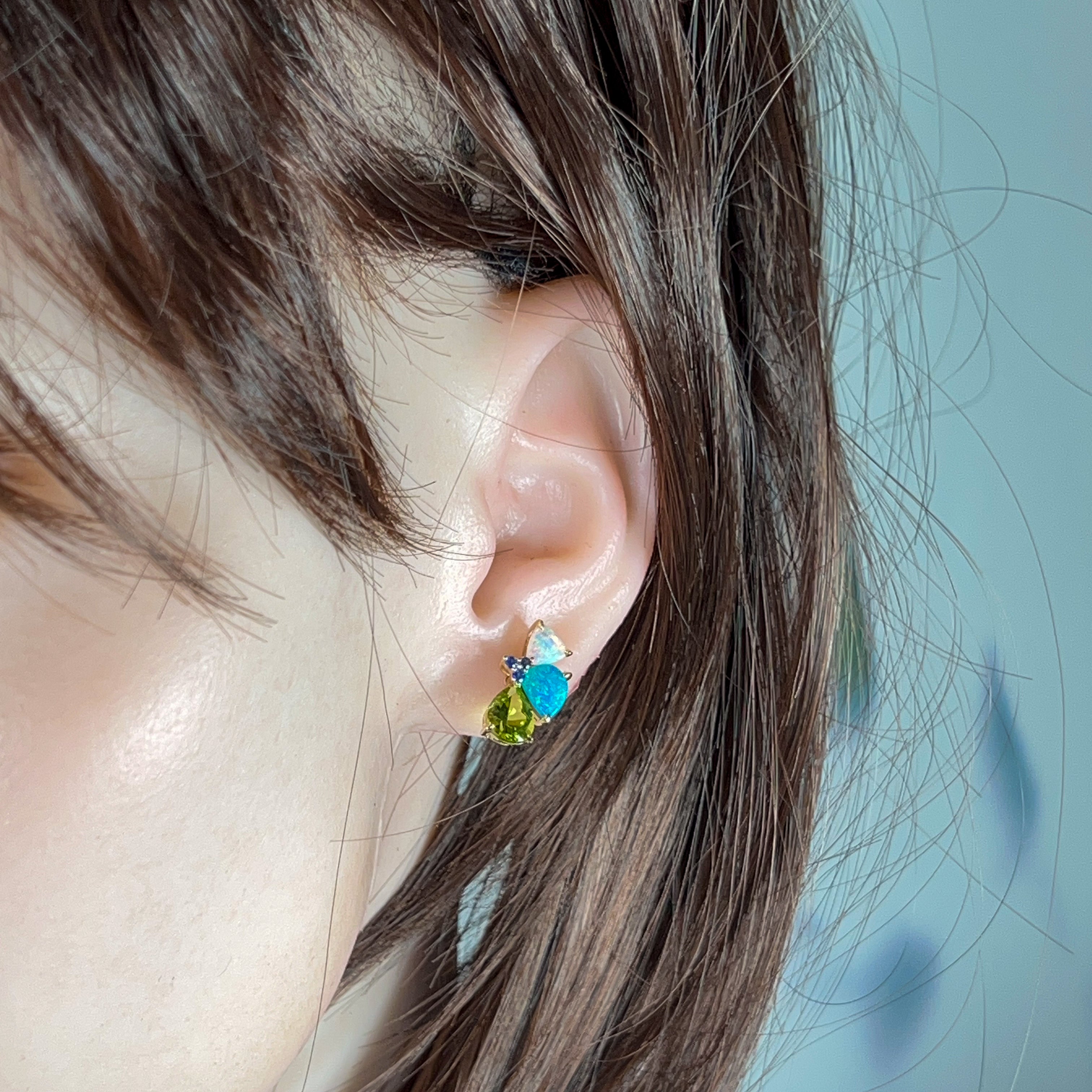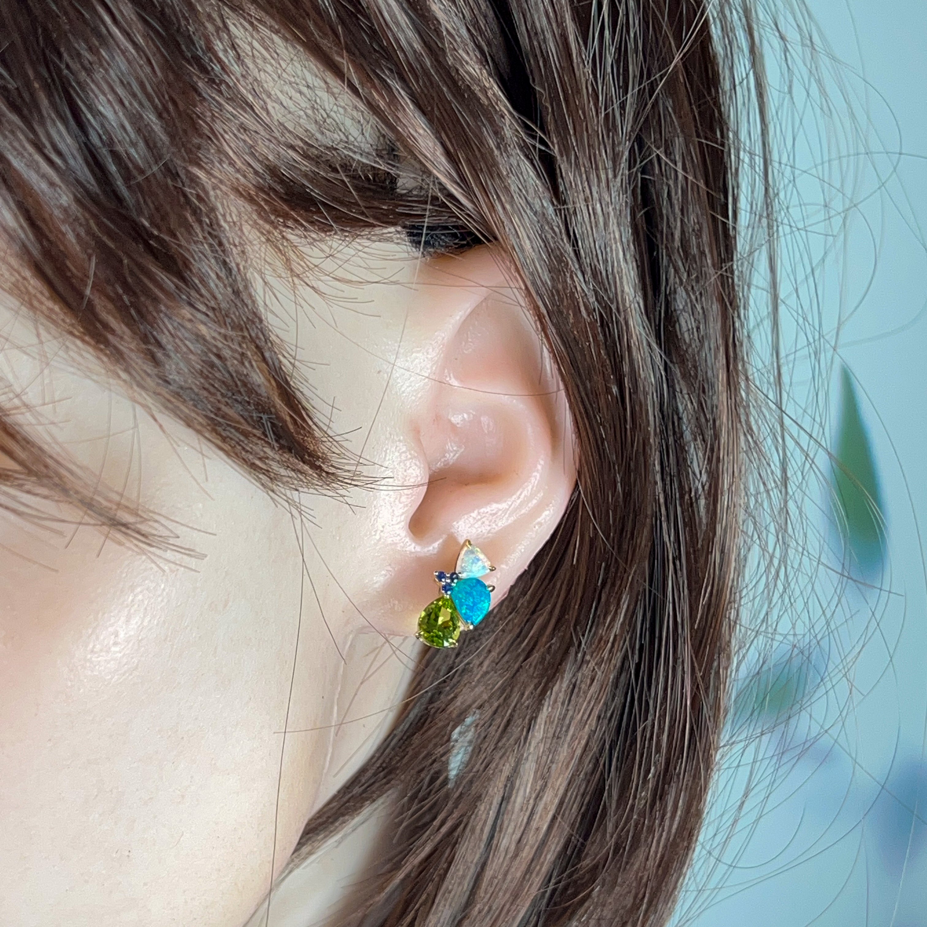 Tiny treasures that pack a serious style punch! These 14kt yellow gold studs are a kaleidoscope of gemstone goodness—featuring shimmering opals, vibrant sapphires, and cheerful peridot in one playful design. Perfect for mixing, matching, or wearing solo, these little beauties add just the right amount of colour and sparkle to any moment. Handcrafted with care, they're the kind of unique pieces that make people ask, "Where did you find those?"