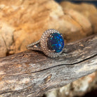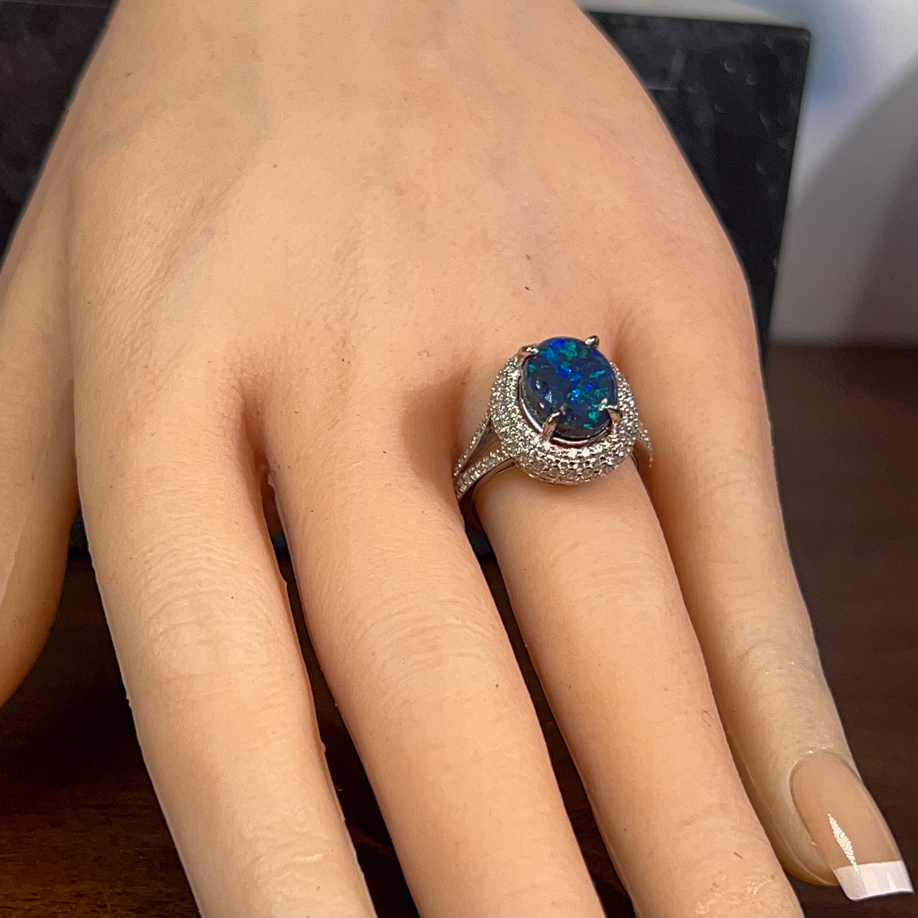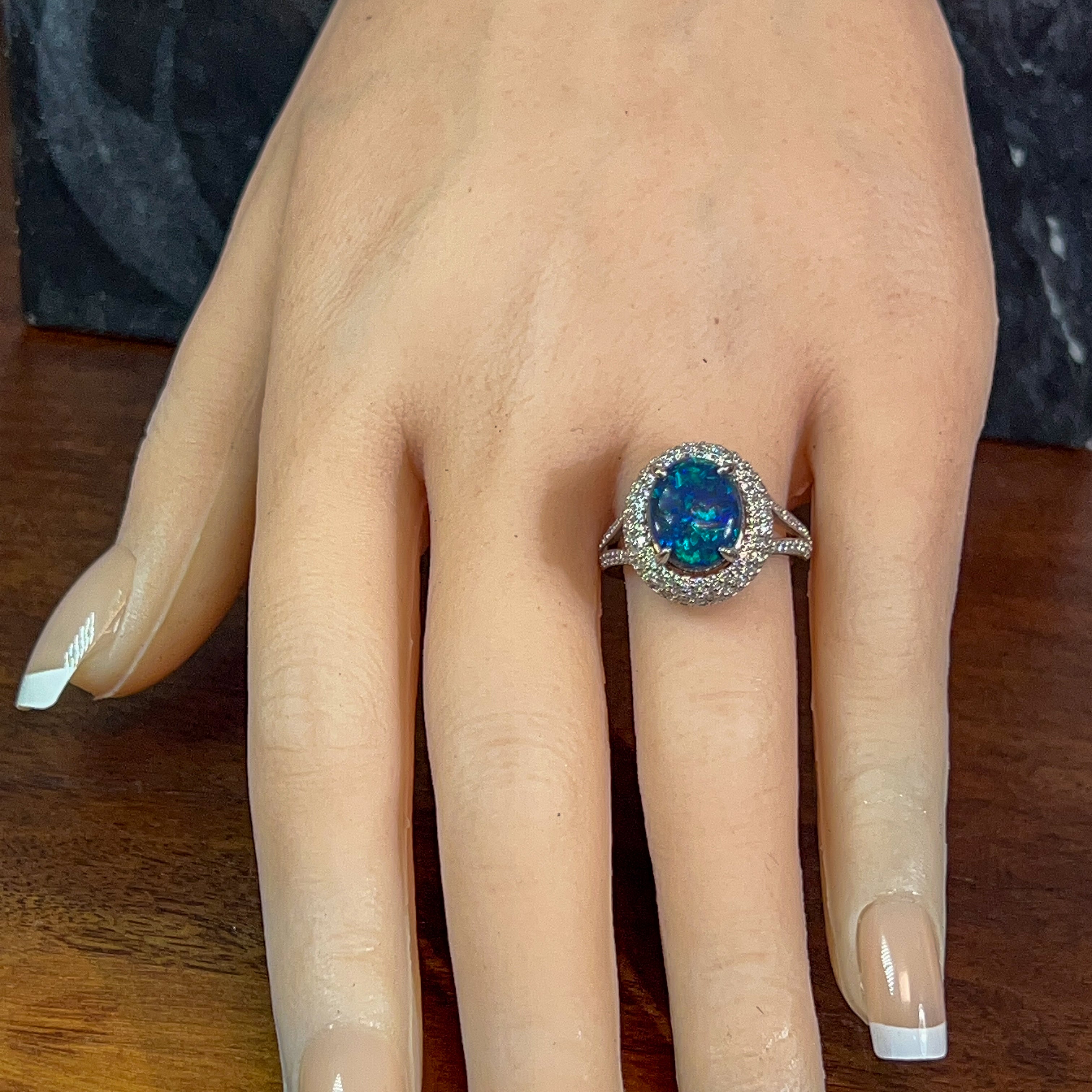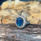 Platinum cluster Black Opal 3.17ct and diamond ring