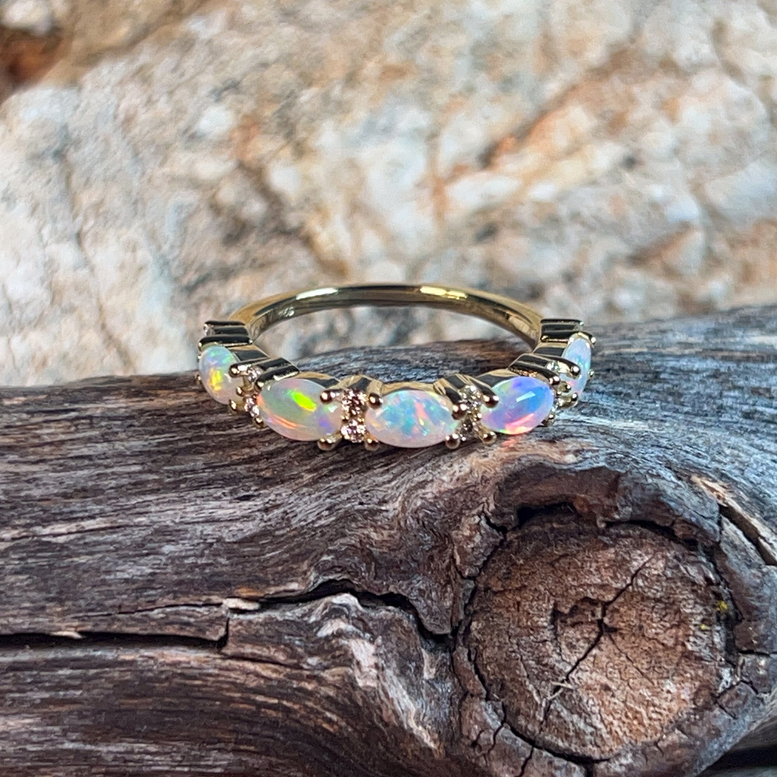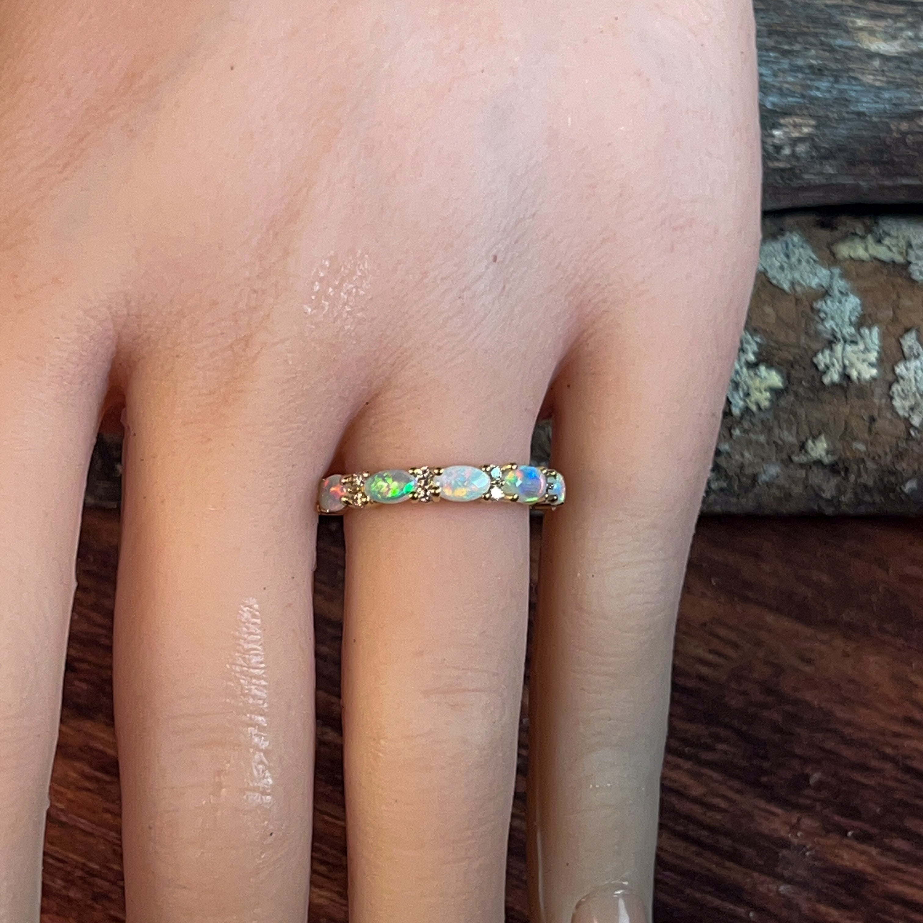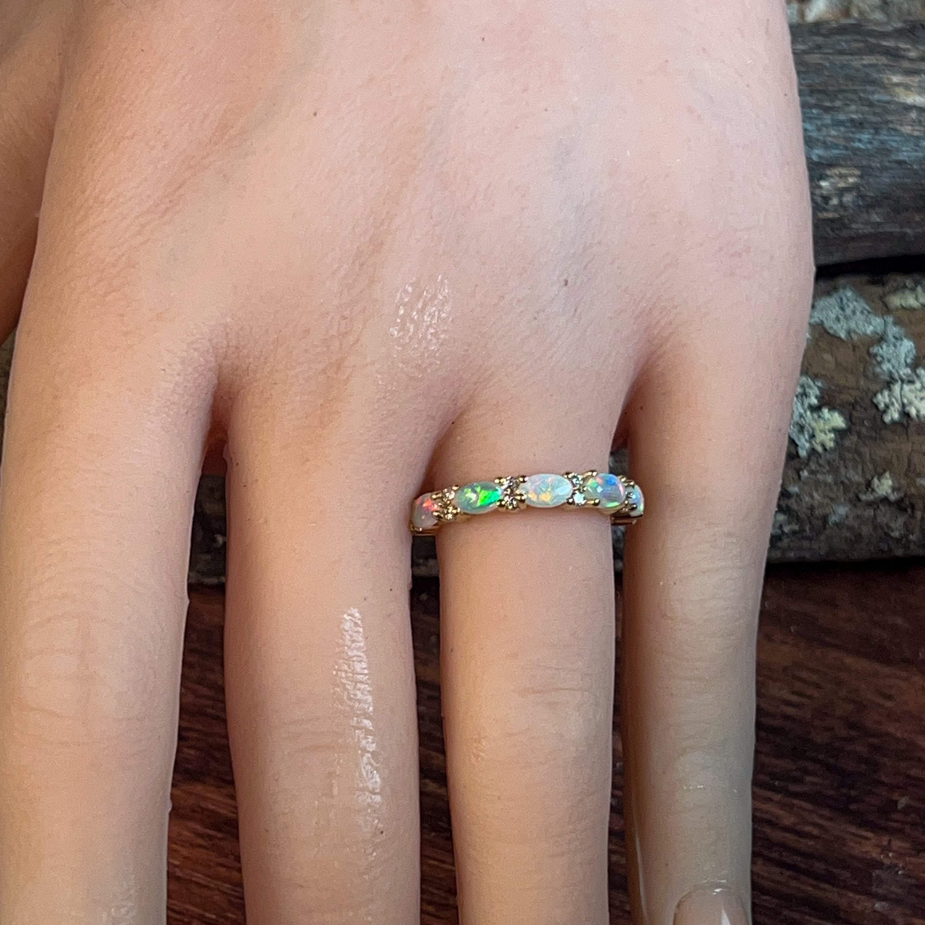 18kt Yellow Gold eternity style Opal and diamond ring