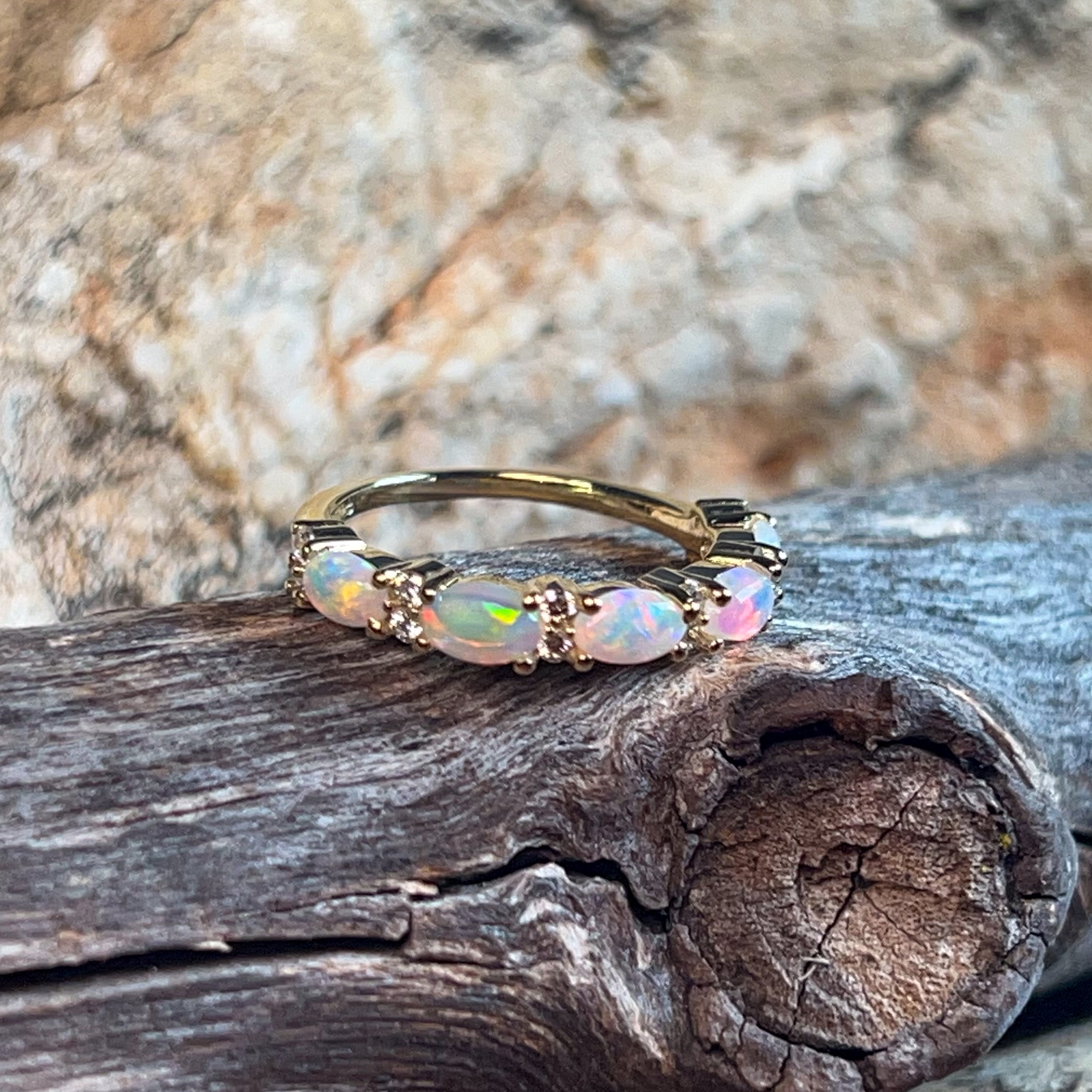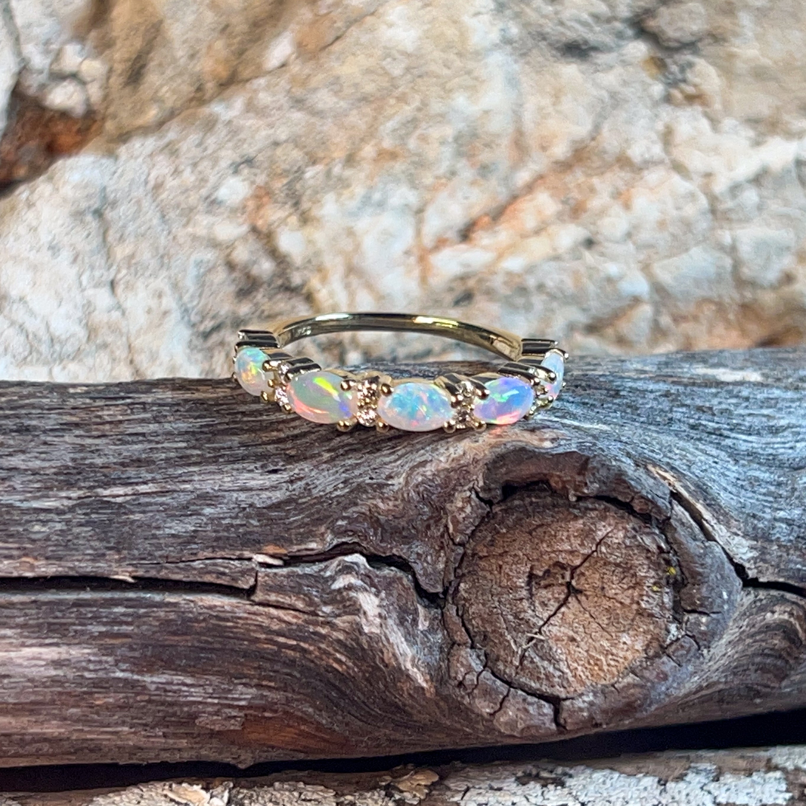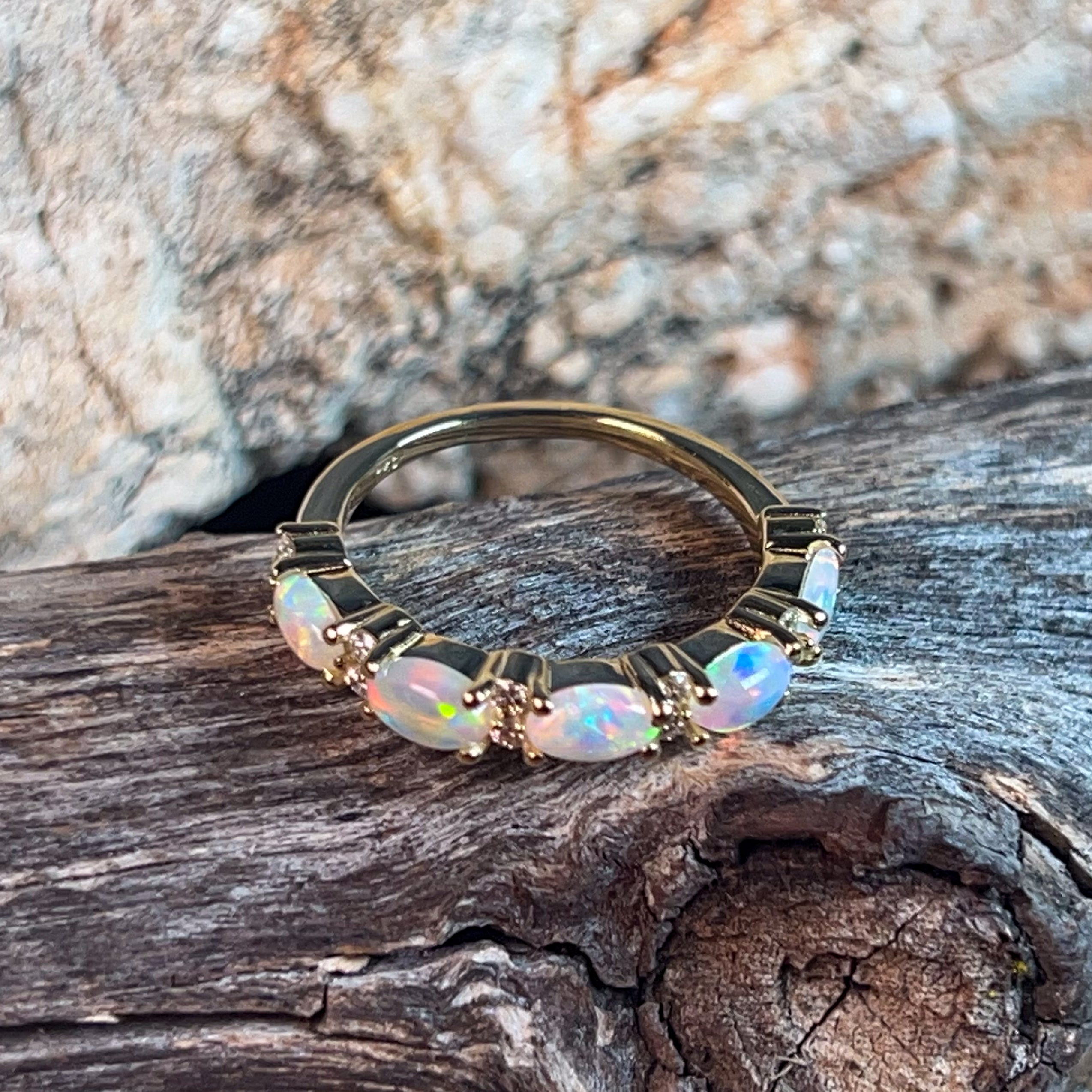 18kt Yellow Gold eternity style Opal and diamond ring