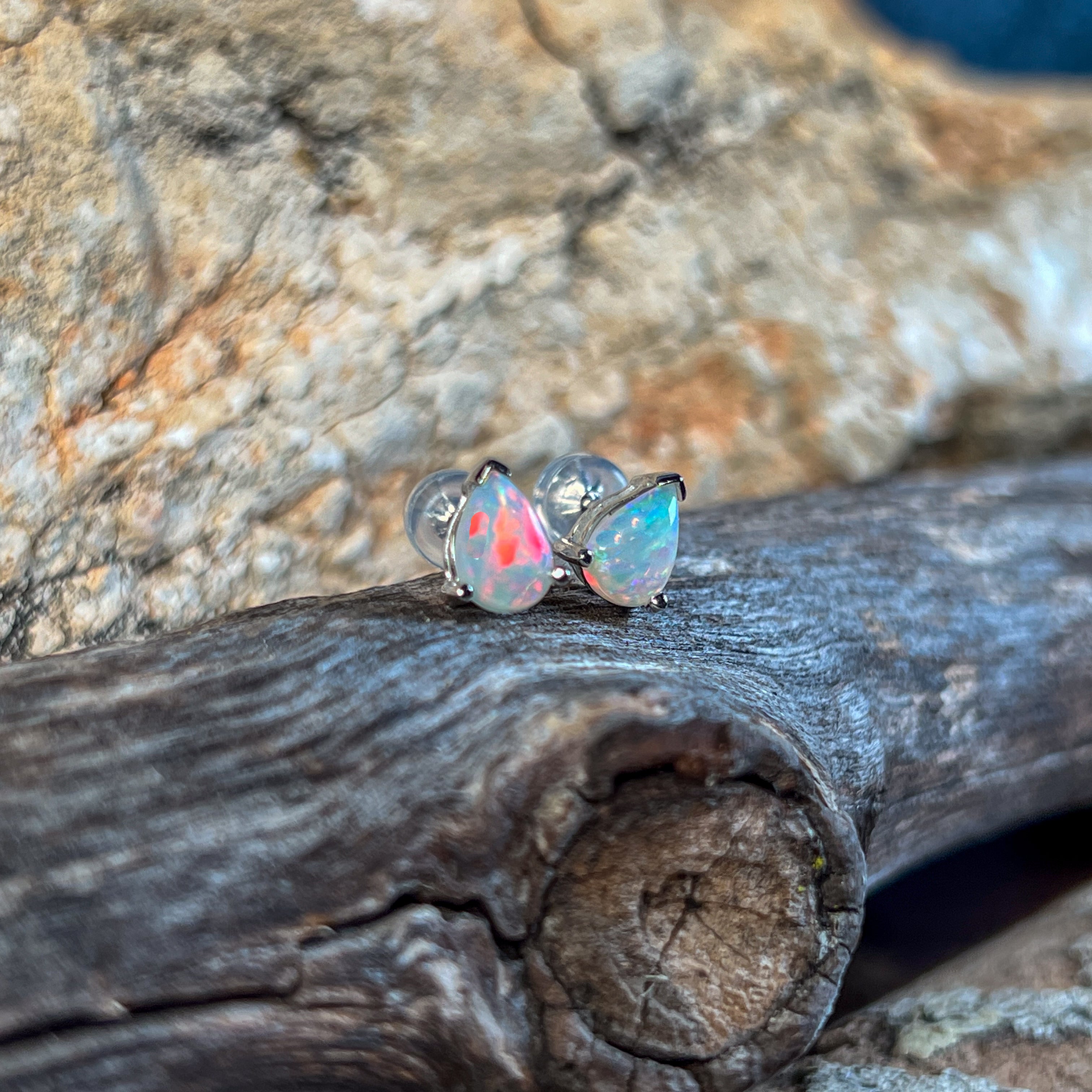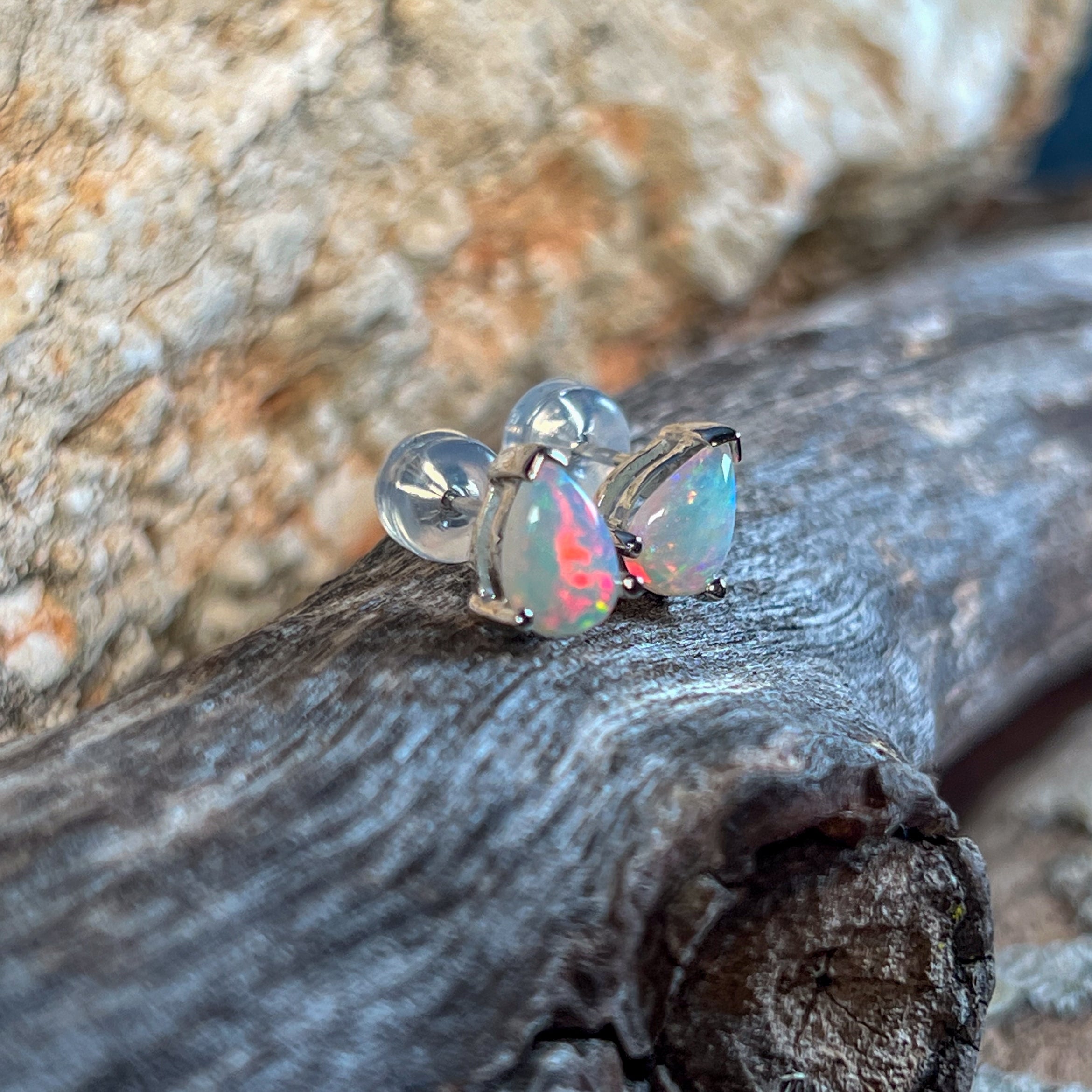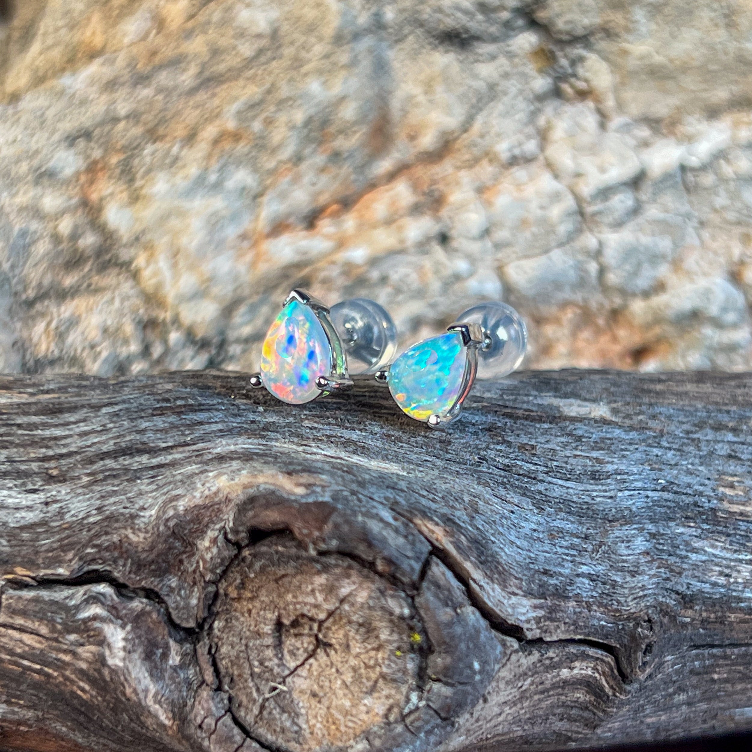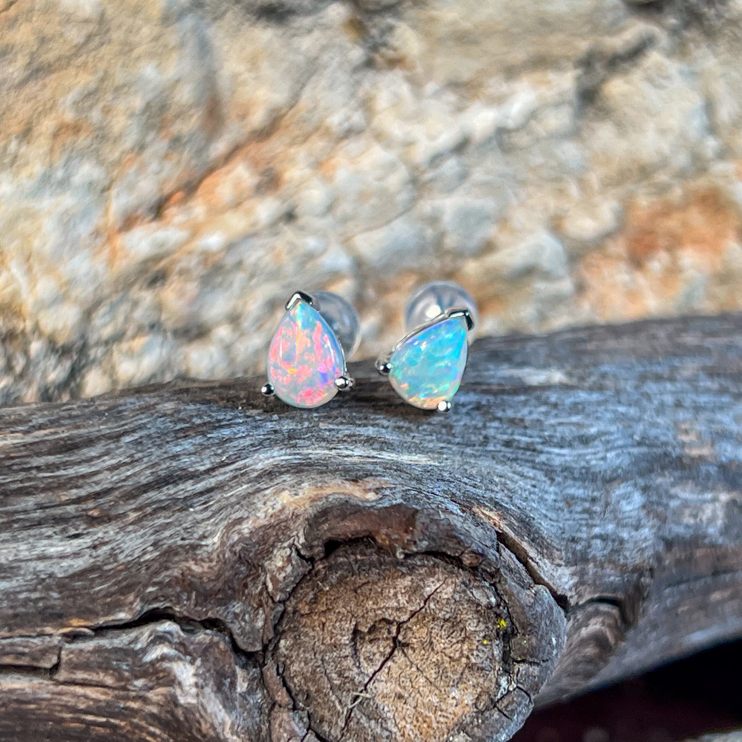 Elevate your everyday elegance with these exquisite 9kt white gold opal studs. Featuring stunning 8x5mm pear-shaped crystal opals, each piece showcases nature's mesmerising play of colour and light. The timeless white gold setting provides a sophisticated backdrop that lets the opals' natural beauty take centre stage. Perfect for adding a touch of refined glamour to any occasion, these studs offer versatile style that transitions effortlessly from day to night. A treasured investment piece that celebrates the unique allure of Australian opals.