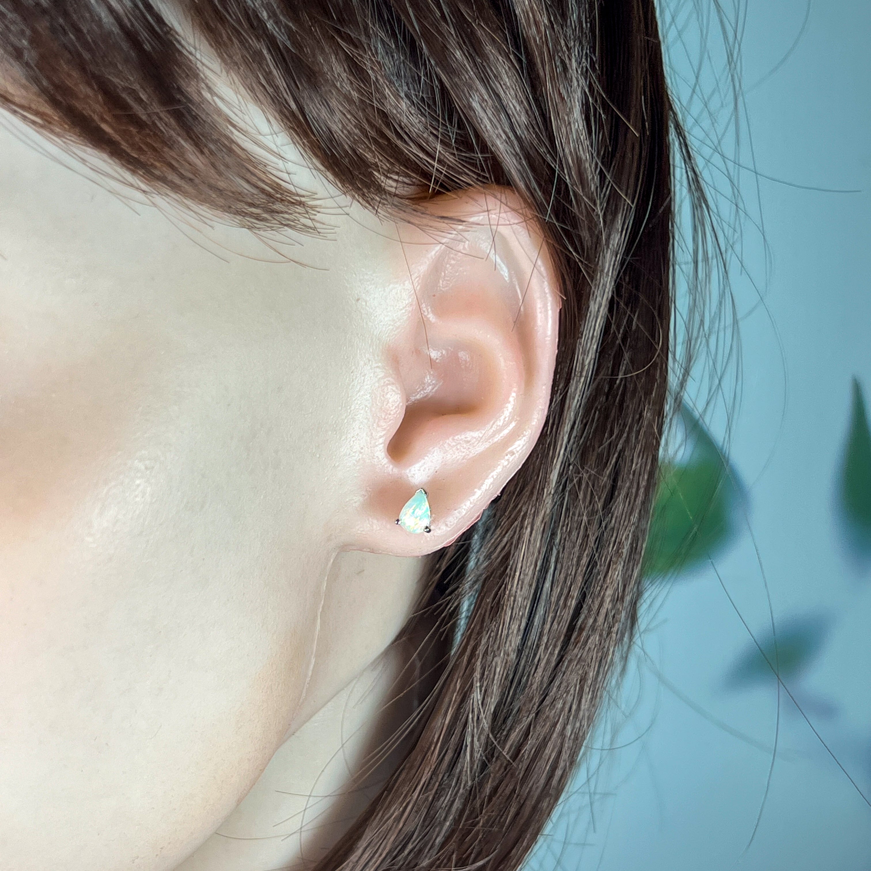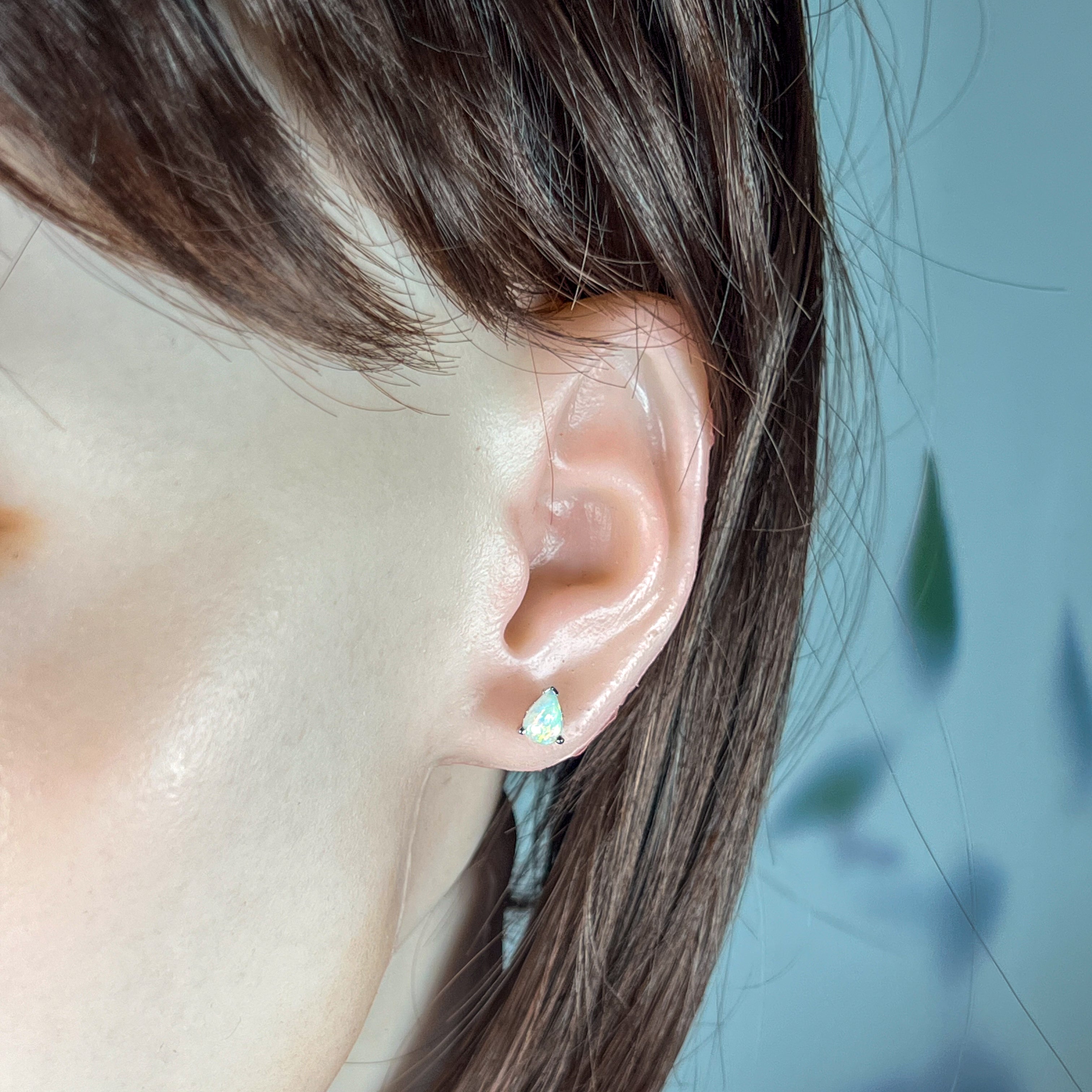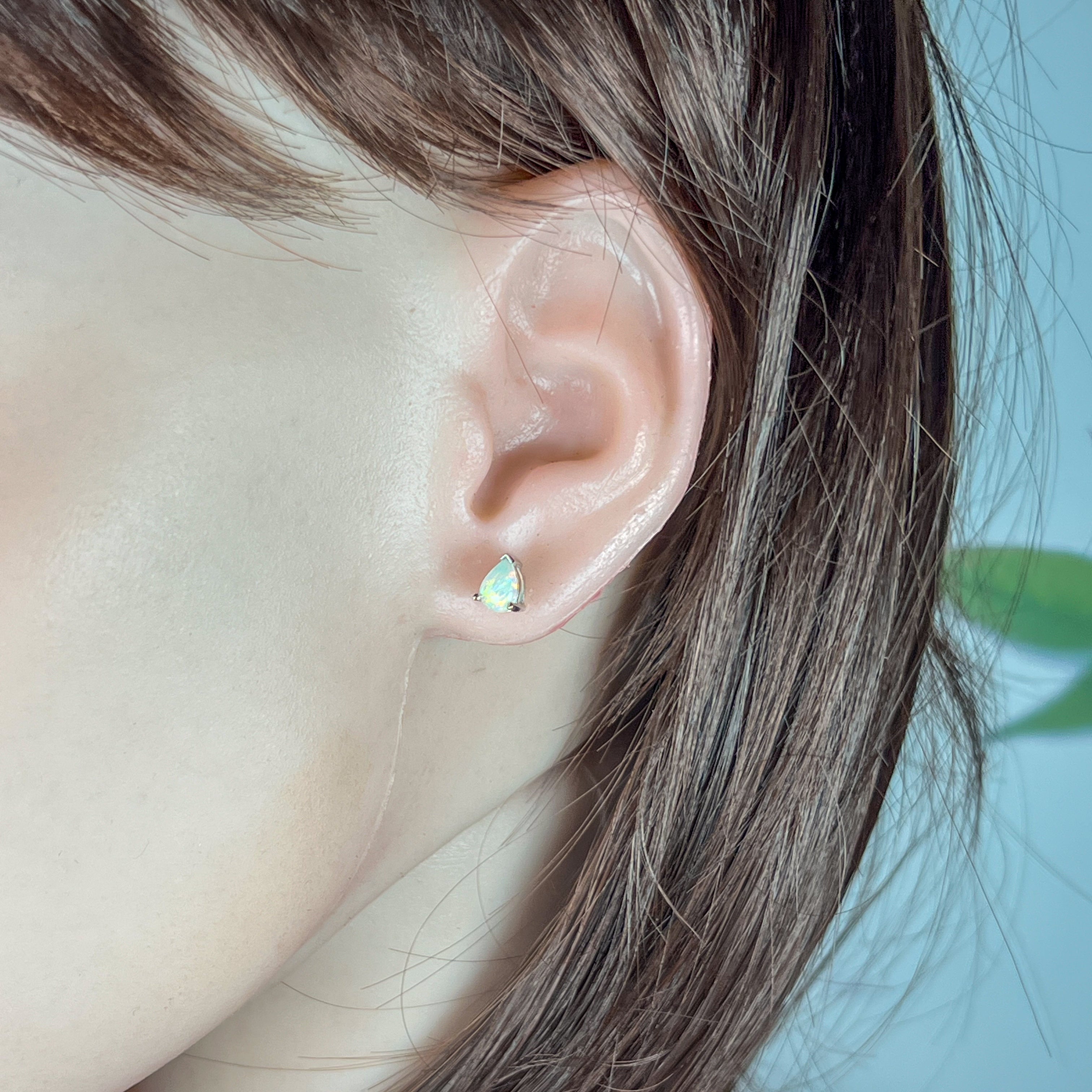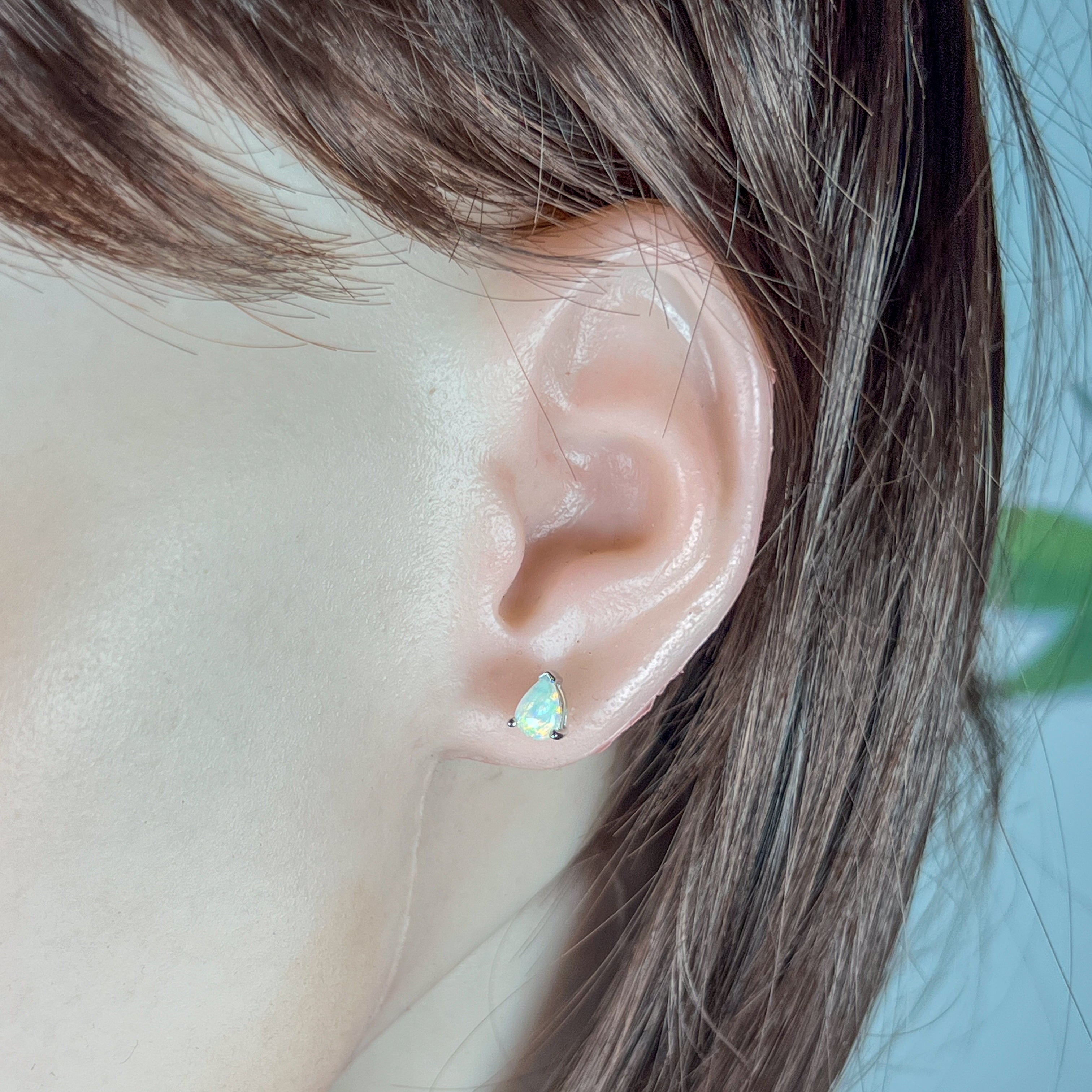 9kt White Gold 8x5mm pearshape Crystal opal studs