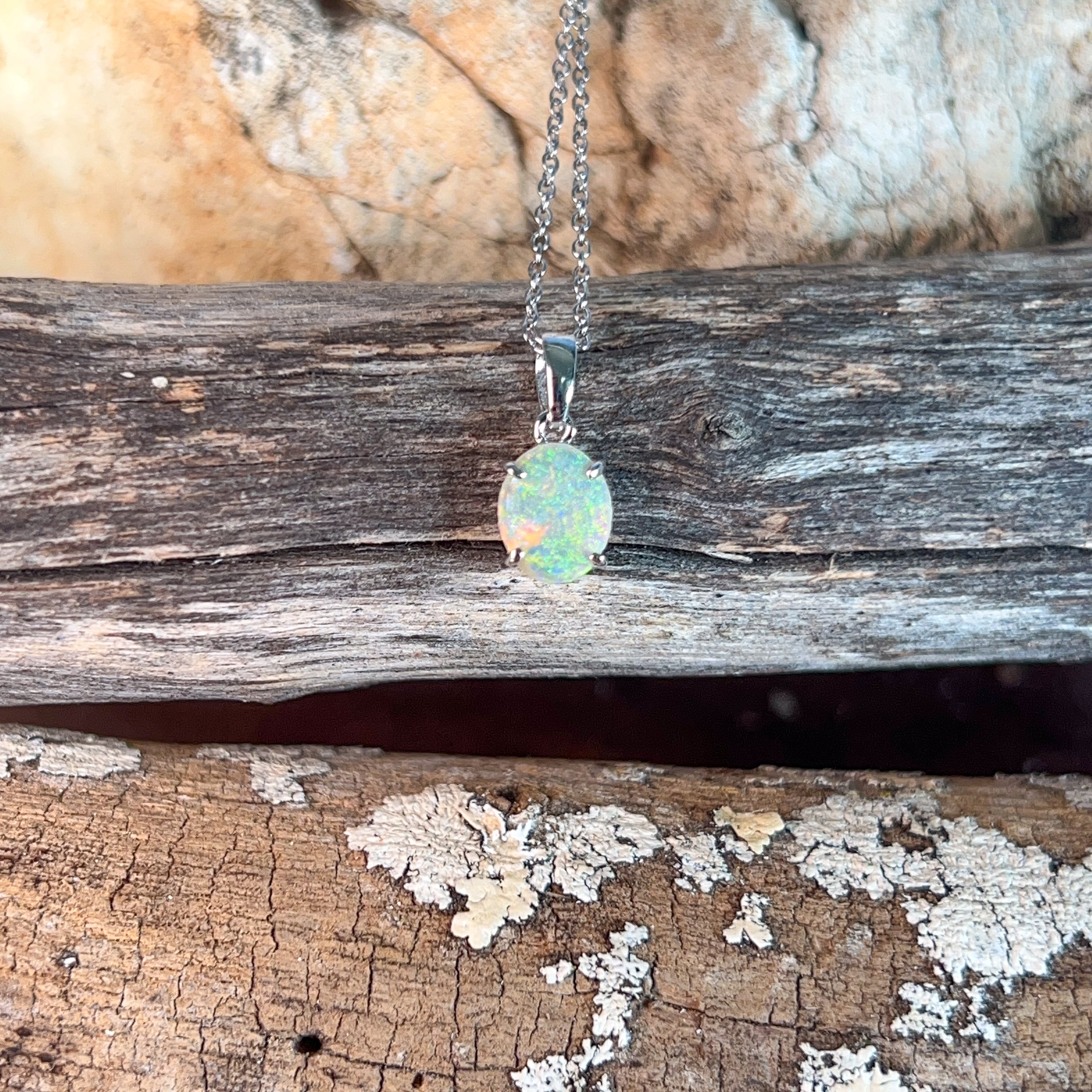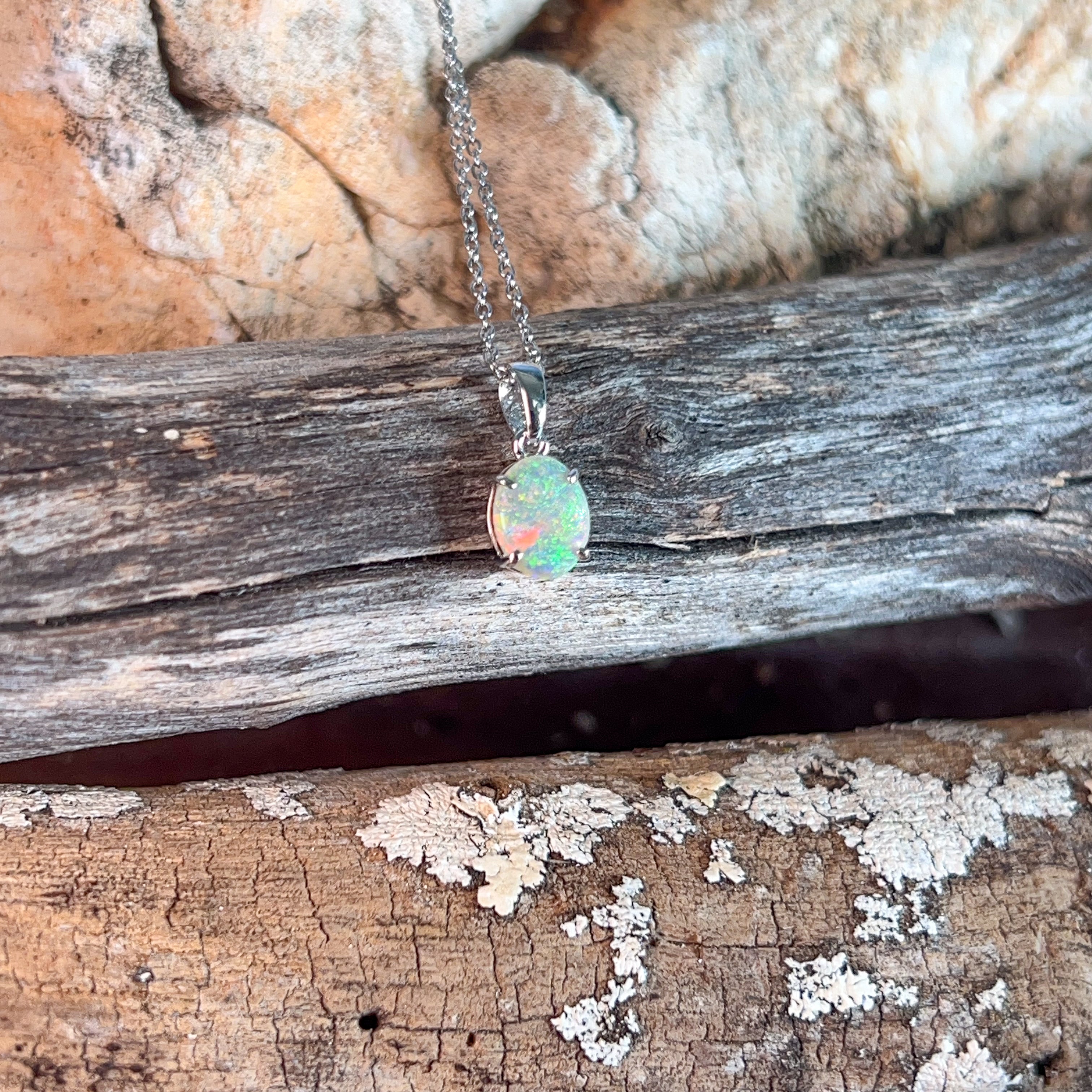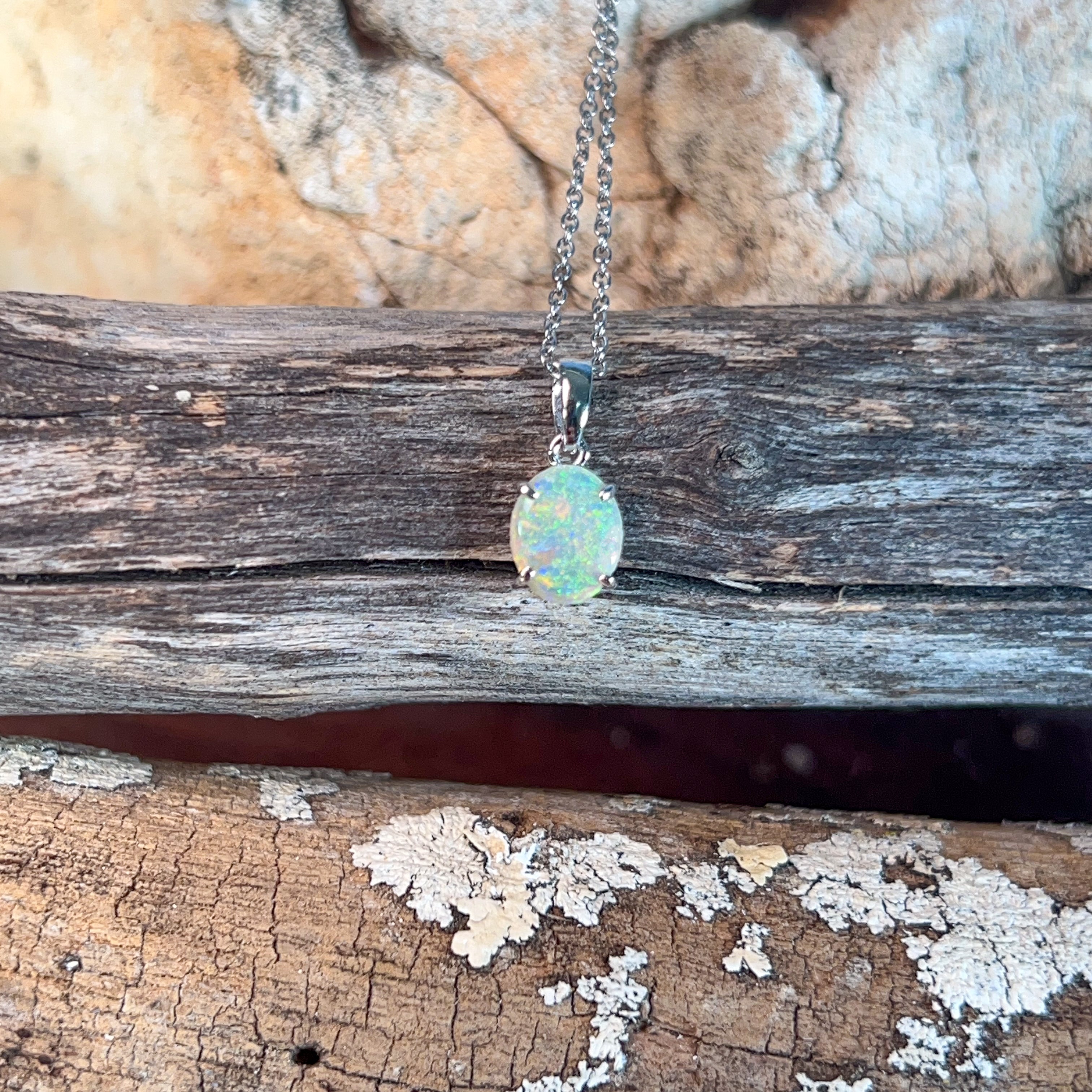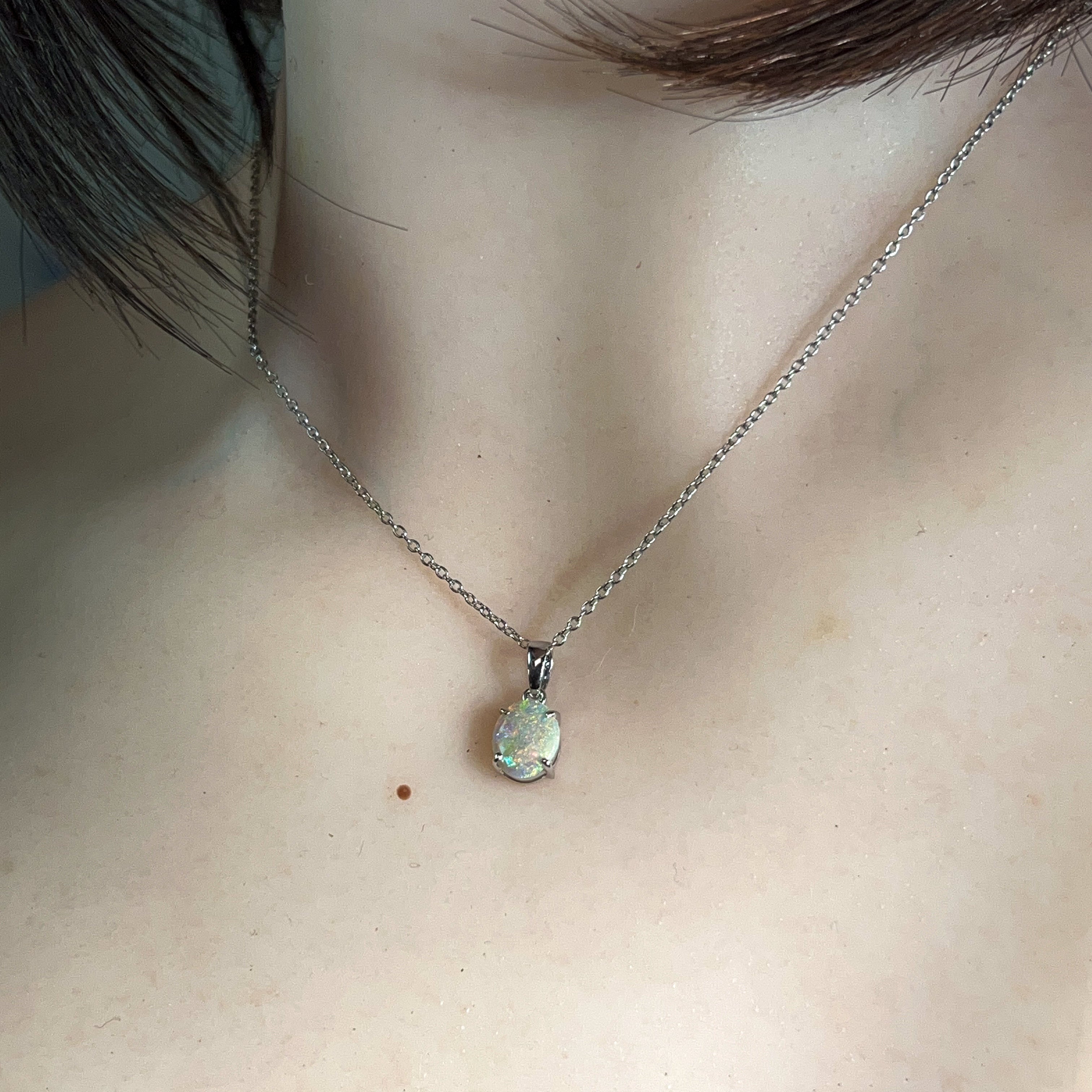 One 9kt White Gold claw set Opal classic pendant