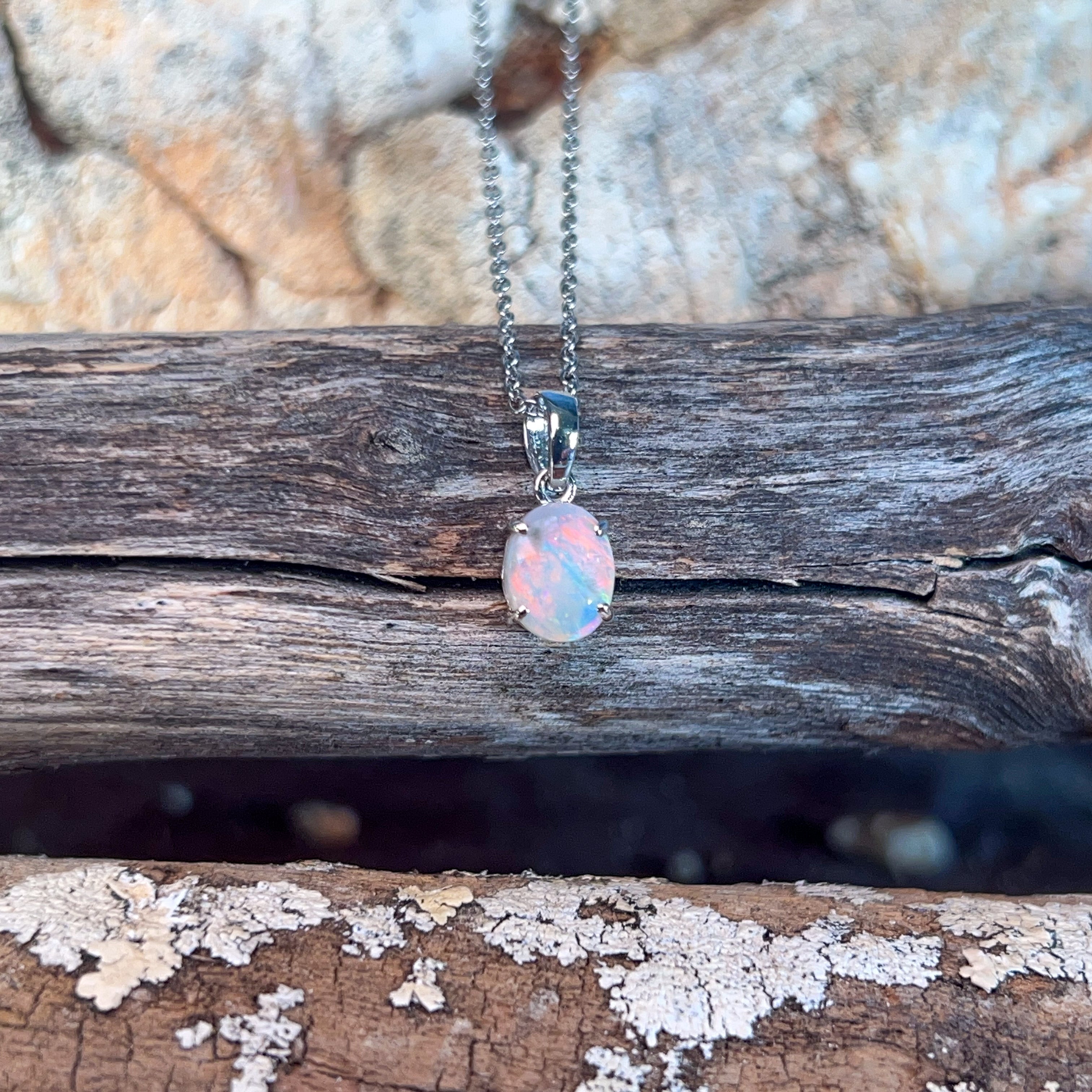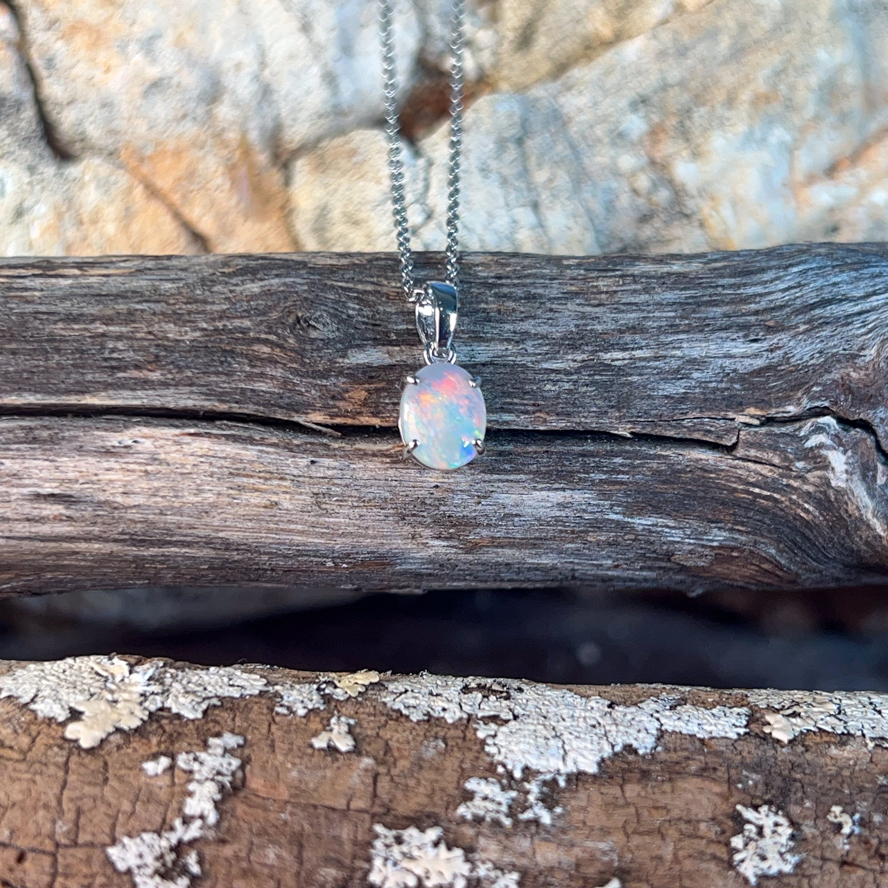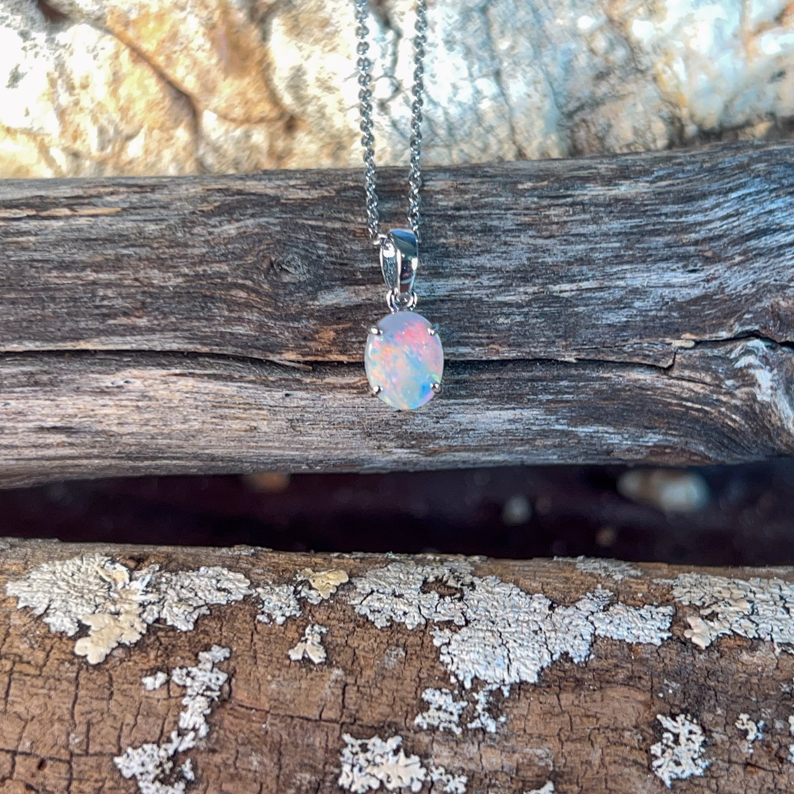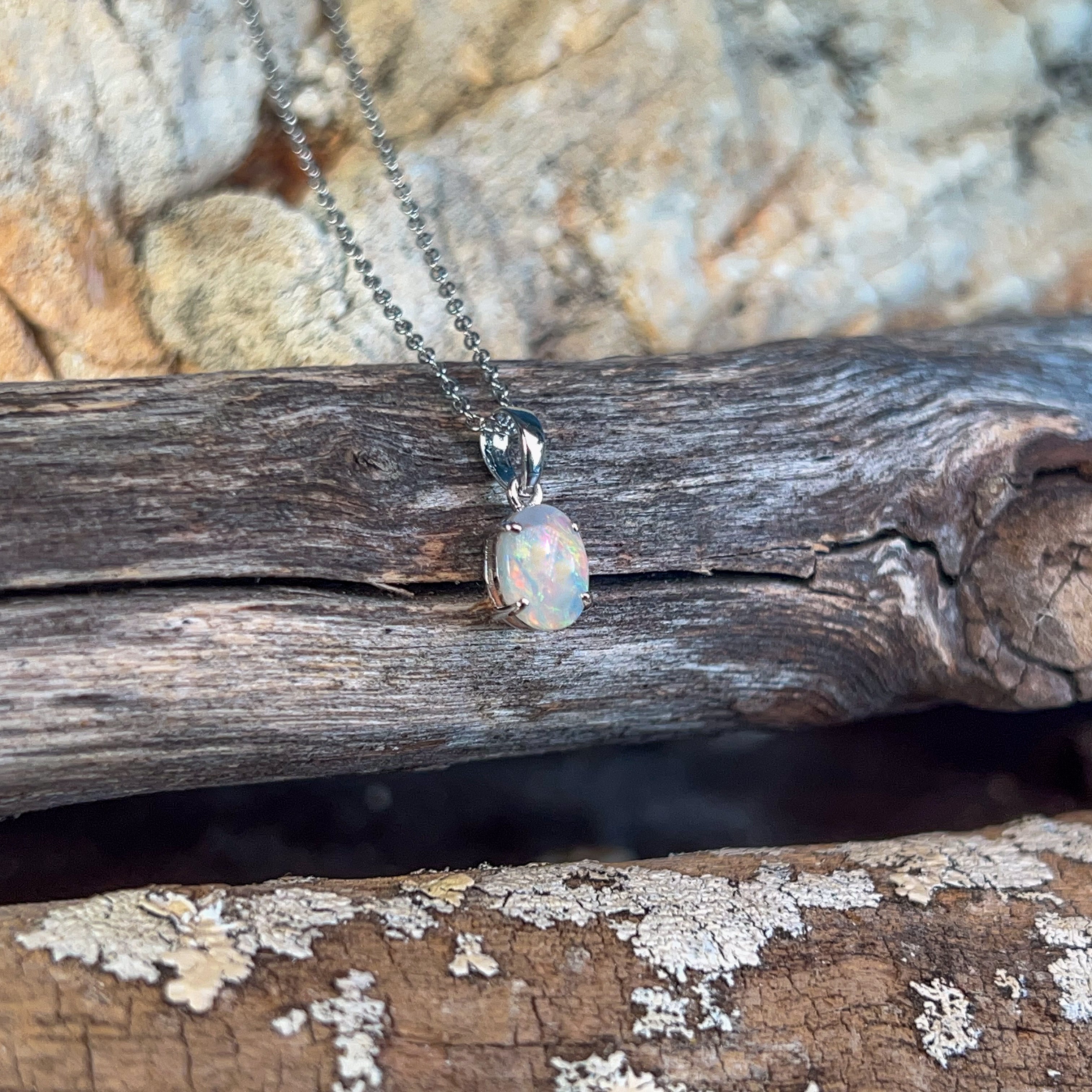 One 9kt White Gold claw set Opal classic pendant