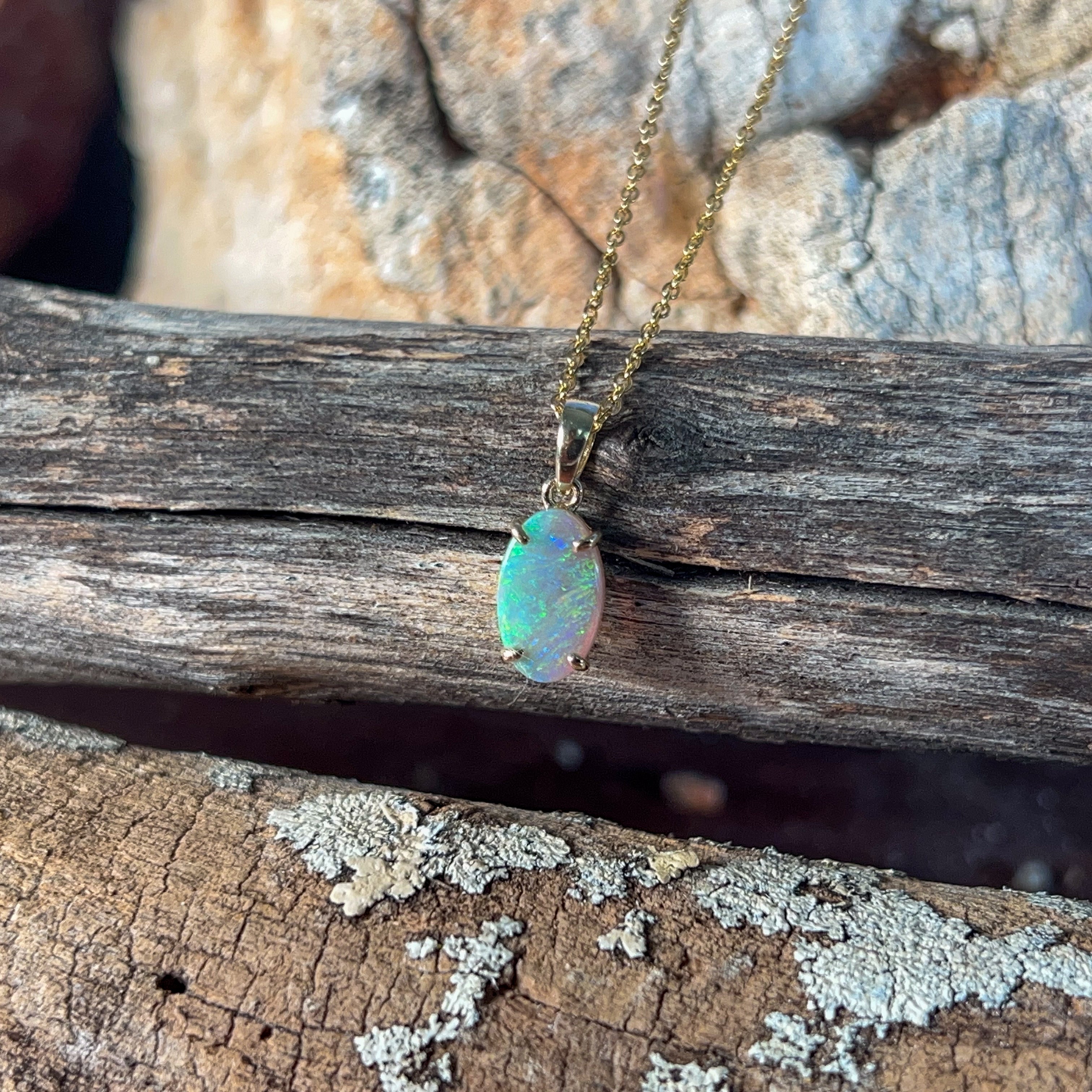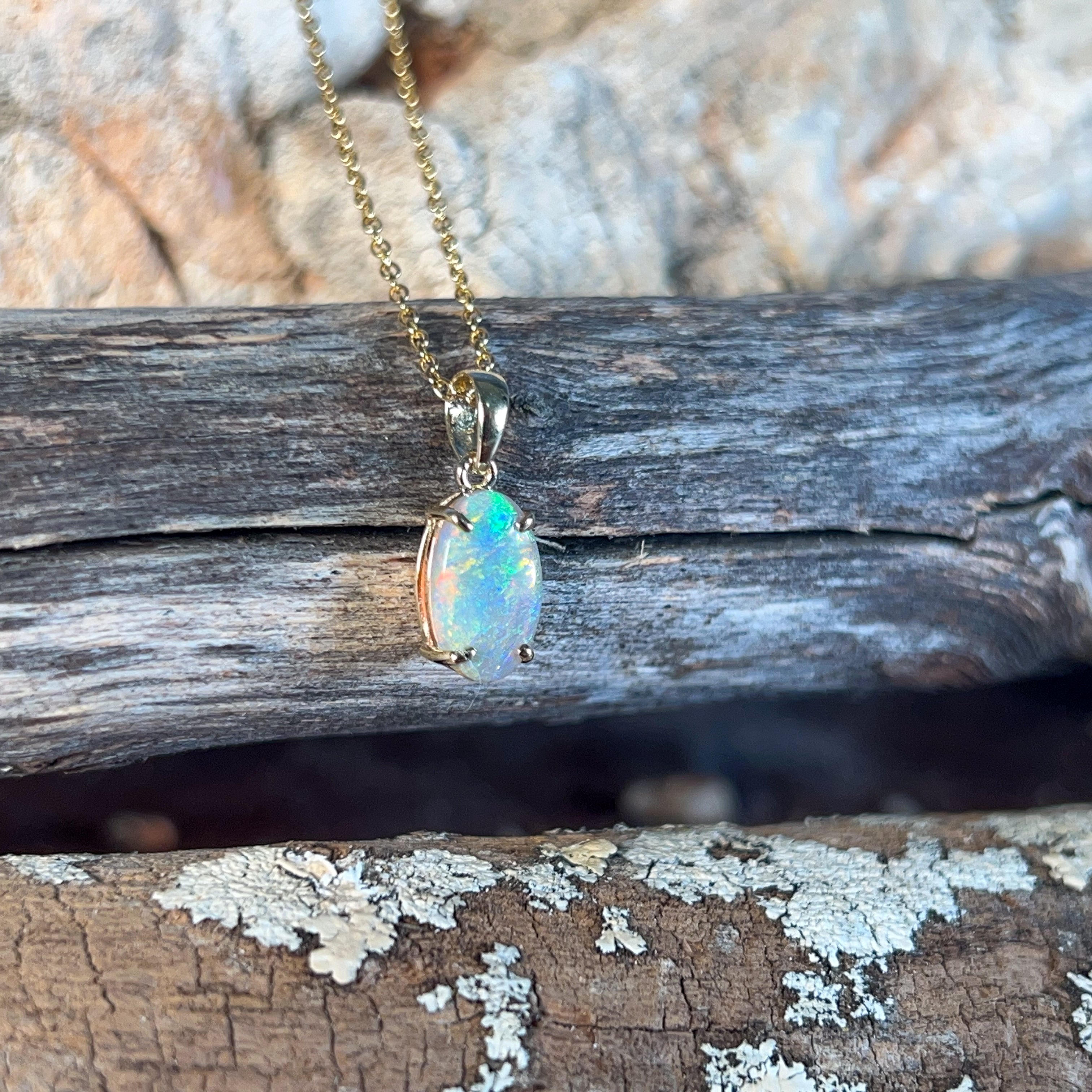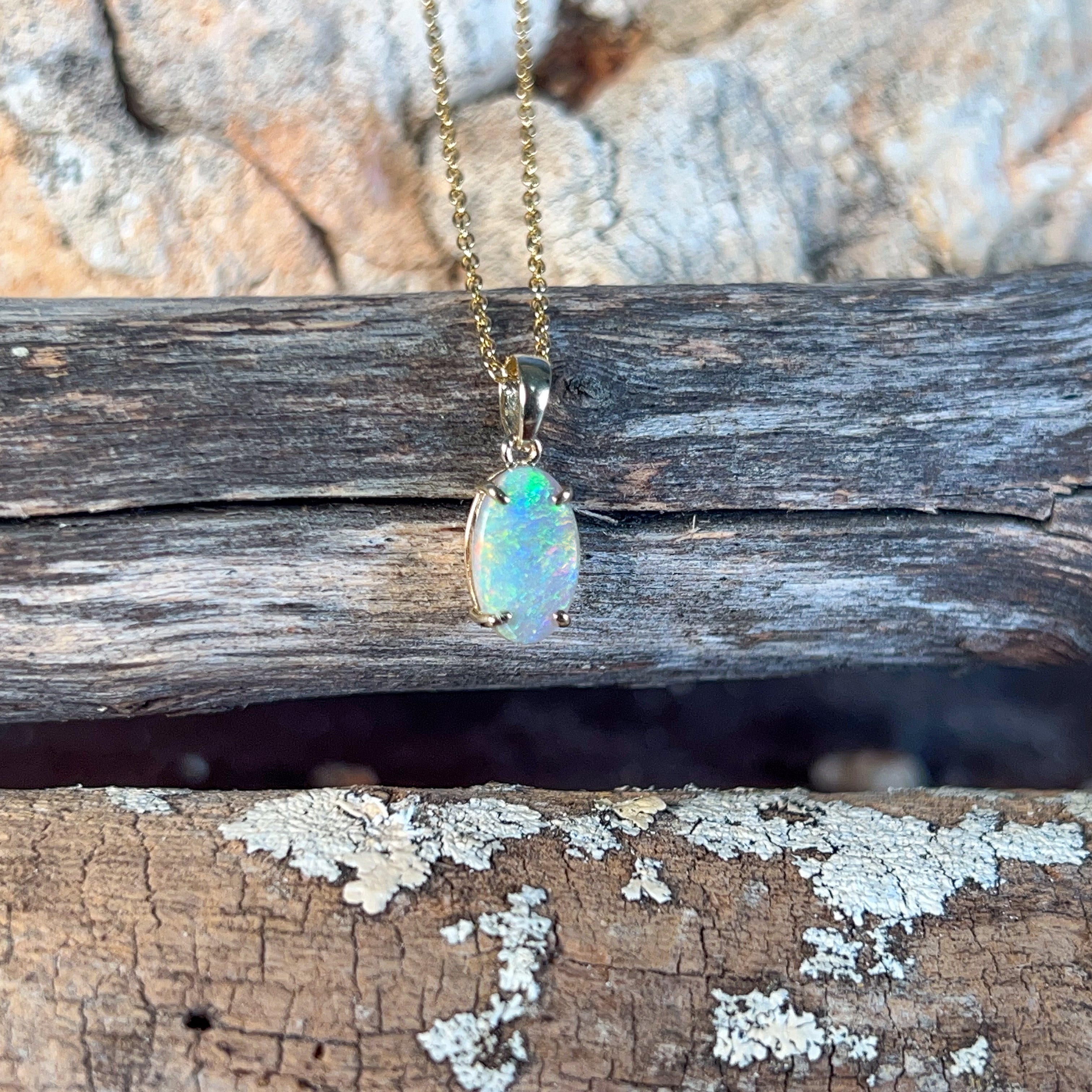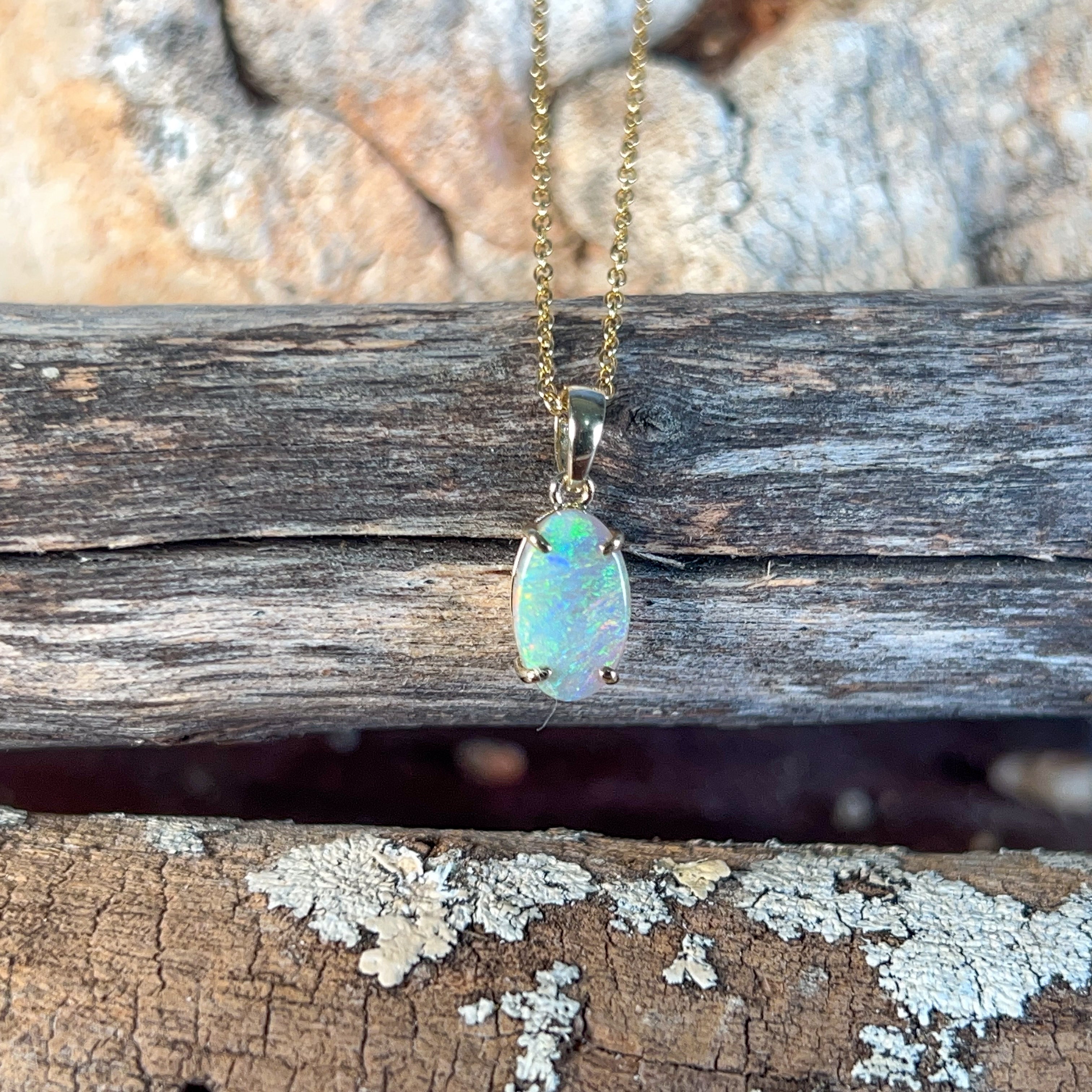 One 9kt Yellow Gold claw set Opal classic pendant