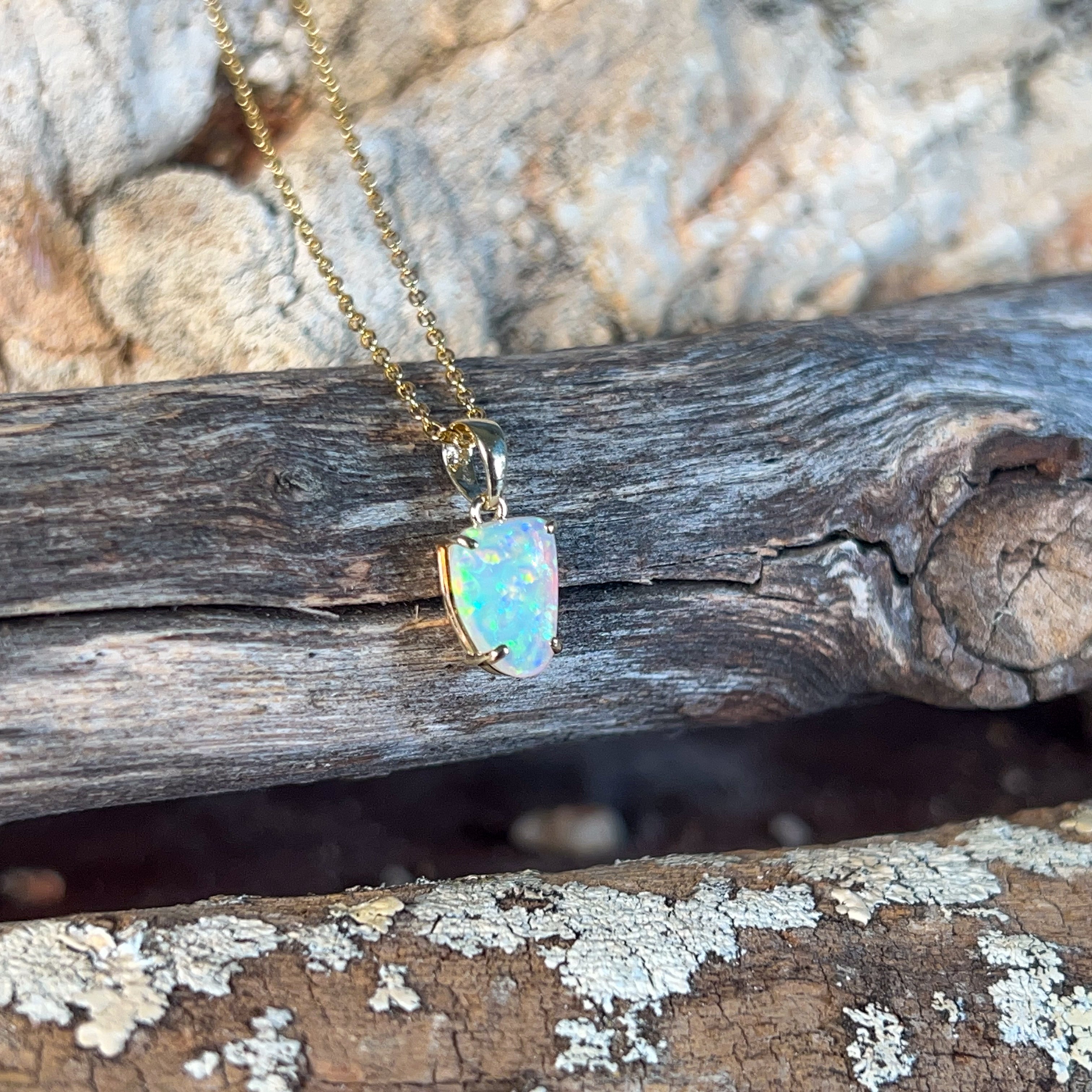 9kt Yellow Gold crystal Opal 1.1ct pendant claw set
