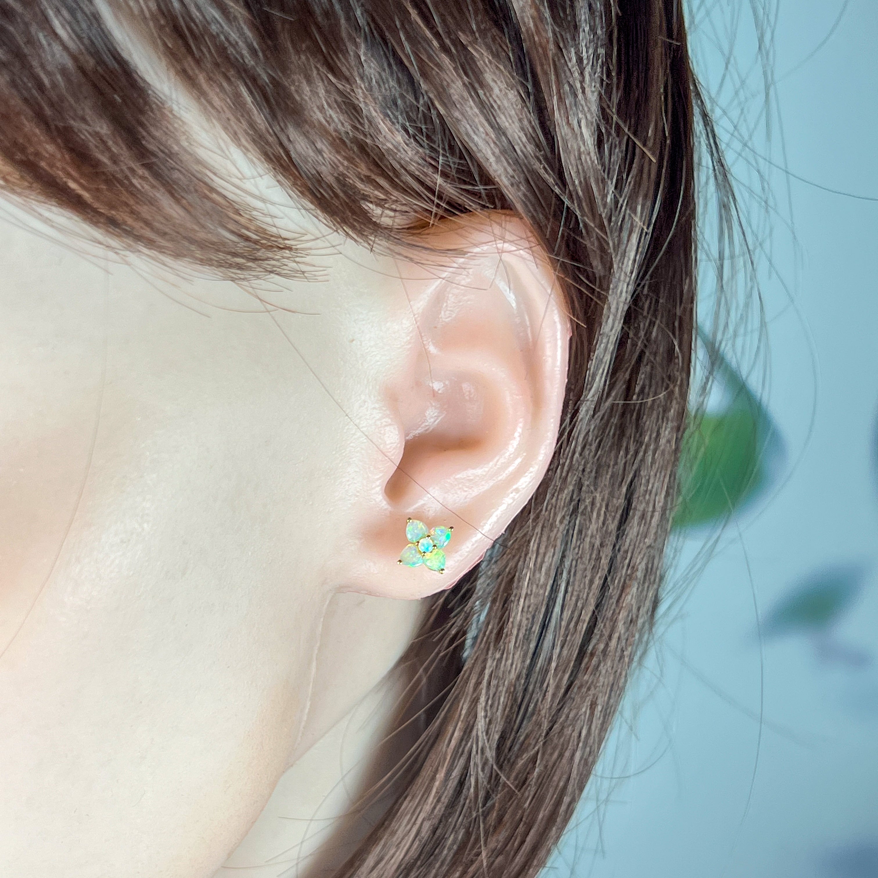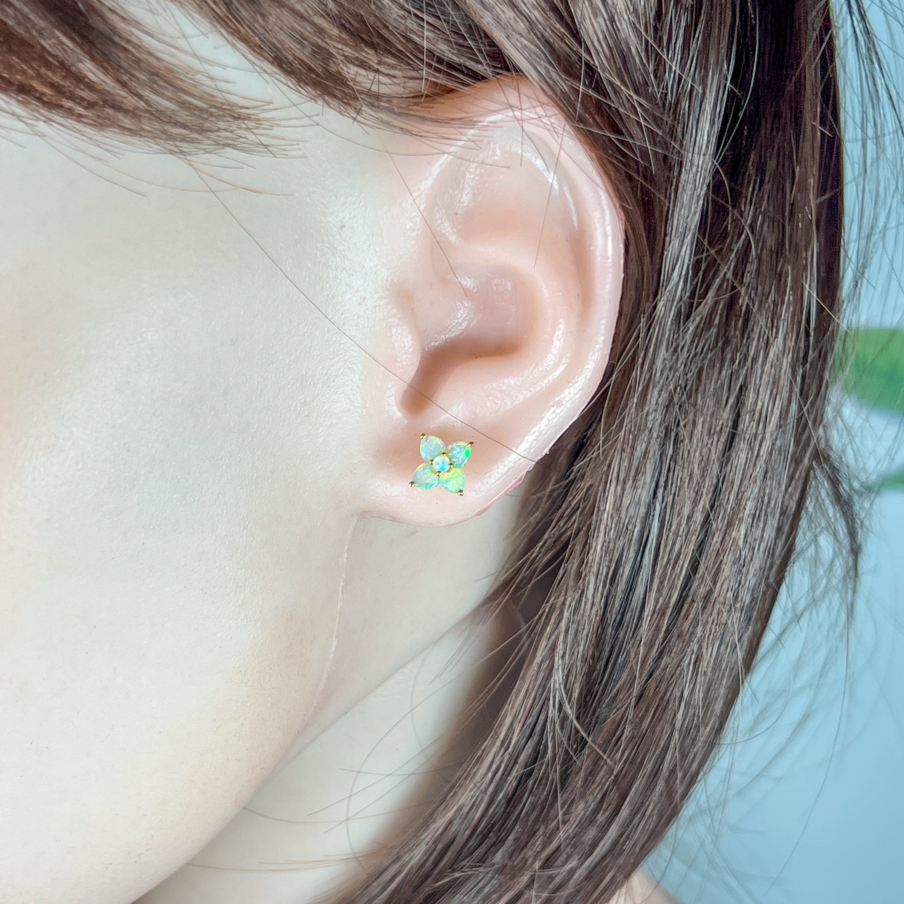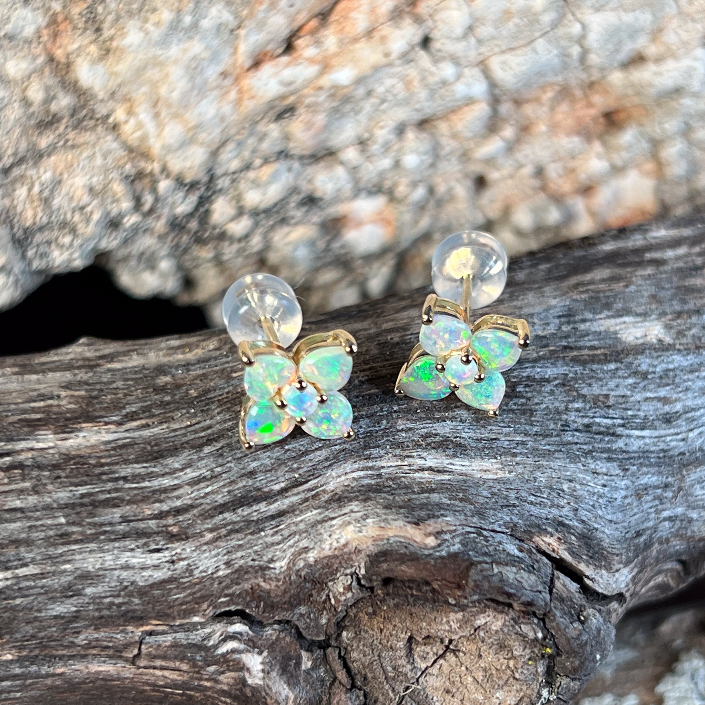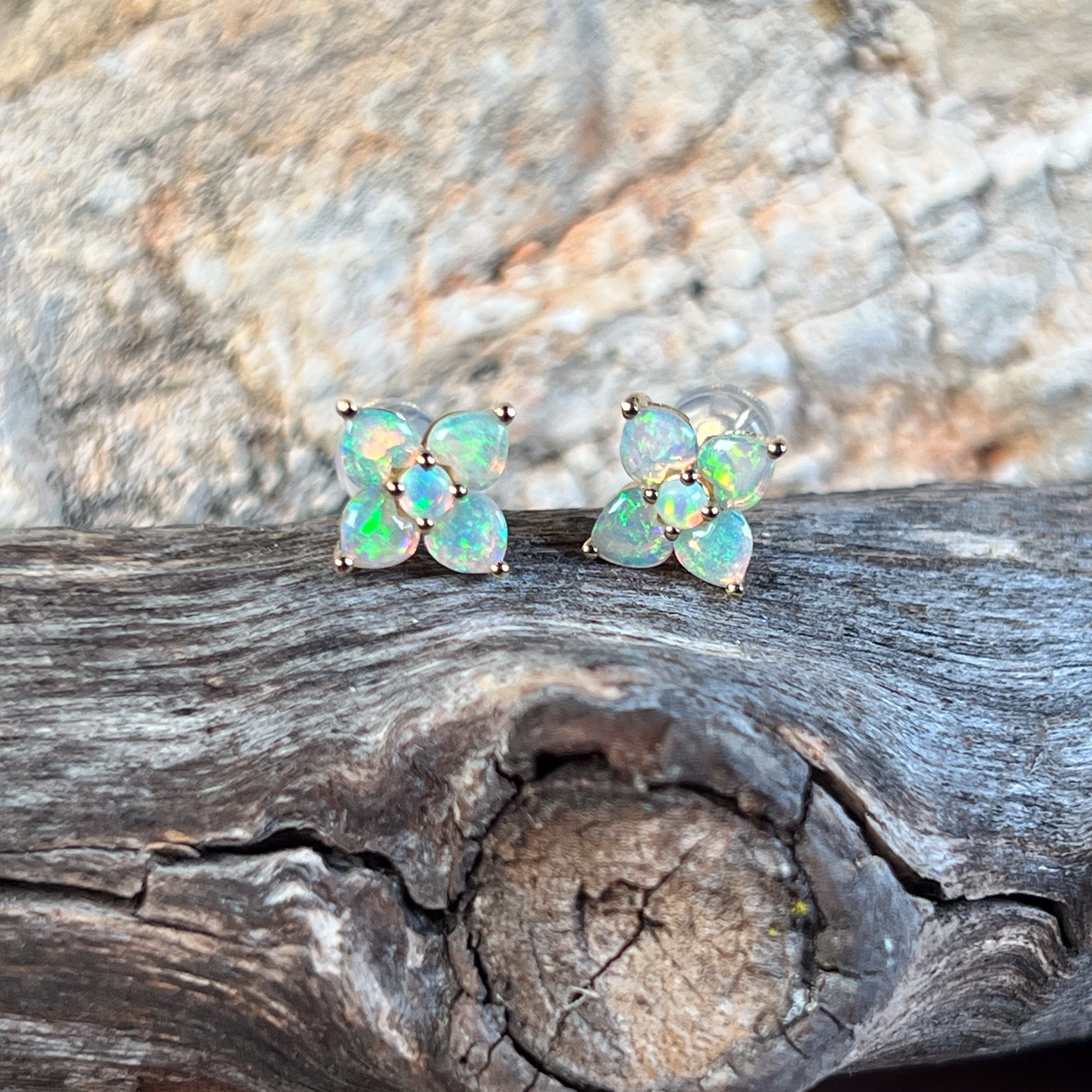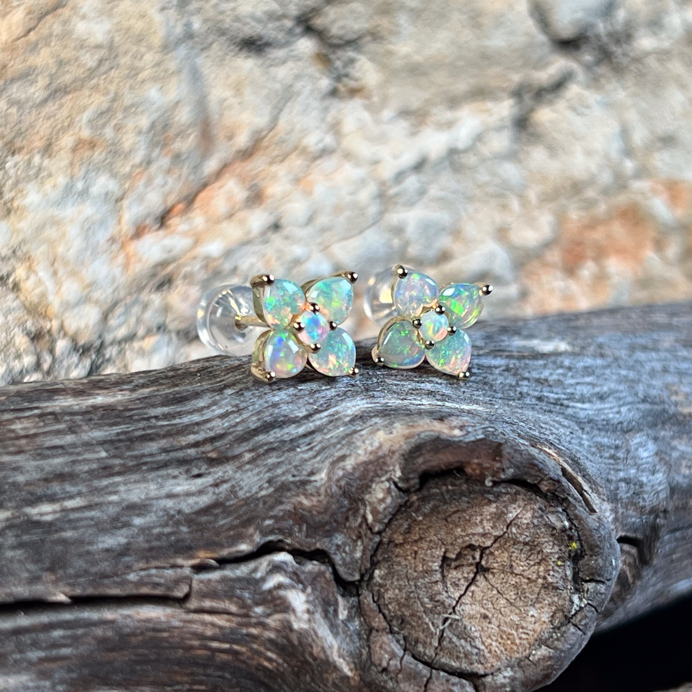 9kt Yellow Gold Opal earrings studs claw set floral design