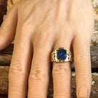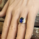 9kt Yellow Gold gents signet style ring with a 12x10mm Opal triplet bezel set