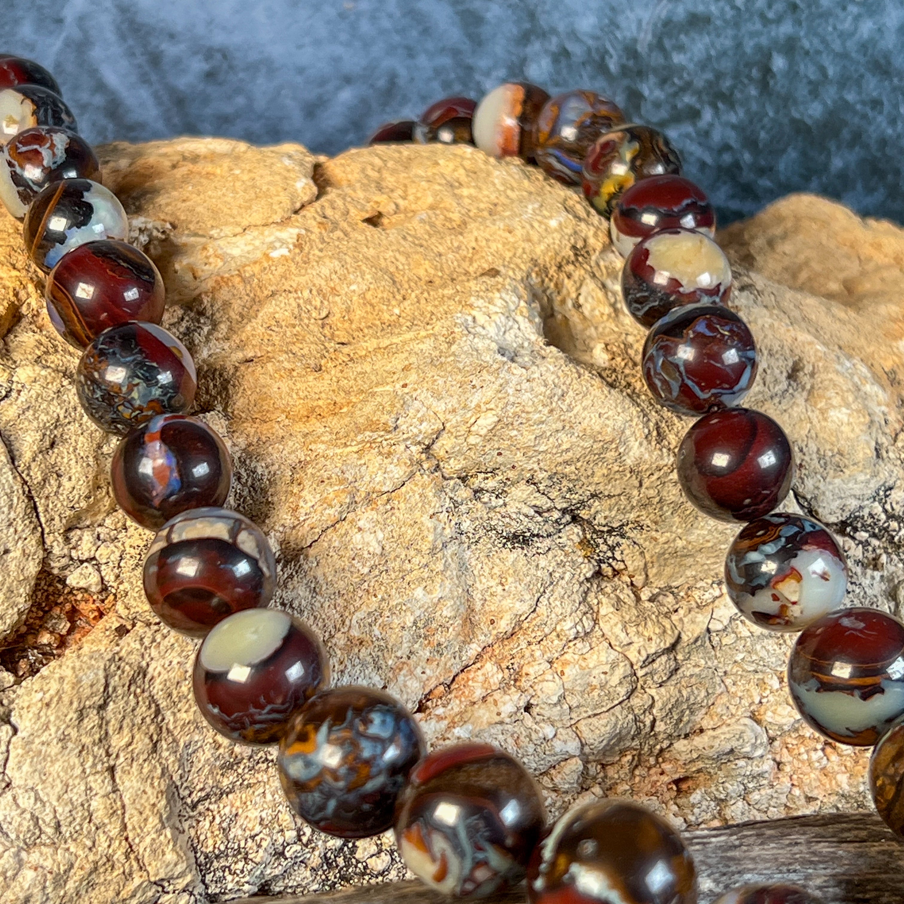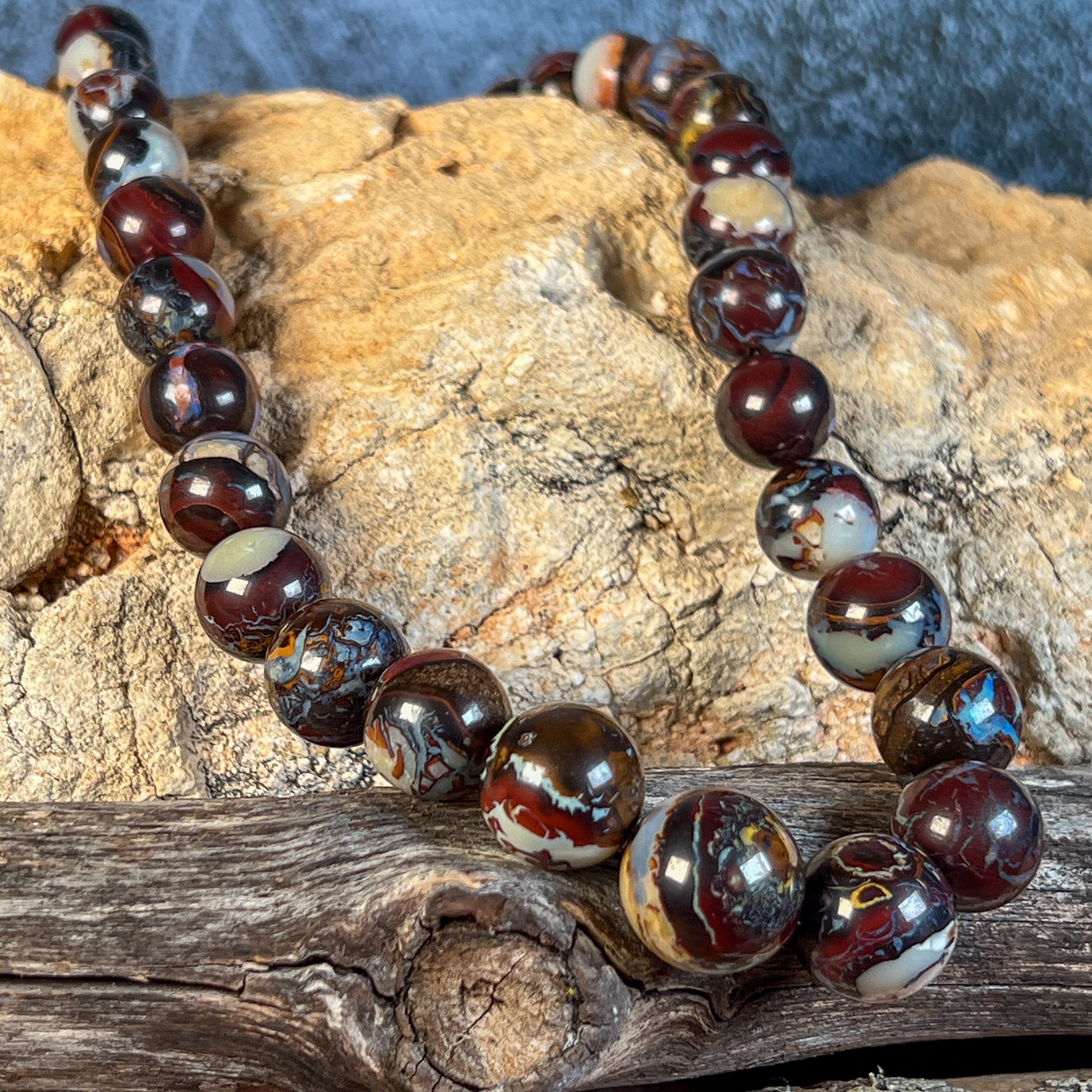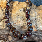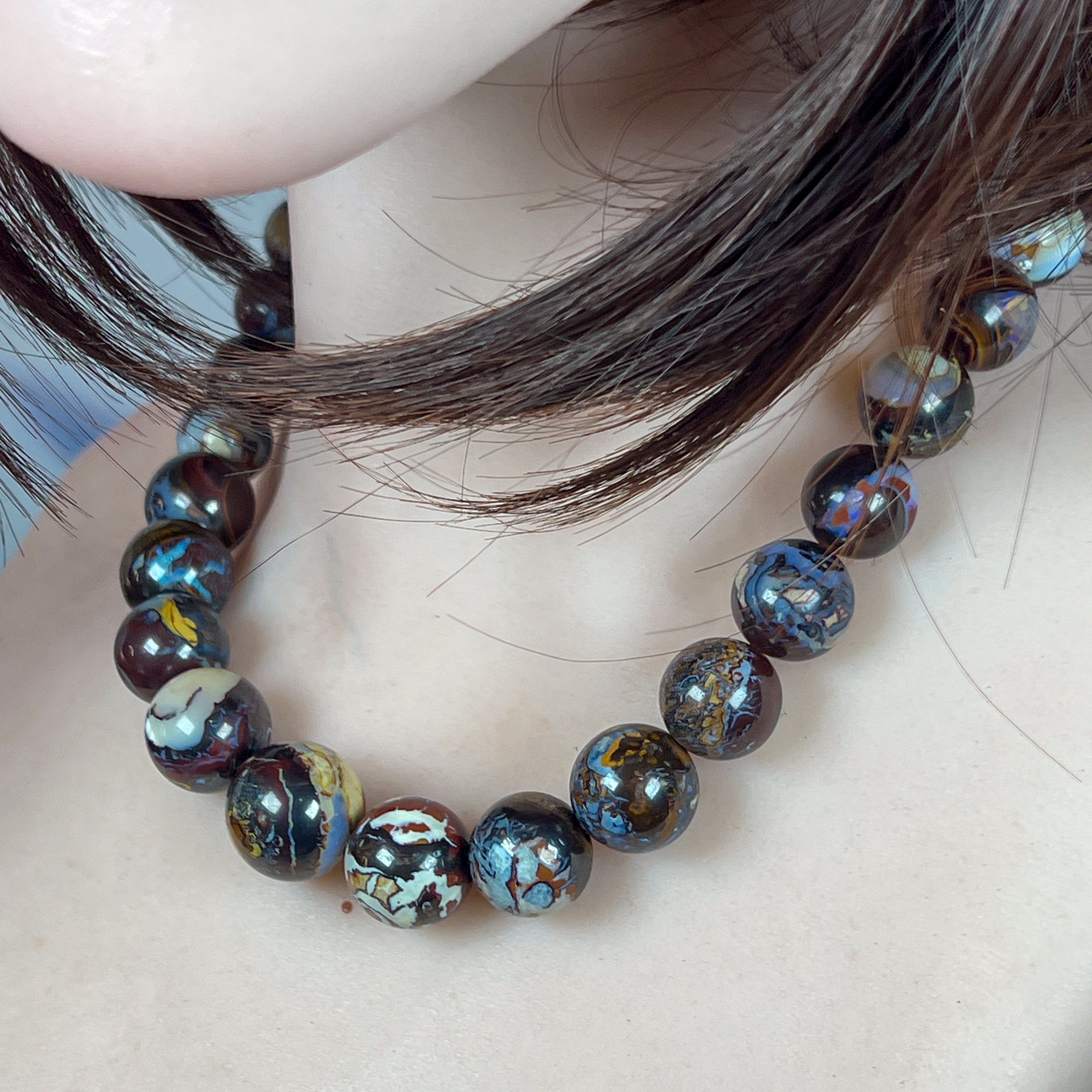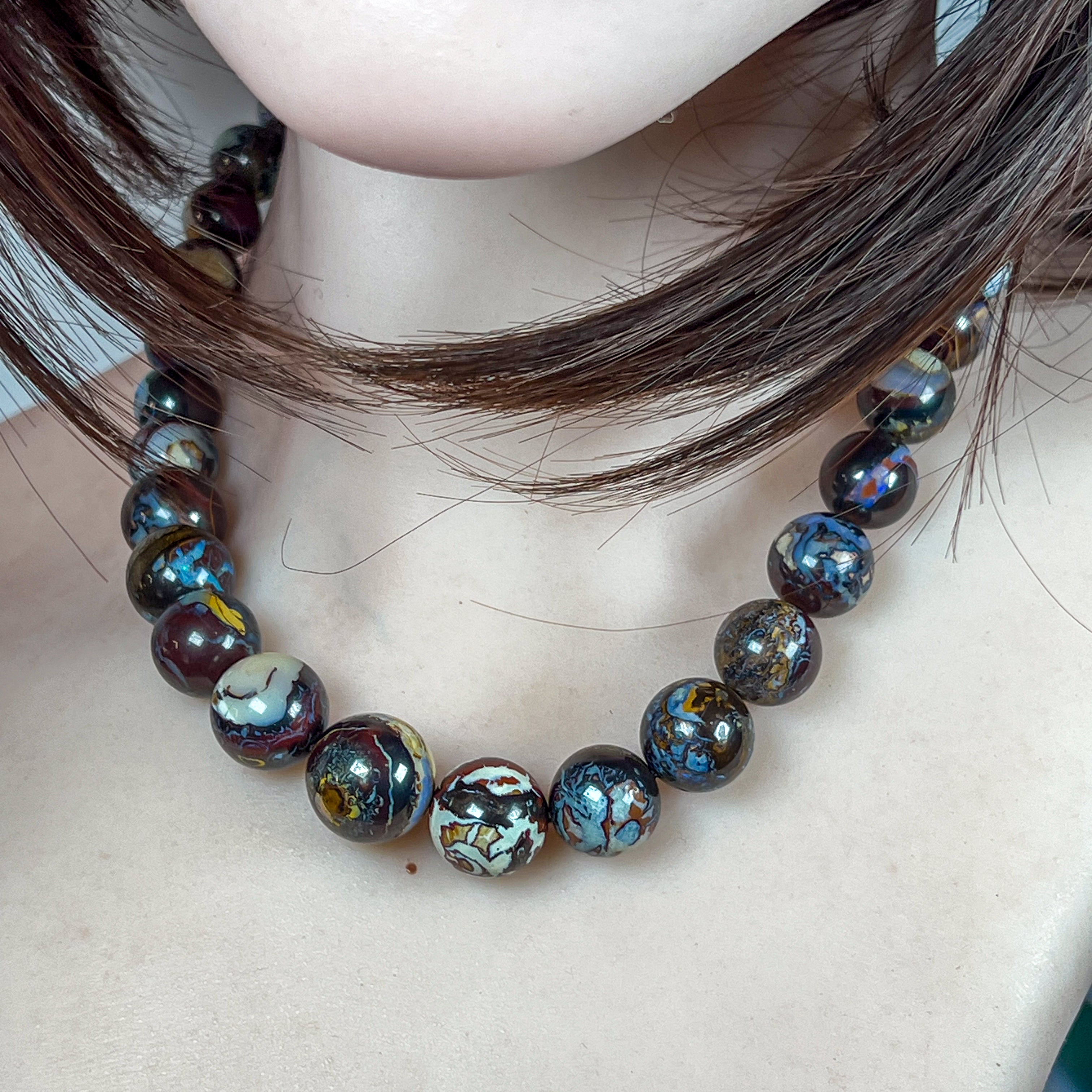 Celebrate the raw beauty of nature with this stunning Boulder Opal graduating size beaded necklace. Each bead showcases the mesmerizing play-of-colour unique to Australian boulder opals, creating a captivating gradient effect as the stones transition in size. Perfect for adding a touch of earthy elegance to any outfit, this piece brings the vibrant hues of the outback right to your neckline. A true conversation starter that proves Mother Nature is the ultimate jewellery designer!
