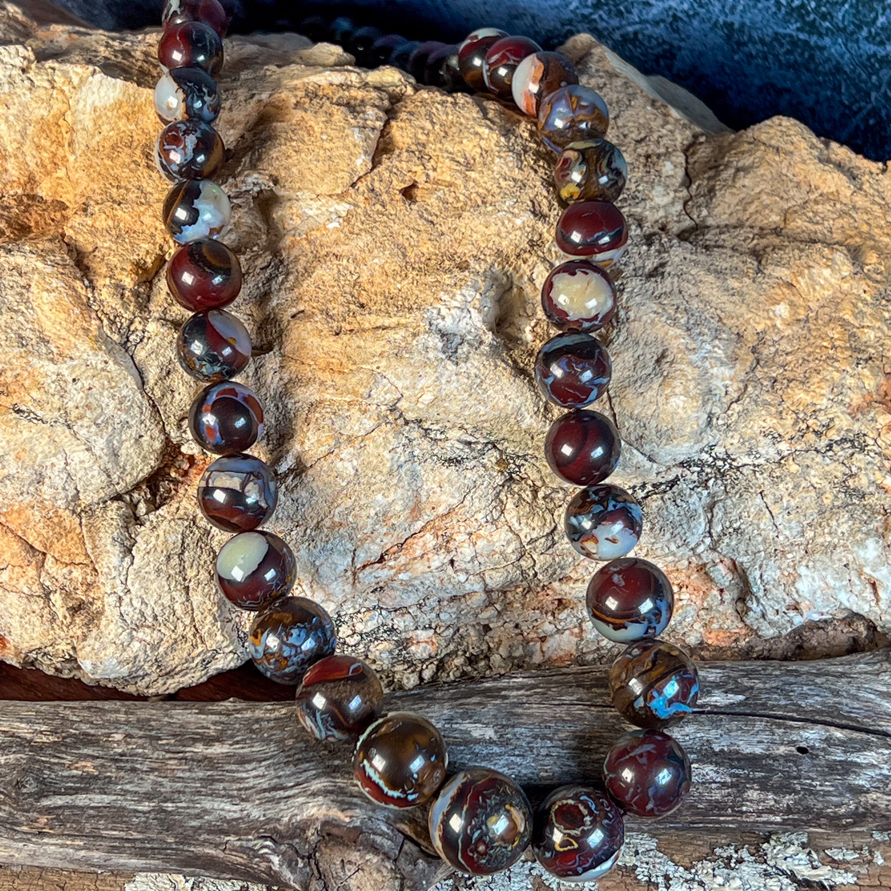 One Sterling Silver clasp beaded graduating Boulder Opal necklace