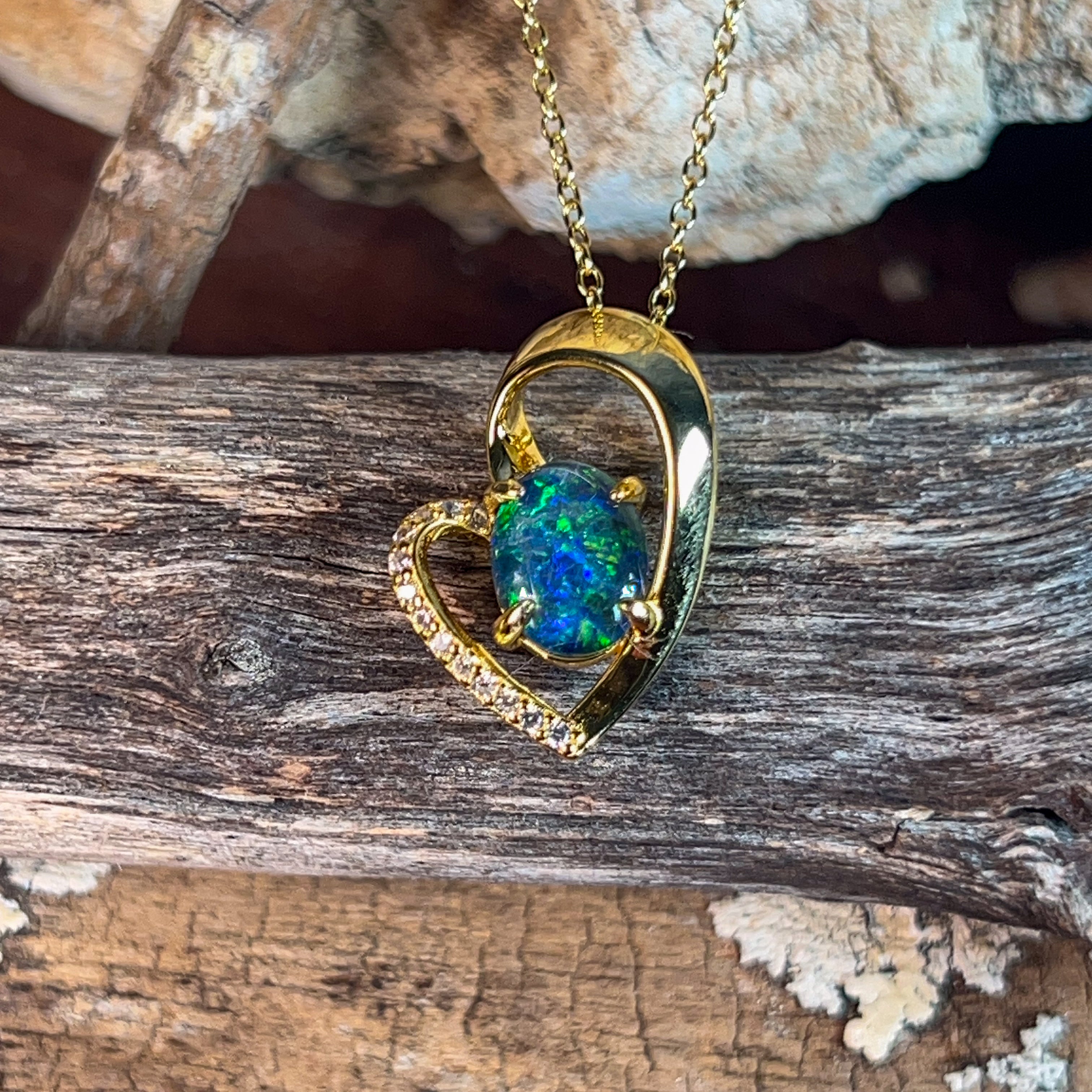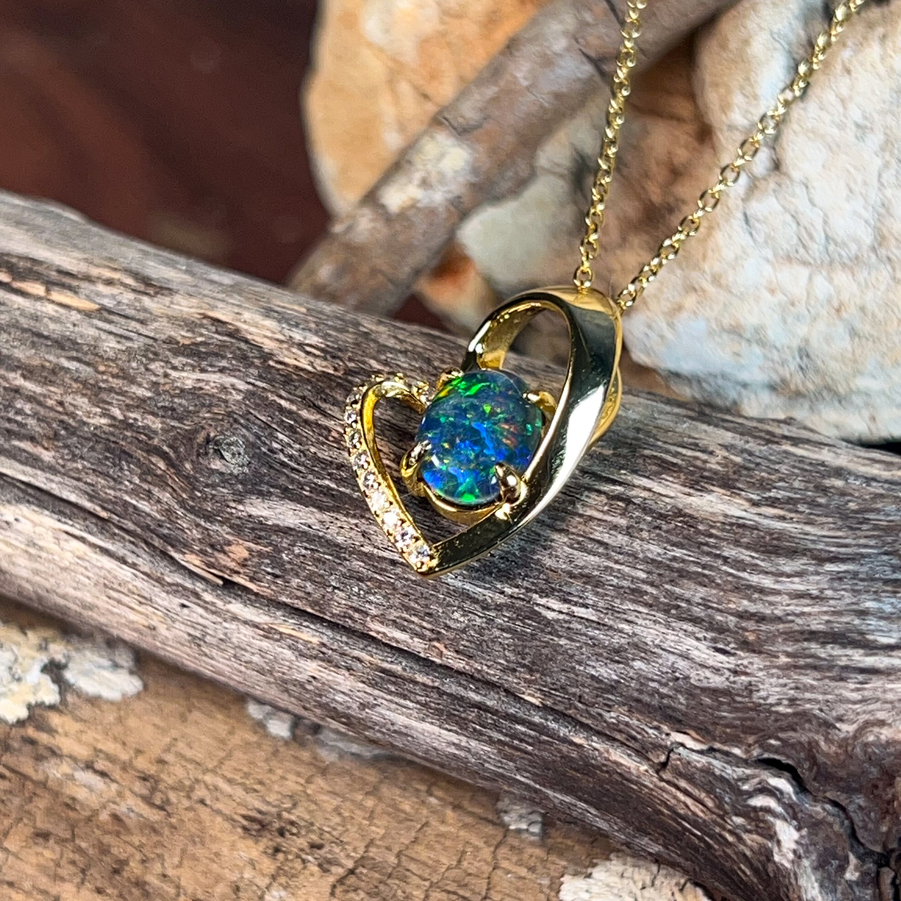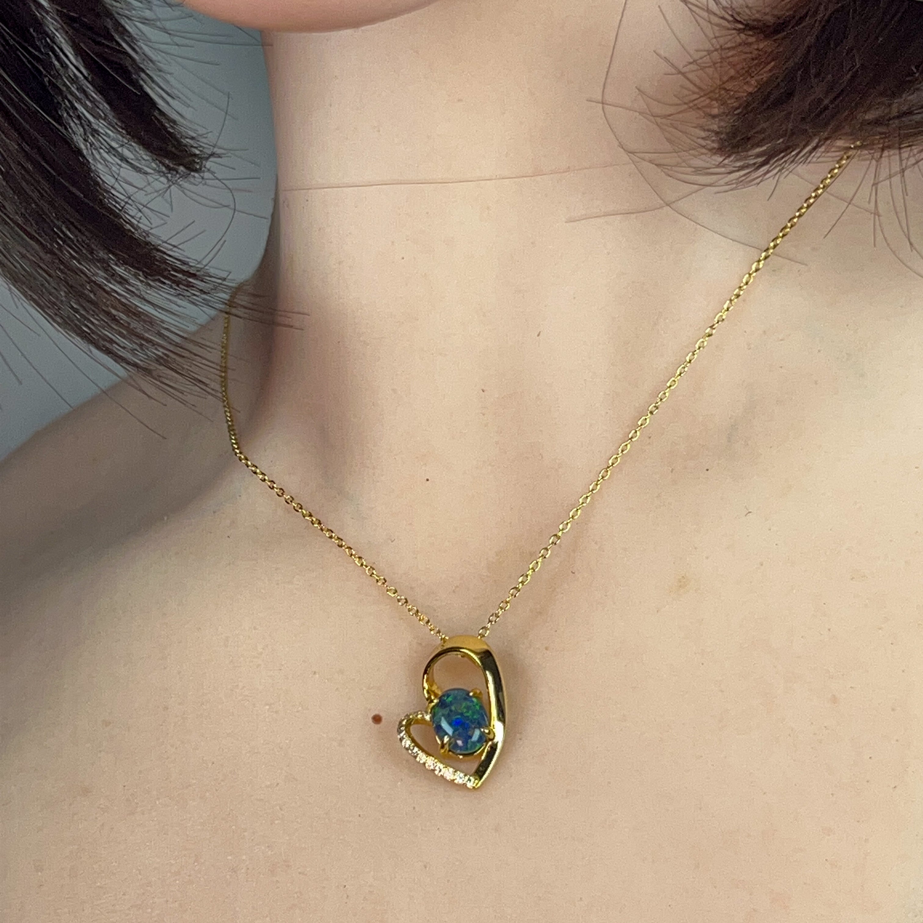 Wear your heart on your sleeve—or better yet, around your neck! This charming gold-plated pendant features a classic heart design showcasing a stunning 9x7mm opal triplet. The play of colour in the opal catches the light beautifully, making it the perfect everyday piece or thoughtful gift. Delicate yet eye-catching, this slider pendant adds a touch of warmth and elegance to any outfit. A timeless treasure that celebrates love and natural beauty.