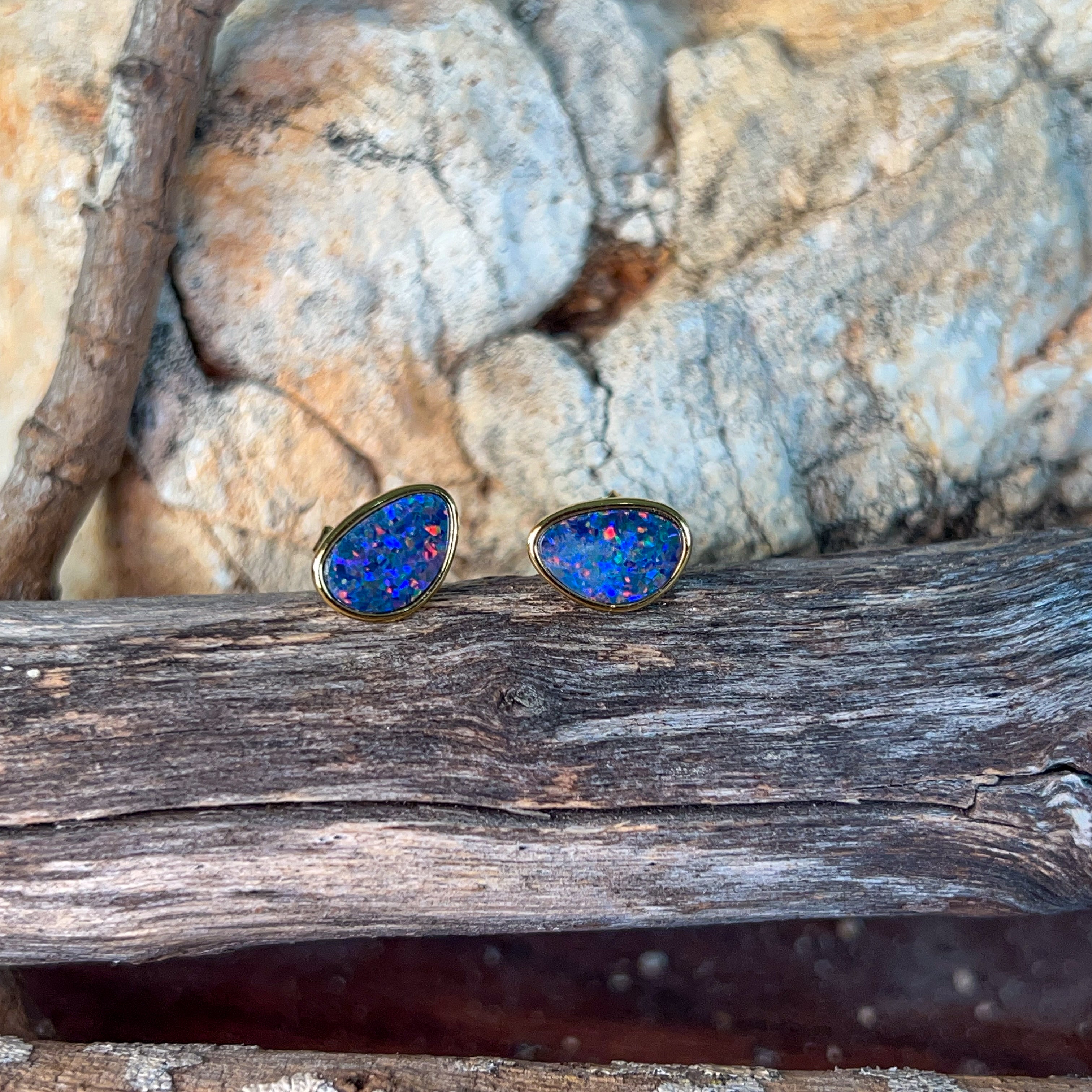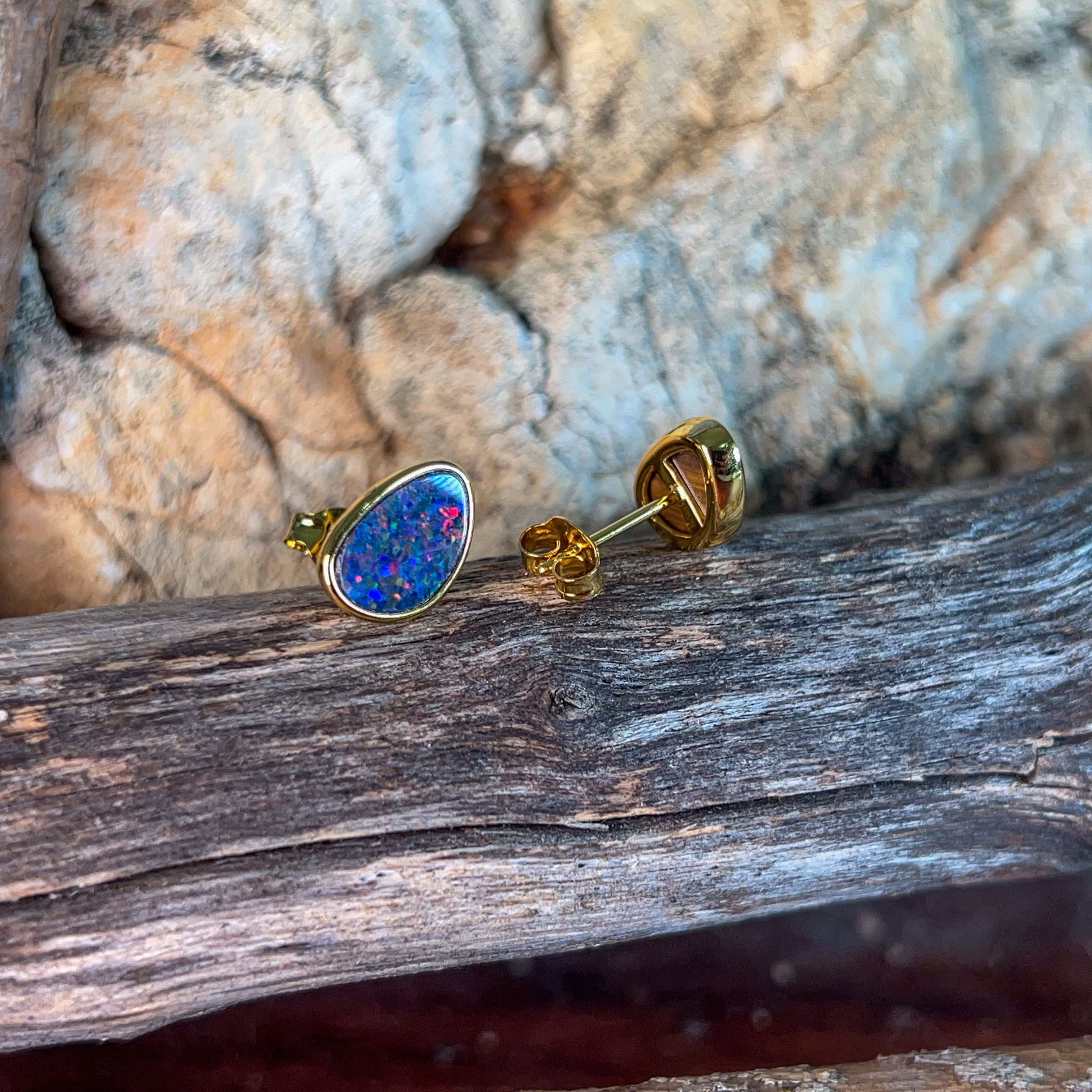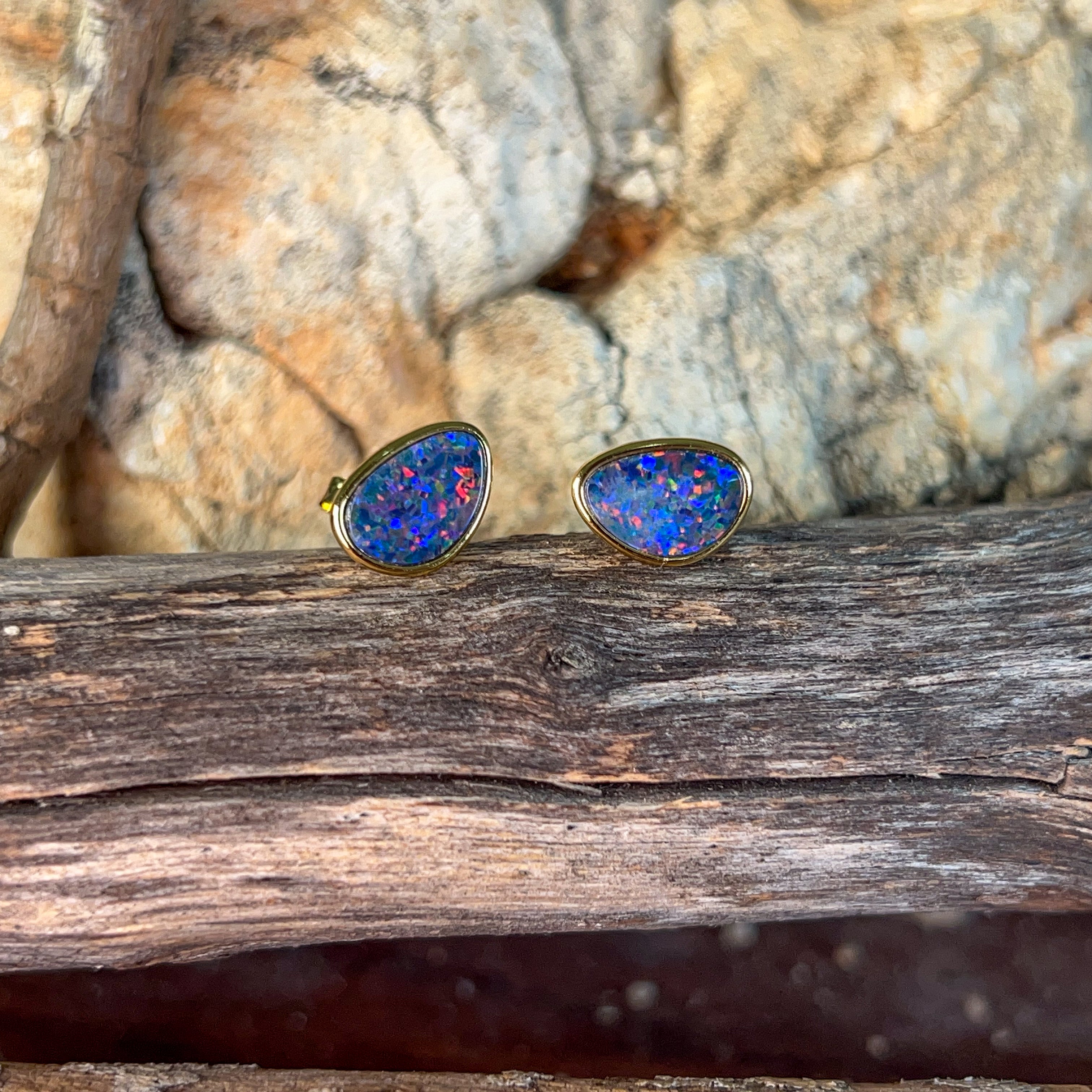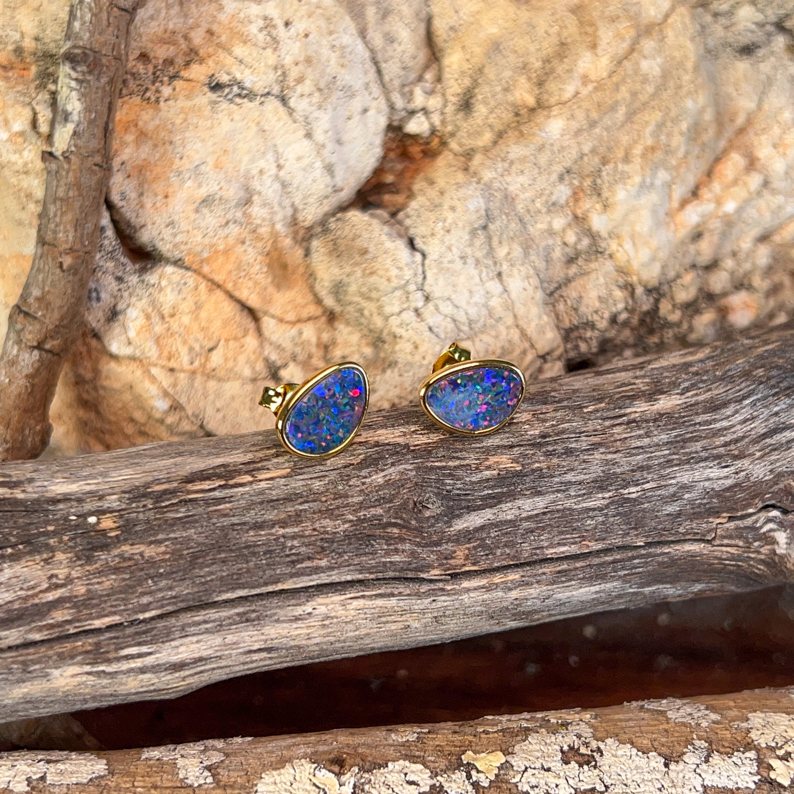 Elevate your everyday elegance with these captivating Gold Plated Silver Opal Doublet Studs. Featuring rich, deep colours that dance across each 11x8mm freeform stone, these studs showcase the mesmerising play of light that makes opals truly special. The luxurious gold plating over sterling silver creates a warm, sophisticated frame that complements the jewel-toned hues within each doublet. Perfect for adding a touch of refined colour to any occasion, these studs deliver genuine opal beauty in a wearable, versatile size. Discover why opal lovers choose pieces that celebrate nature's most enchanting gemstone.