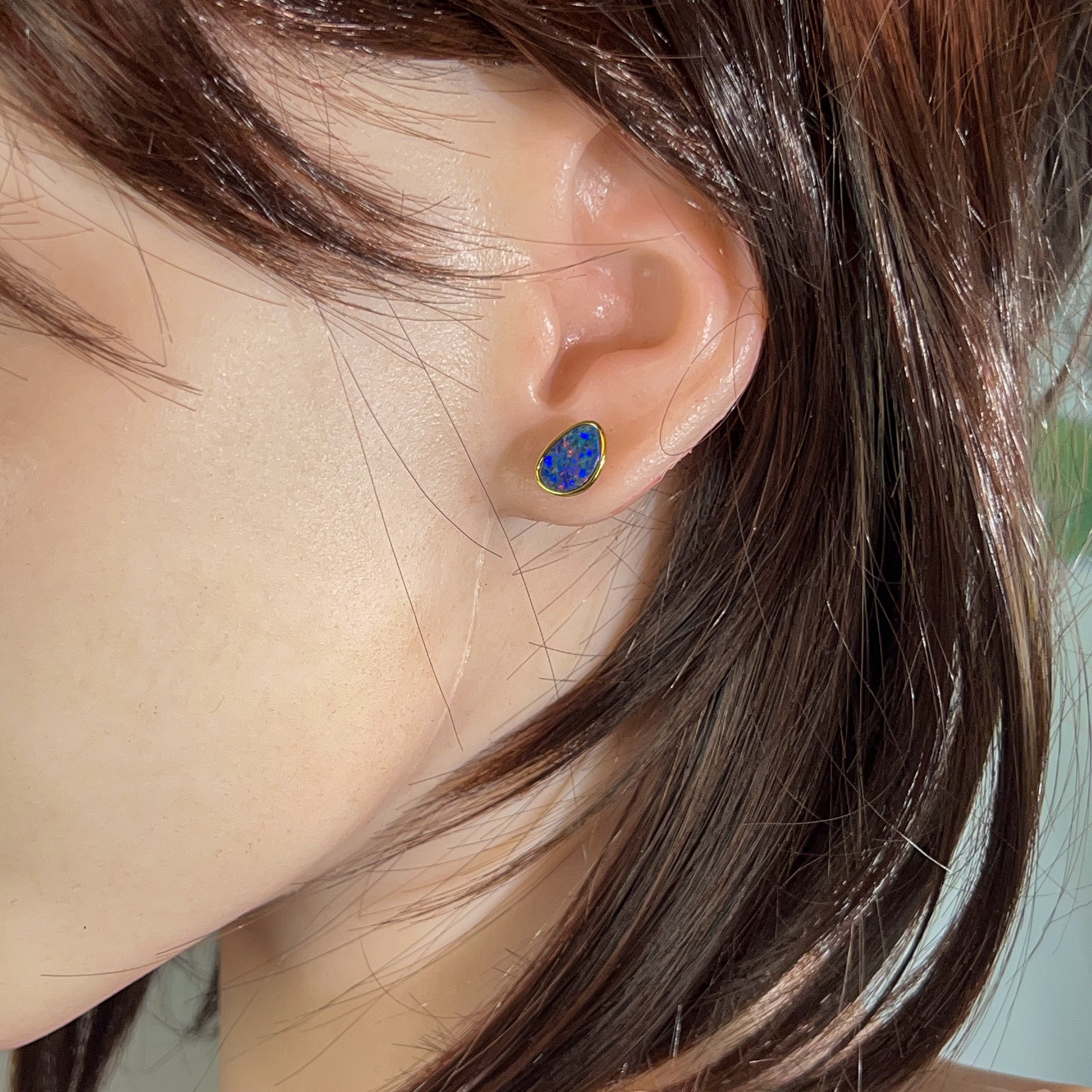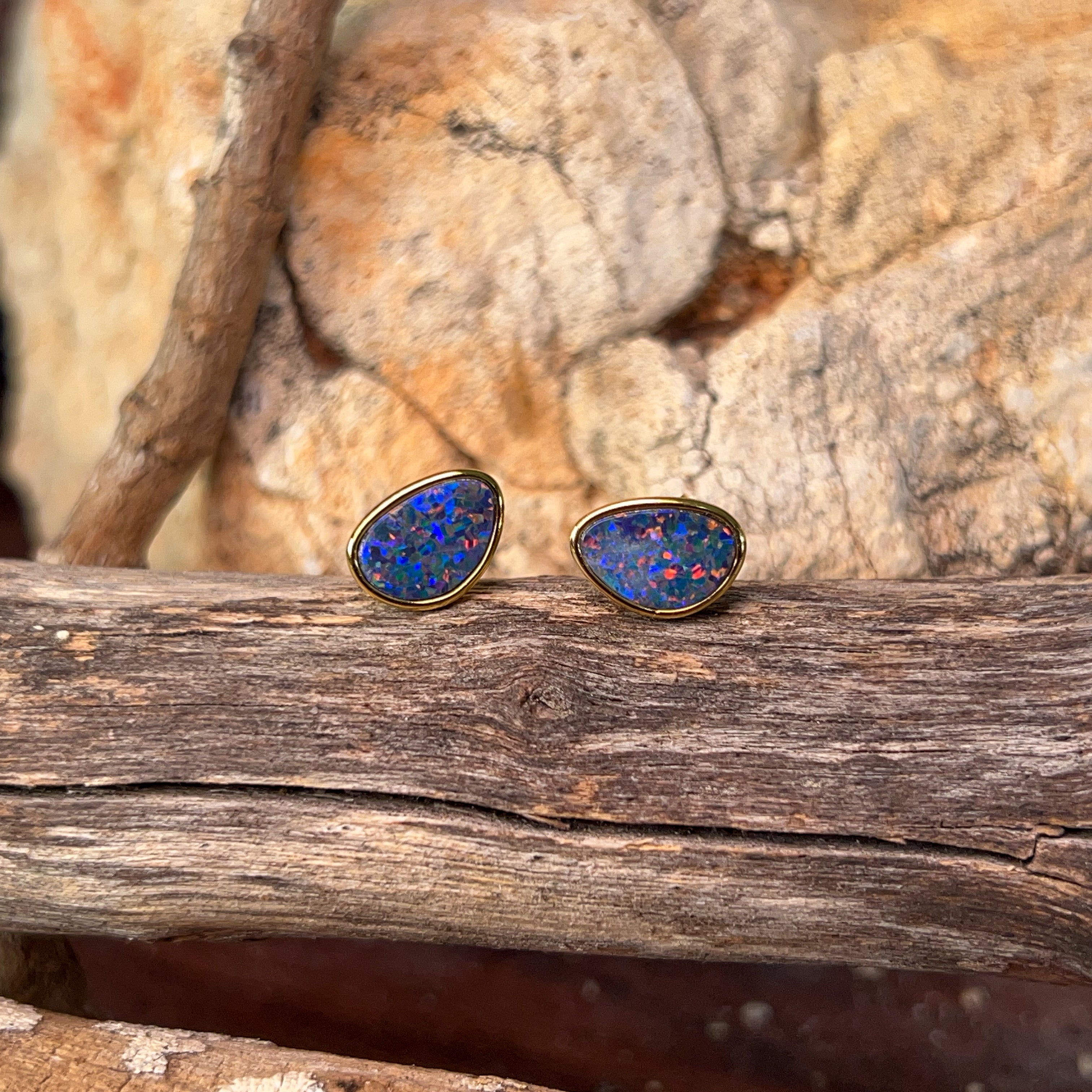 Gold Plated Silver 11x8mm Freeform Opal doublet studs