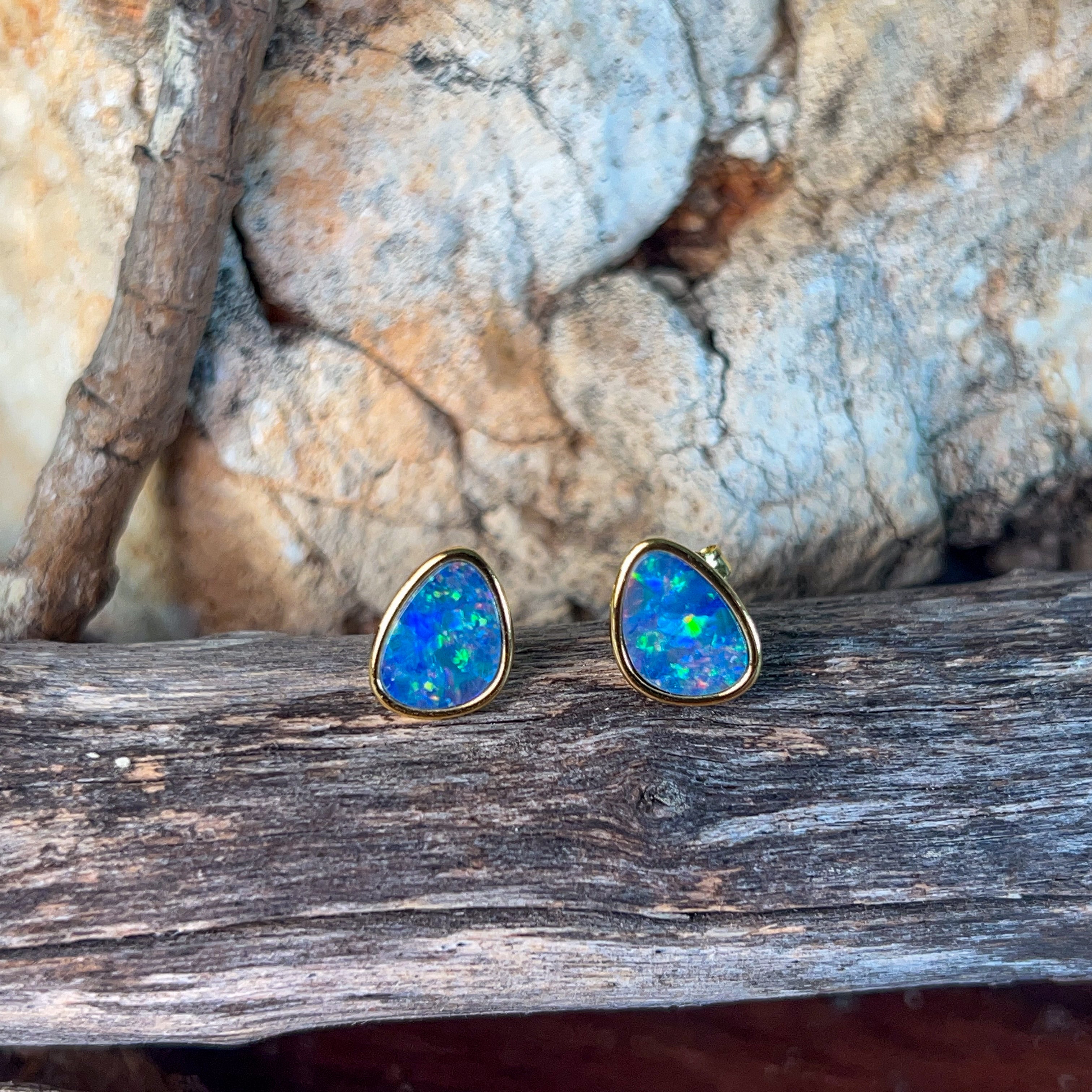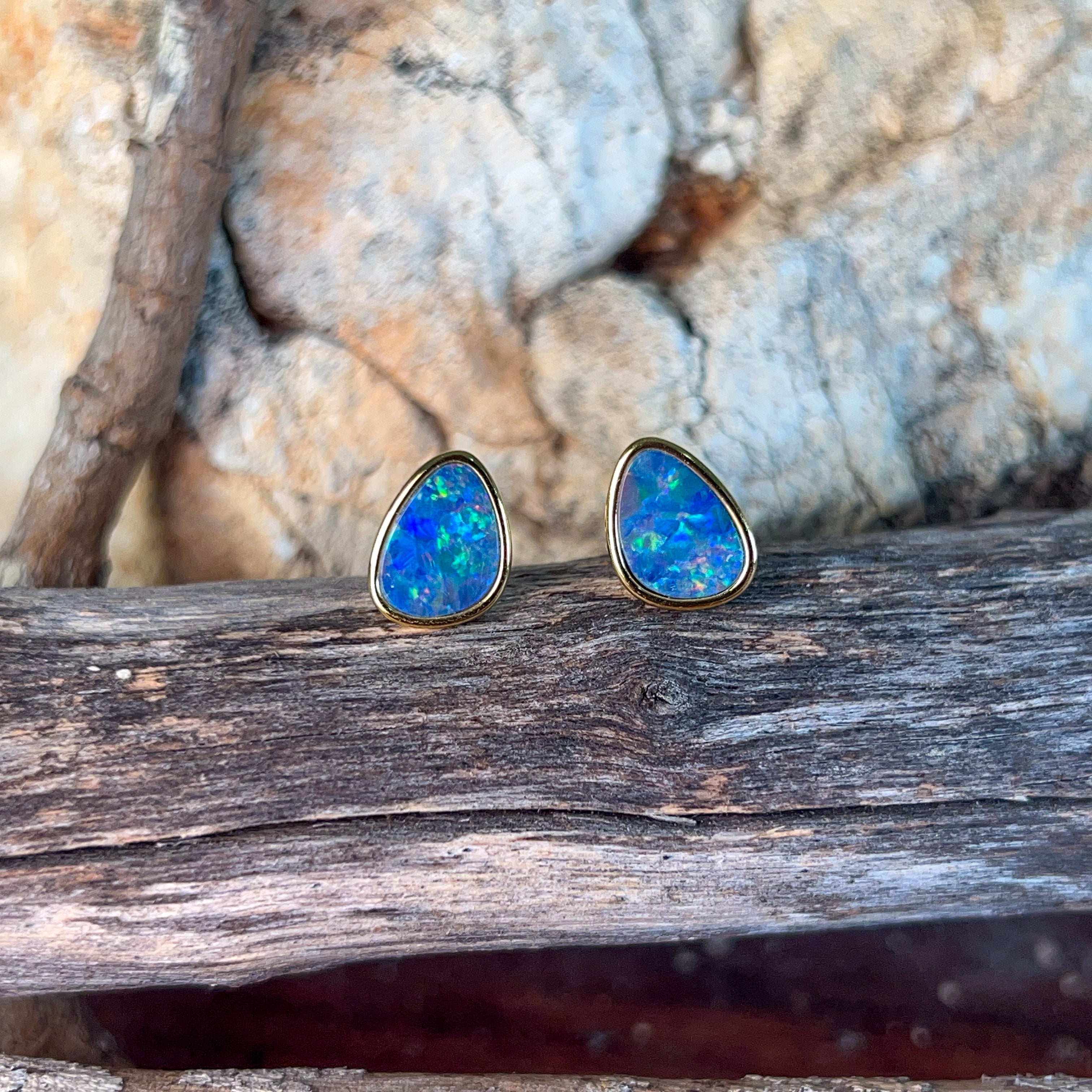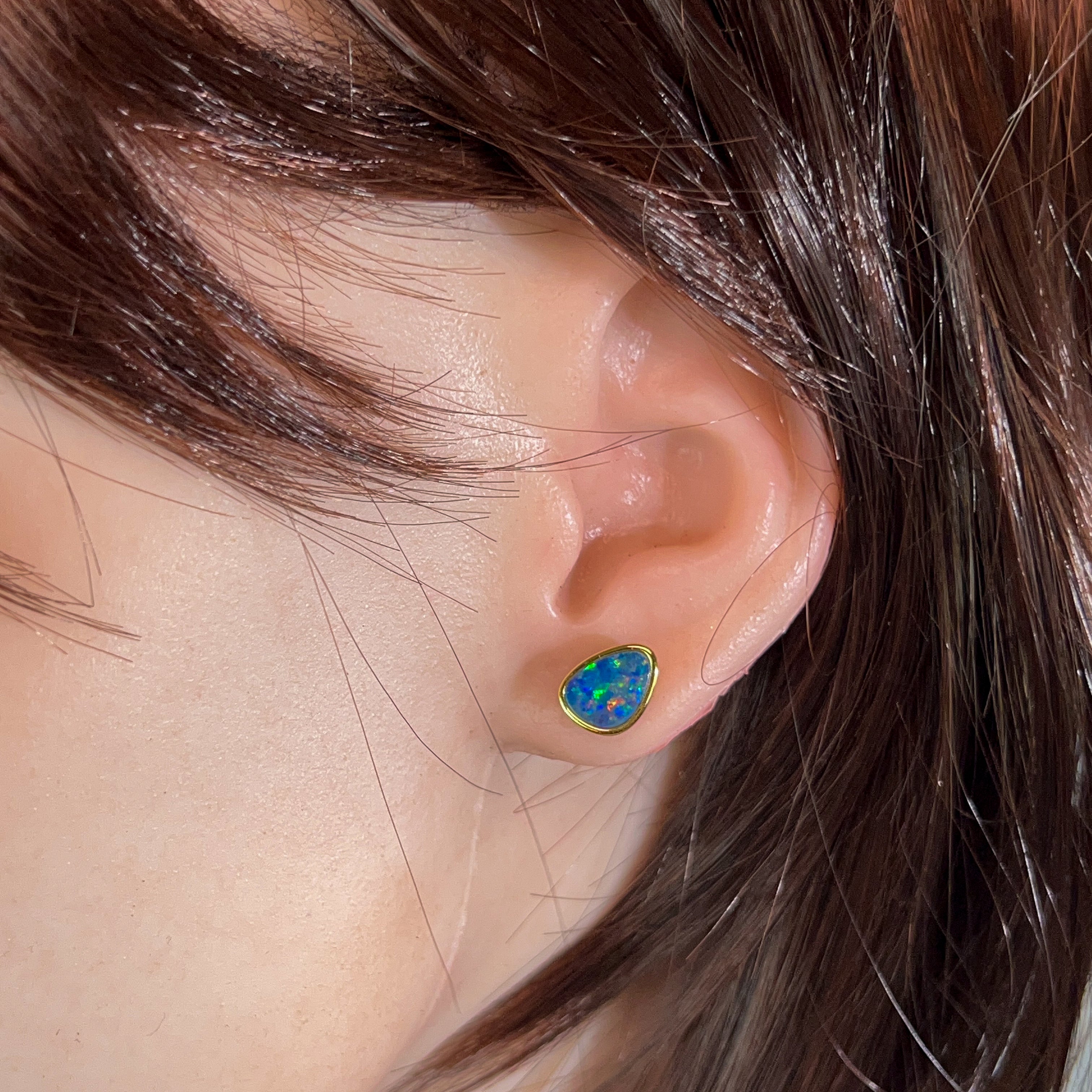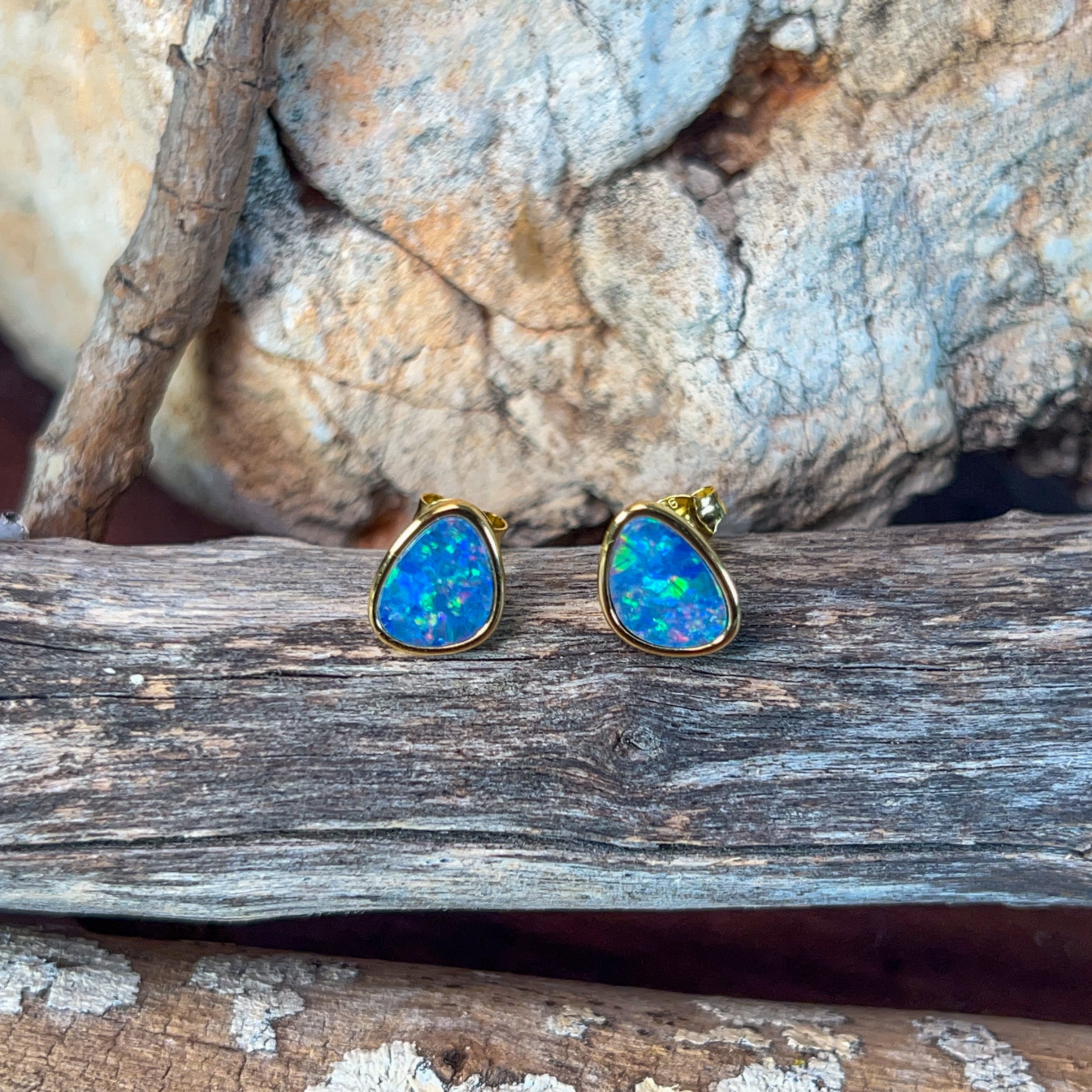 Elevate your everyday elegance with these stunning opal doublet studs, where precious opal meets lustrous gold-plated silver. The 11x8mm stones showcase the mesmerizing play of colour that makes opals truly captivating, while the secure stud setting keeps them perfectly in place. Ideal for adding a touch of sophistication to any occasion, these pieces combine timeless appeal with modern minimalism. A versatile investment that transforms both casual and formal looks with effortless grace.