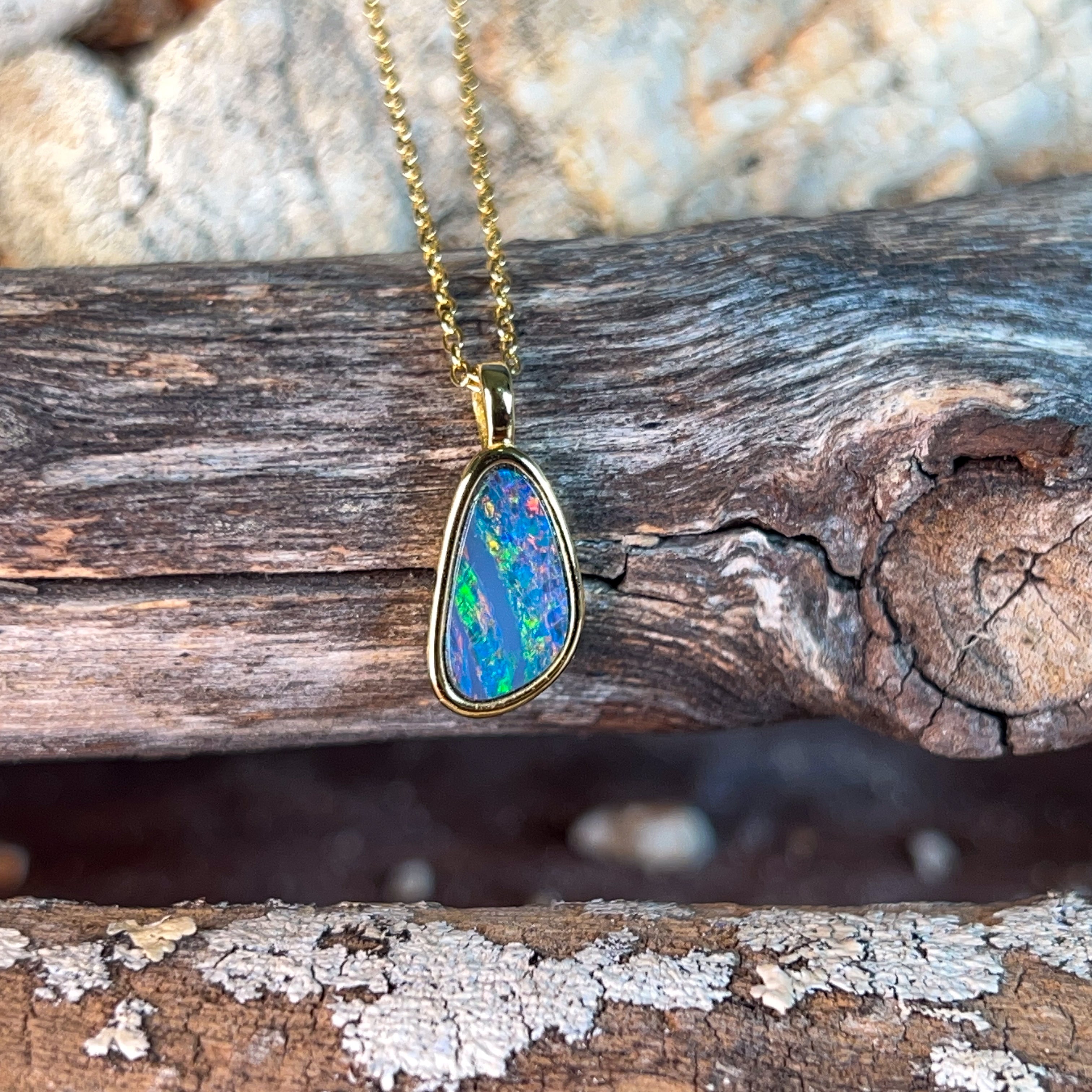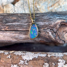 Gold plated silver 13x8mm opal doublet pendant