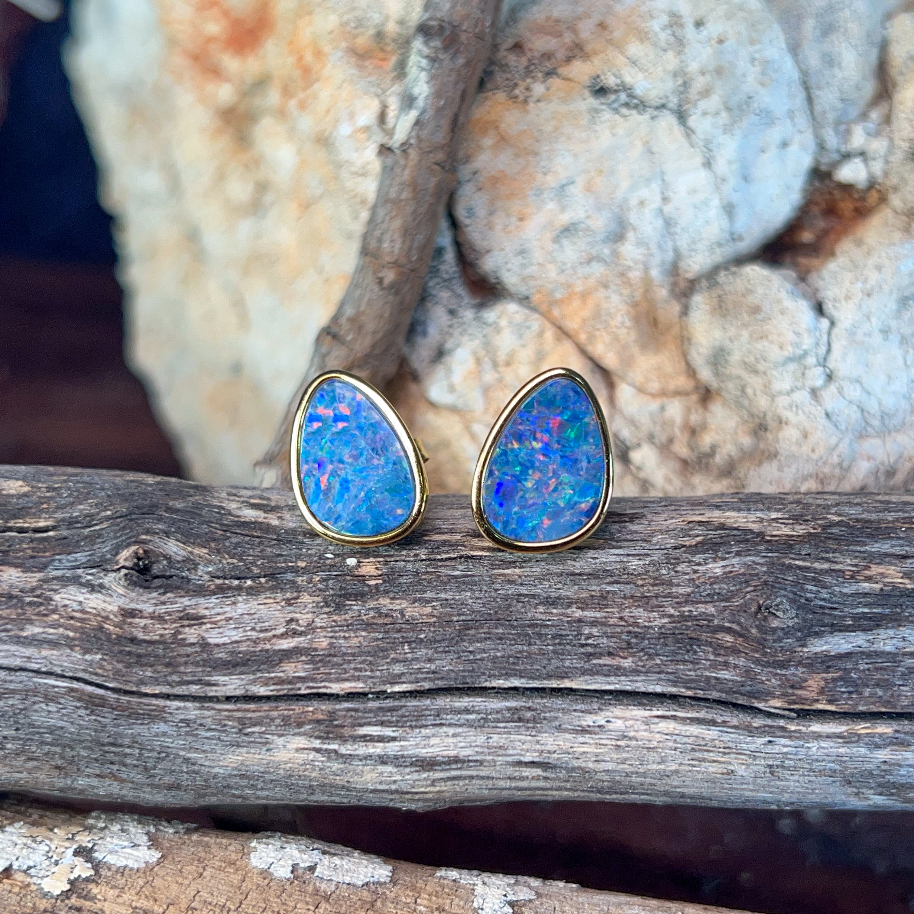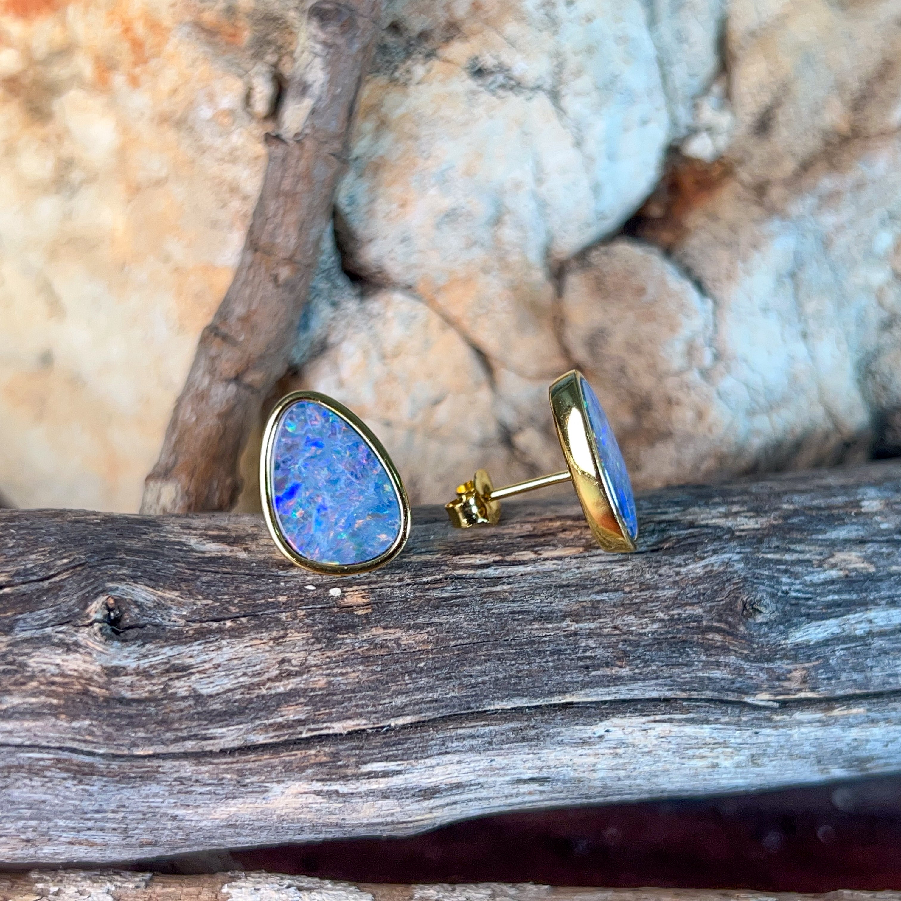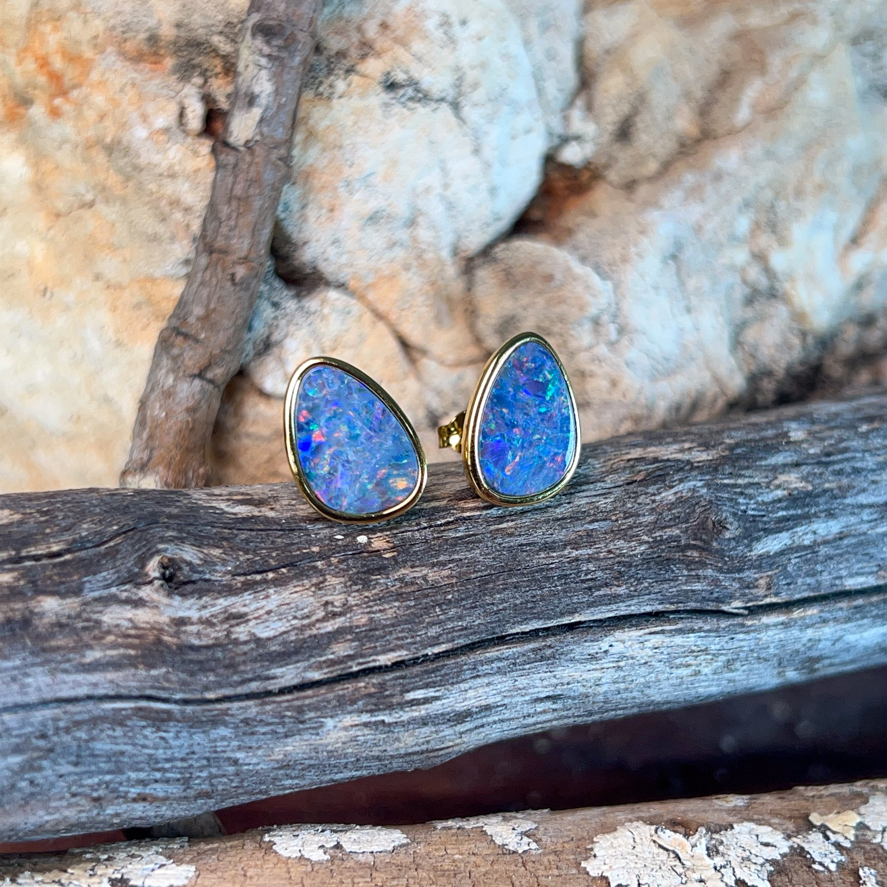 Elevate your everyday elegance with these stunning Gold Plated Silver Opal Doublet Studs. Featuring genuine opal doublets set in lustrous gold-plated silver, these 13x9mm studs deliver sophisticated colour and play-of-light that catches the eye. Perfect for those seeking timeless jewellery that transitions seamlessly from day to night, these pieces combine the beauty of natural opal with the durability of quality metalwork. A versatile addition to any collection, they're ideal for gifting or treating yourself to something truly special.