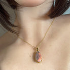 Discover the captivating allure of this exquisite Gold Plated Silver Black Opal pendant, featuring a stunning 7.08ct natural black opal that showcases mesmerising flashes of colour. The luxurious gold plating over sterling silver creates an elegant frame that enhances the opal's dramatic play-of-colour, making it a truly distinctive statement piece. Perfect for those who appreciate rare gemstones and timeless sophistication, this pendant combines the prestige of precious metals with the unparalleled beauty of Australian black opal. An investment in wearable art that will captivate admirers and become a cherished heirloom.