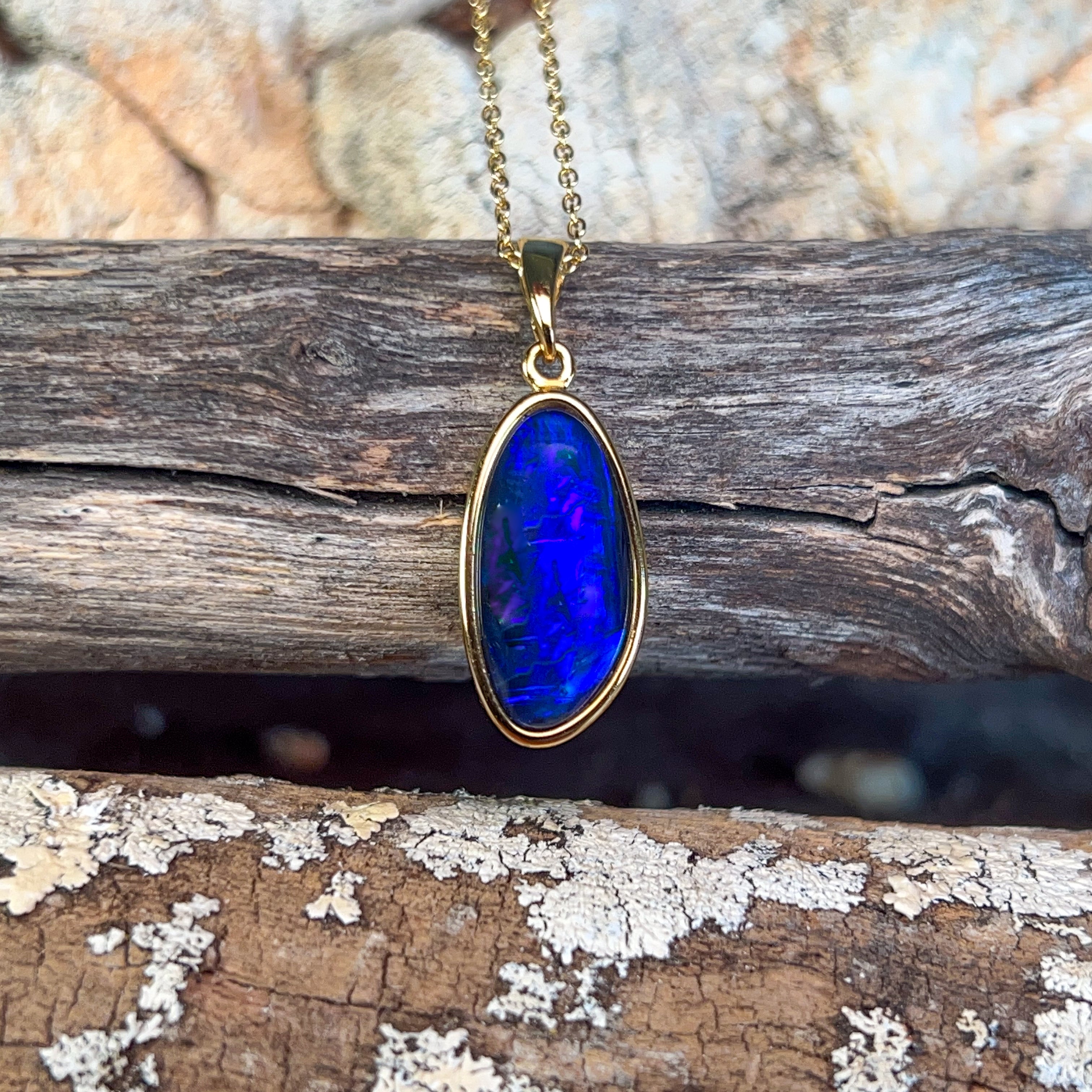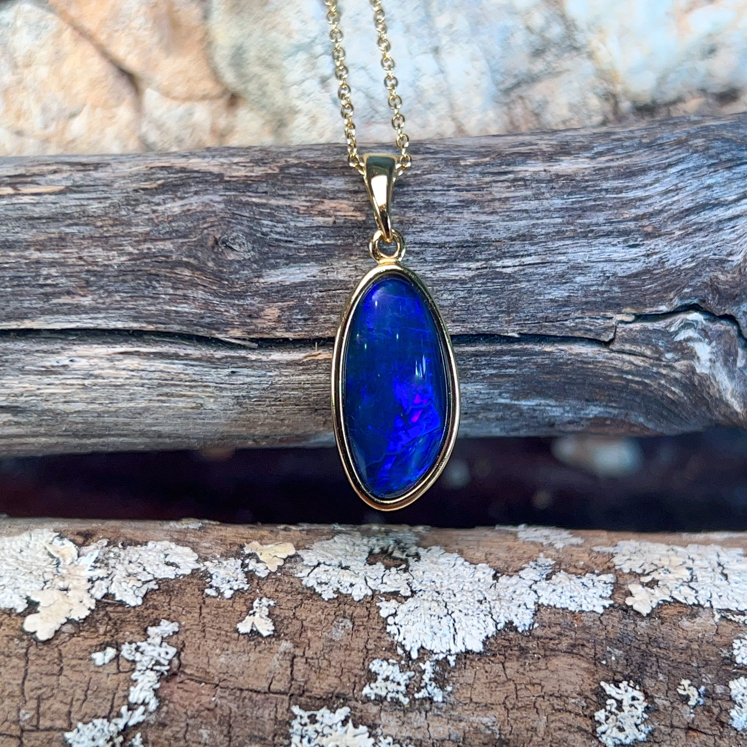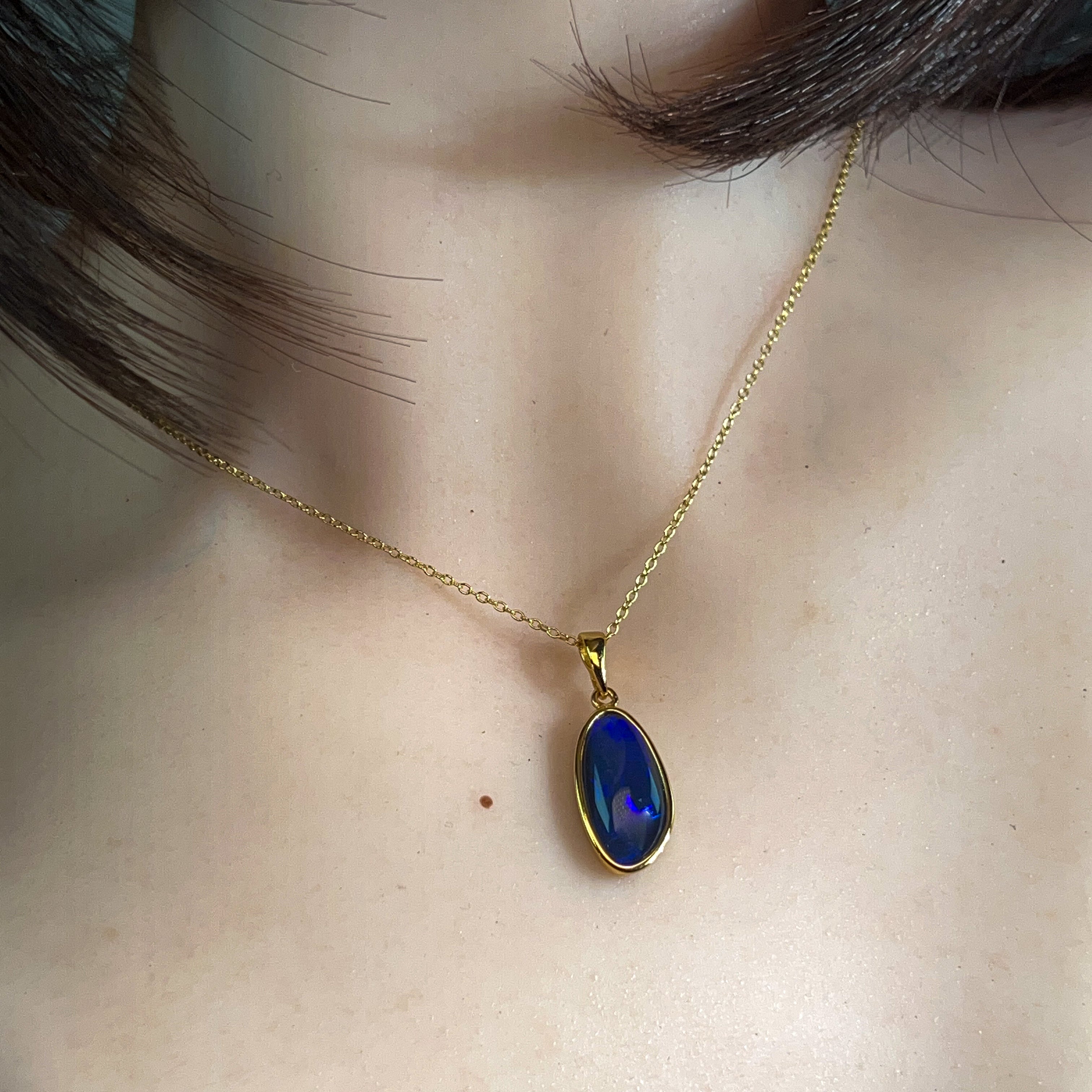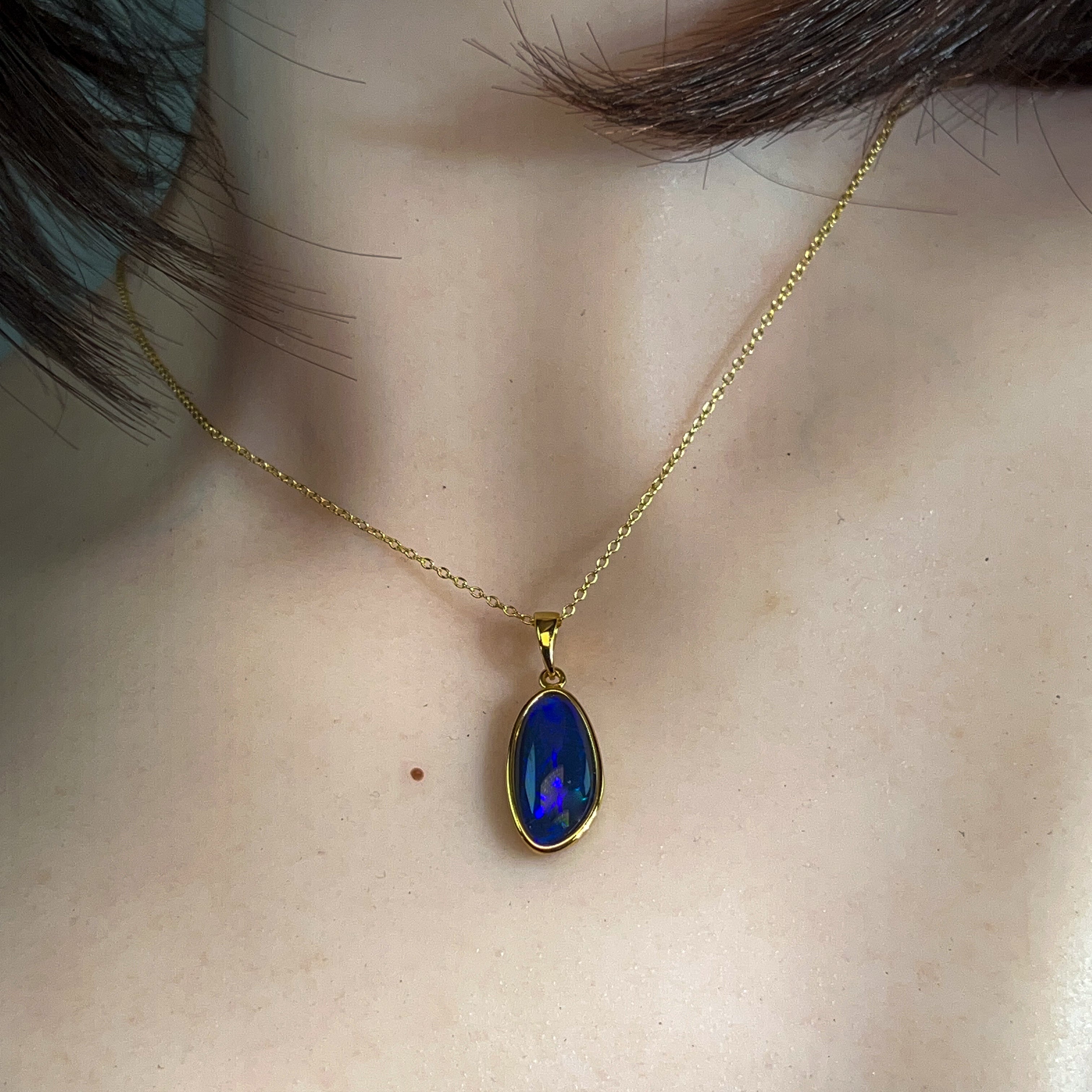 Gold Plated Silver Blue Opal triplet 21x10mm pendant