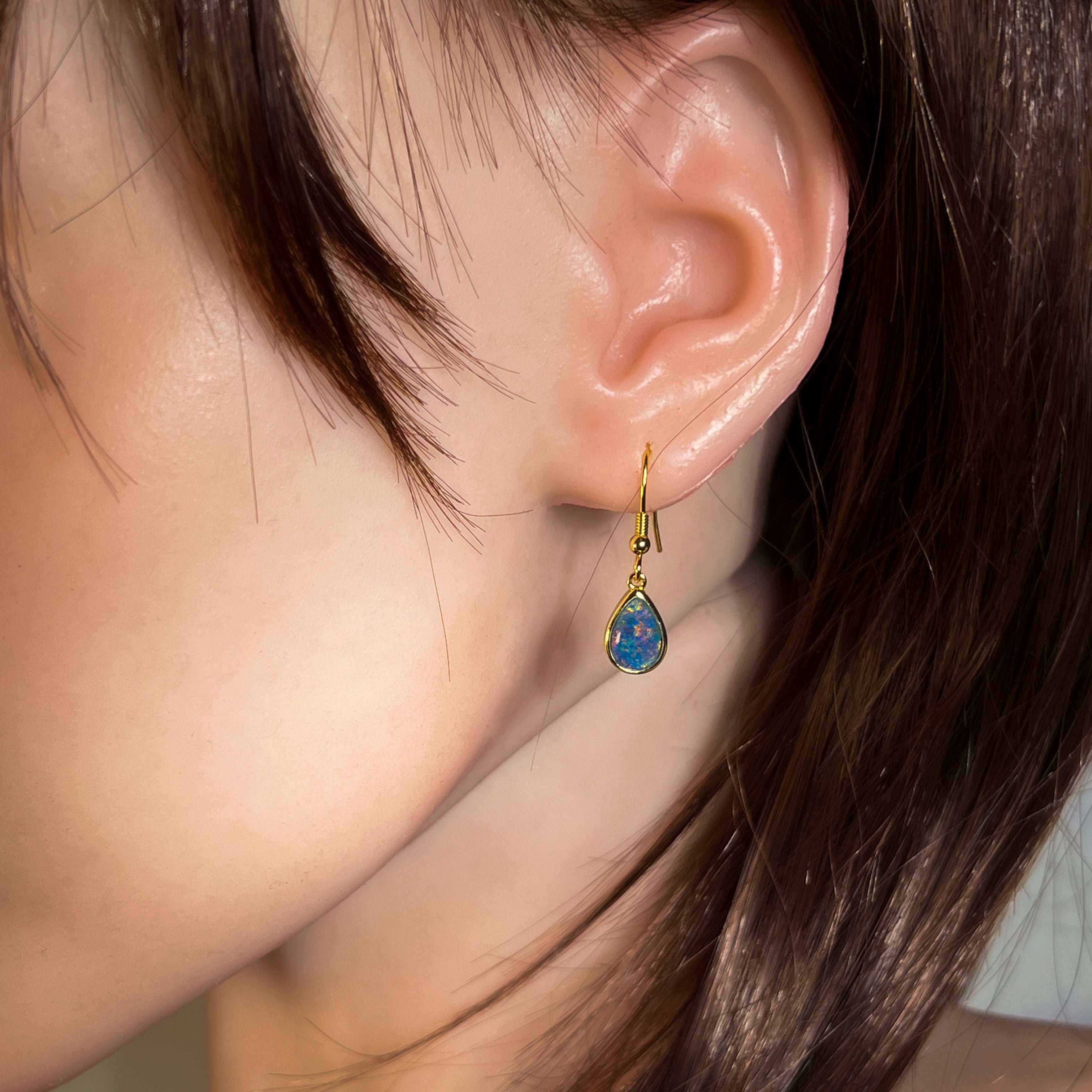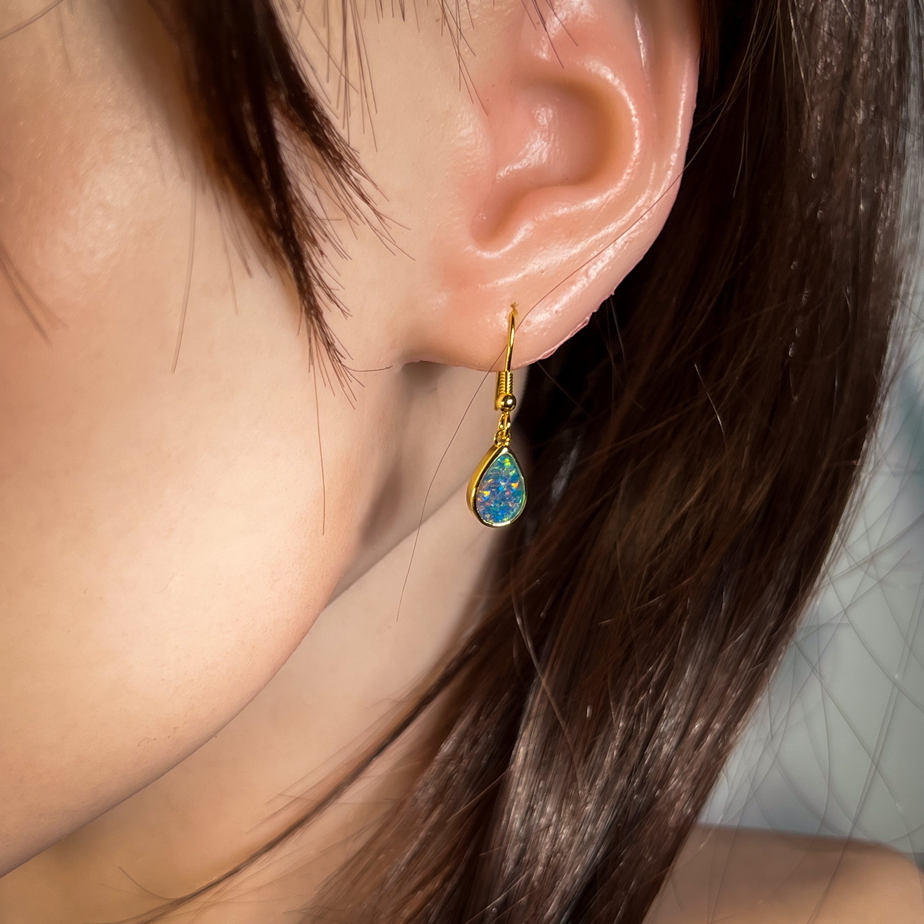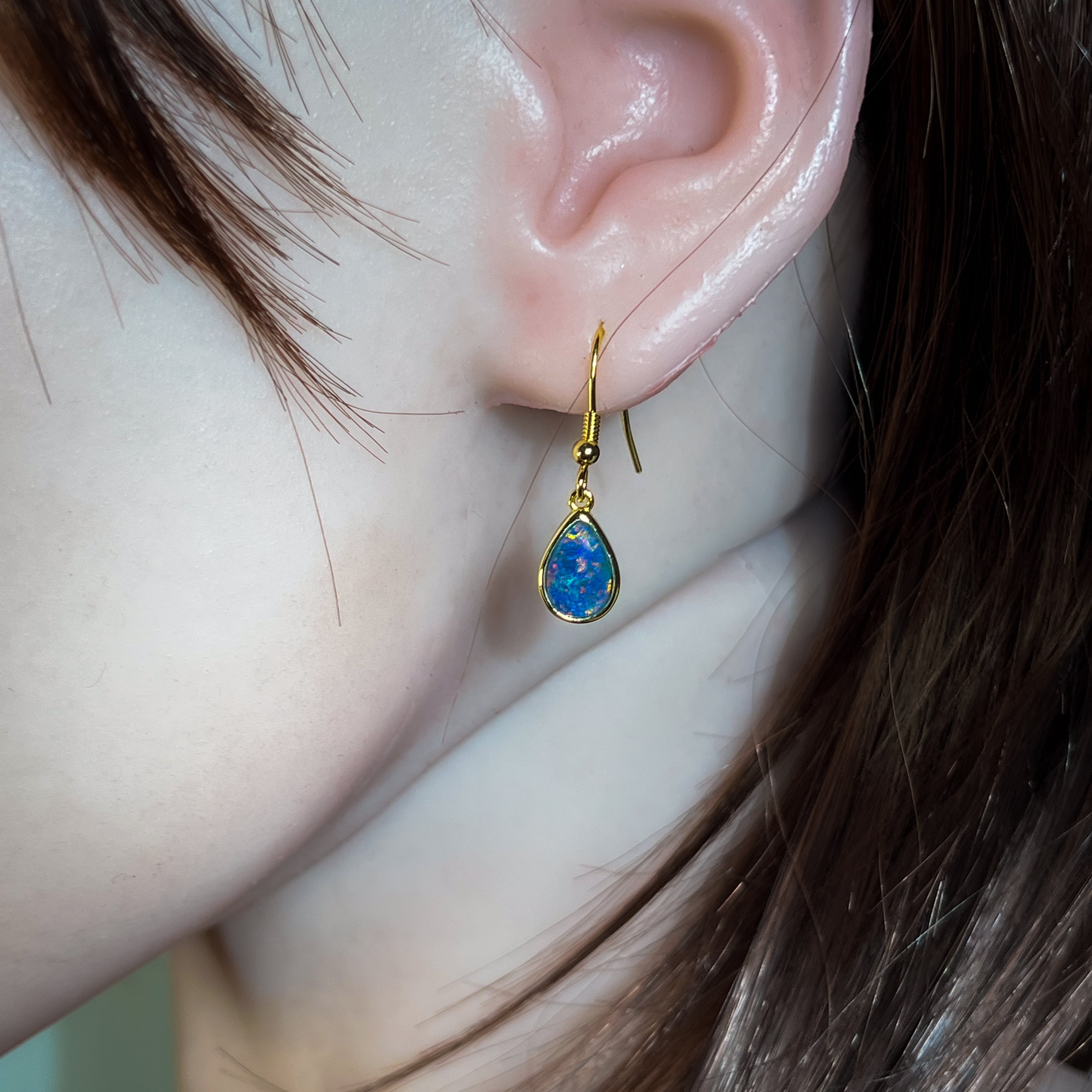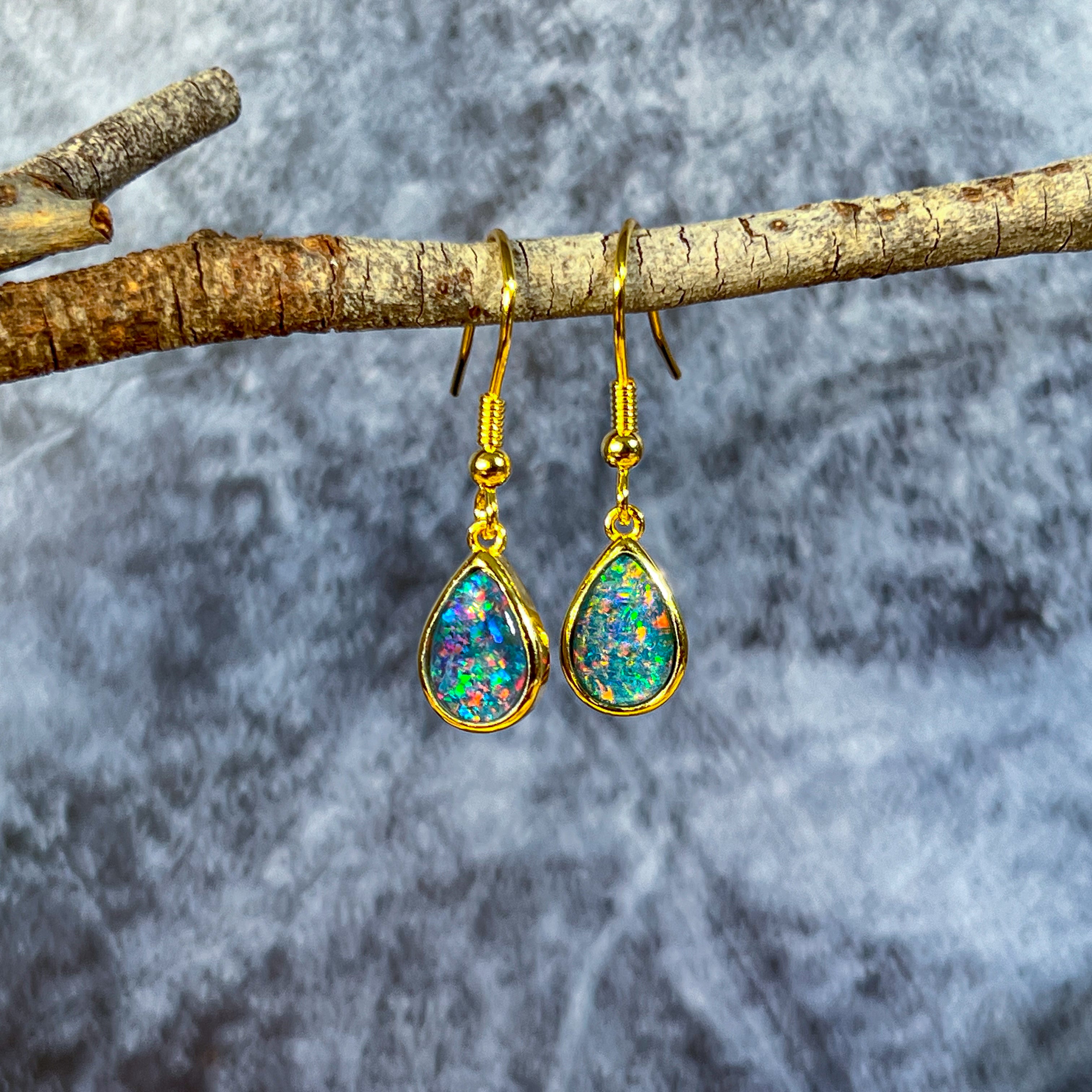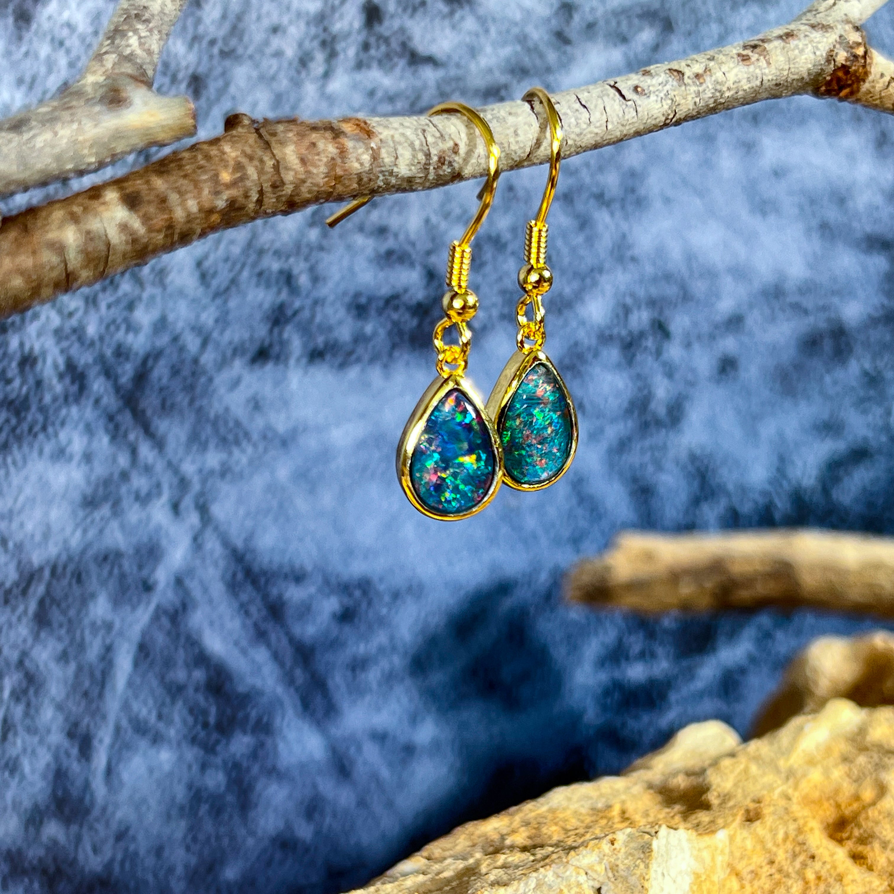 Gold Plated Silver dangling pearshape 9x7mm Opal triplet earrings dangling