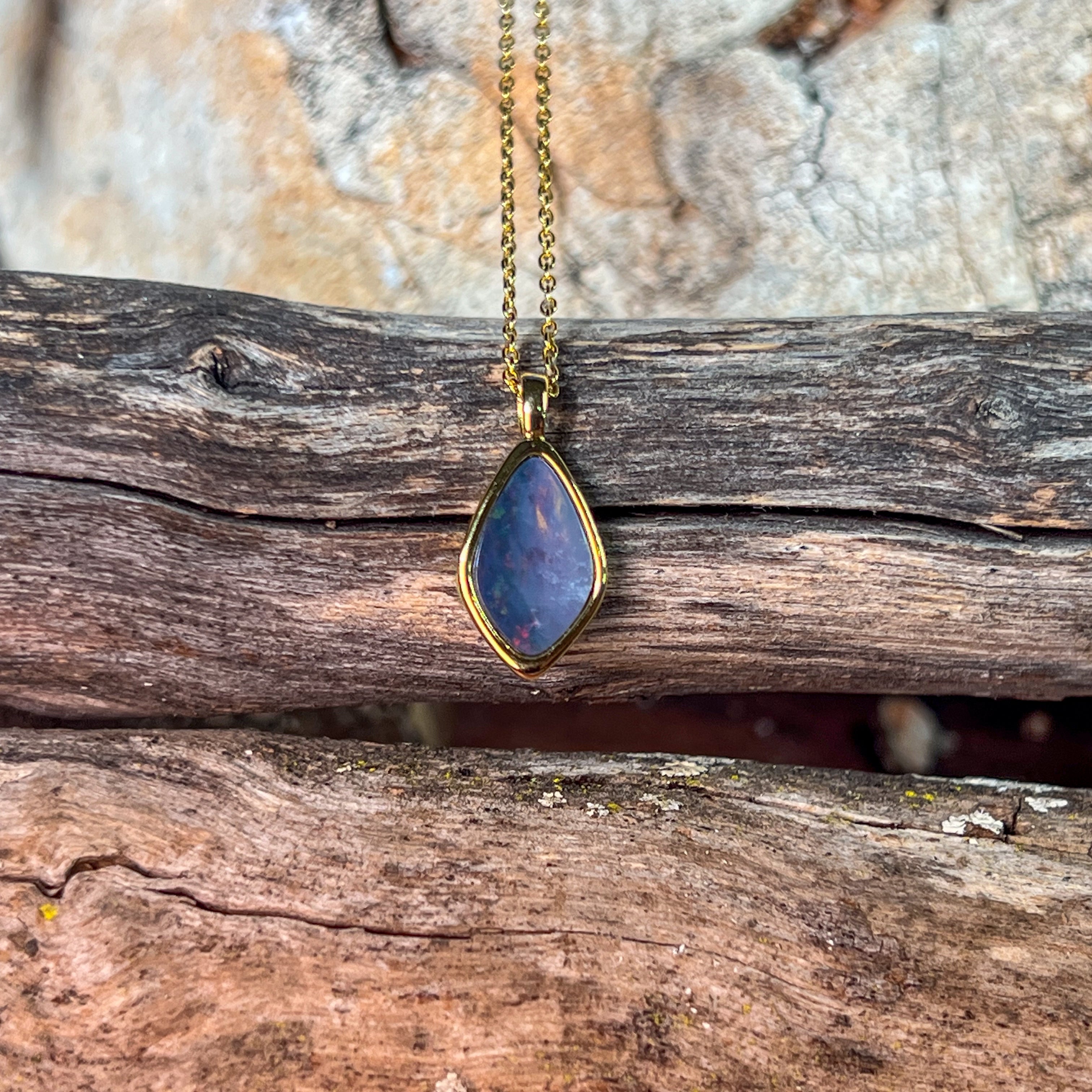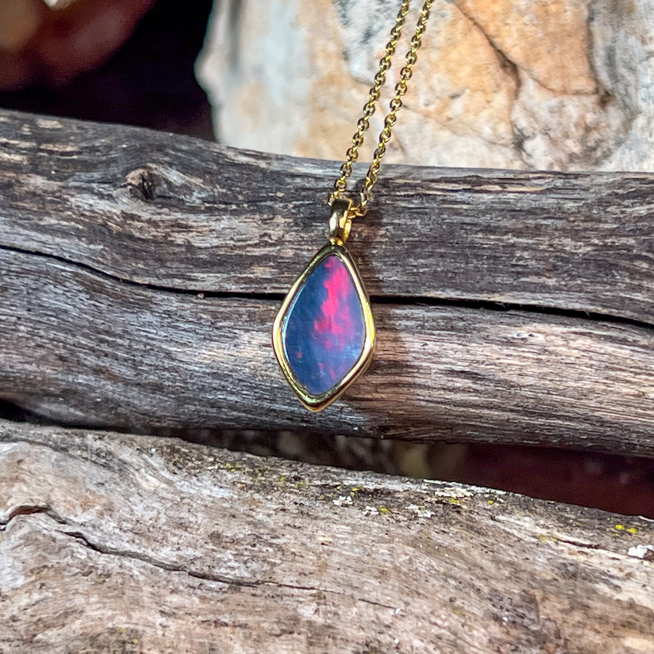 Gold plated silver kite shape Red Black Opal doublet pendant