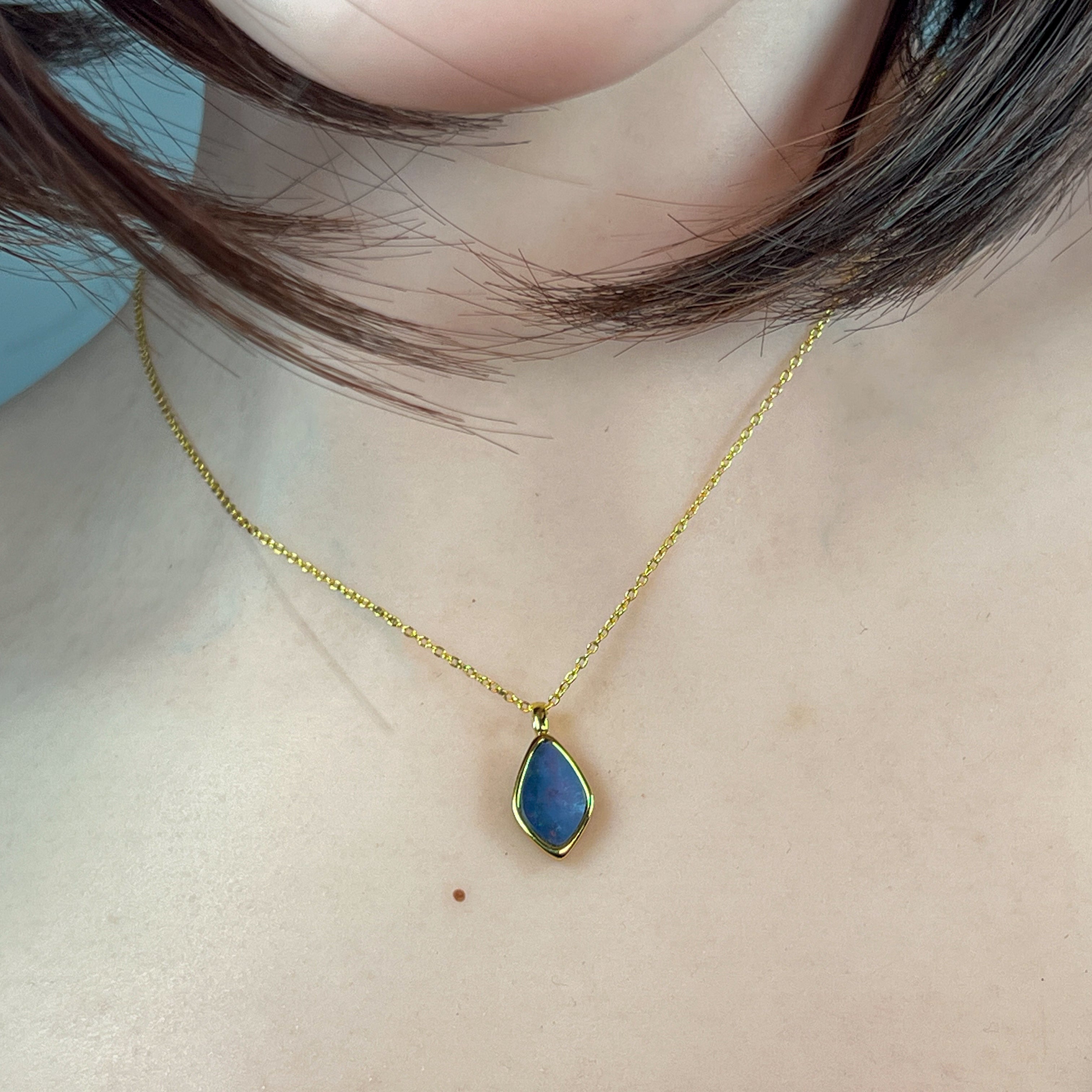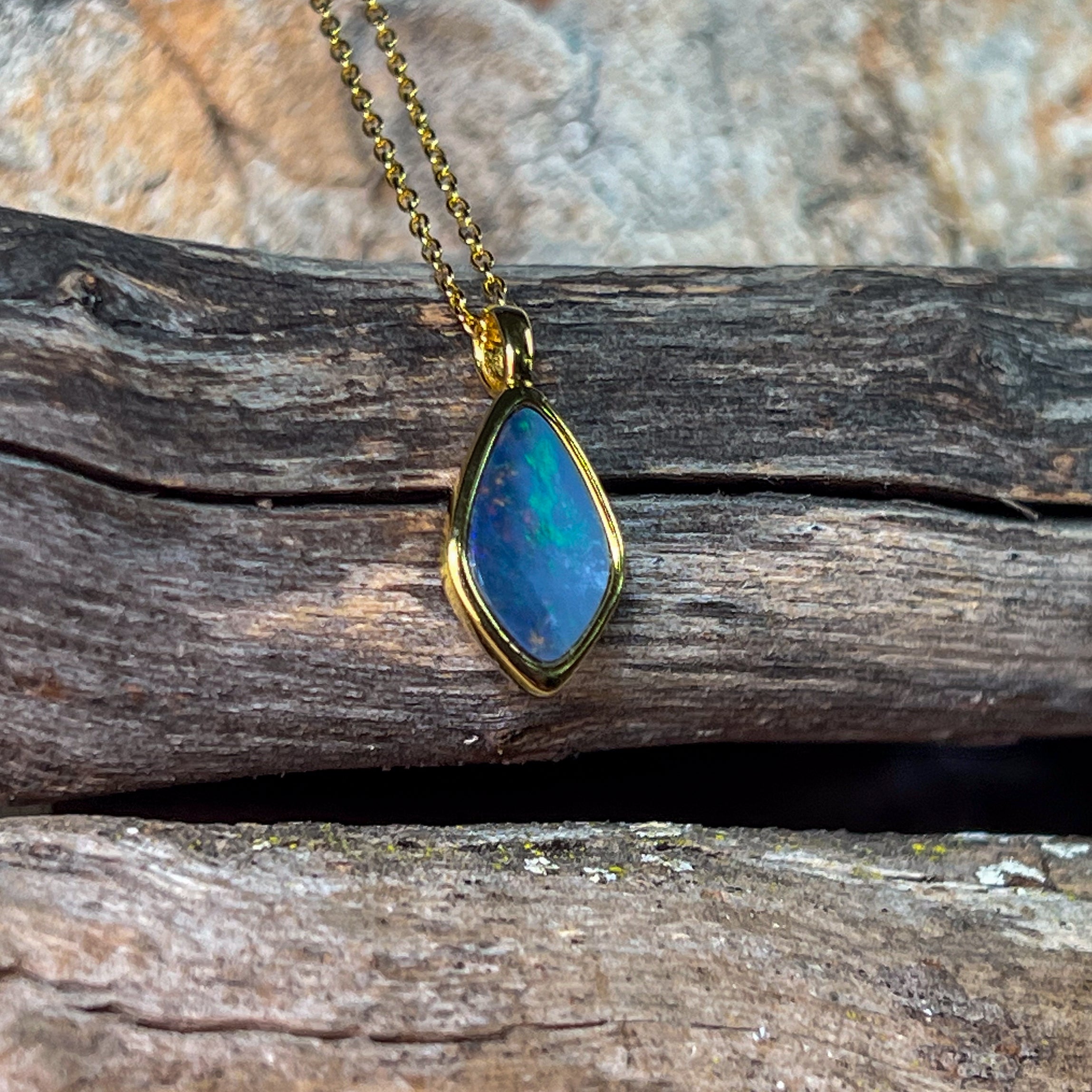 One Gold Plated Sterling Silver Opal pendant bezel set kite shape