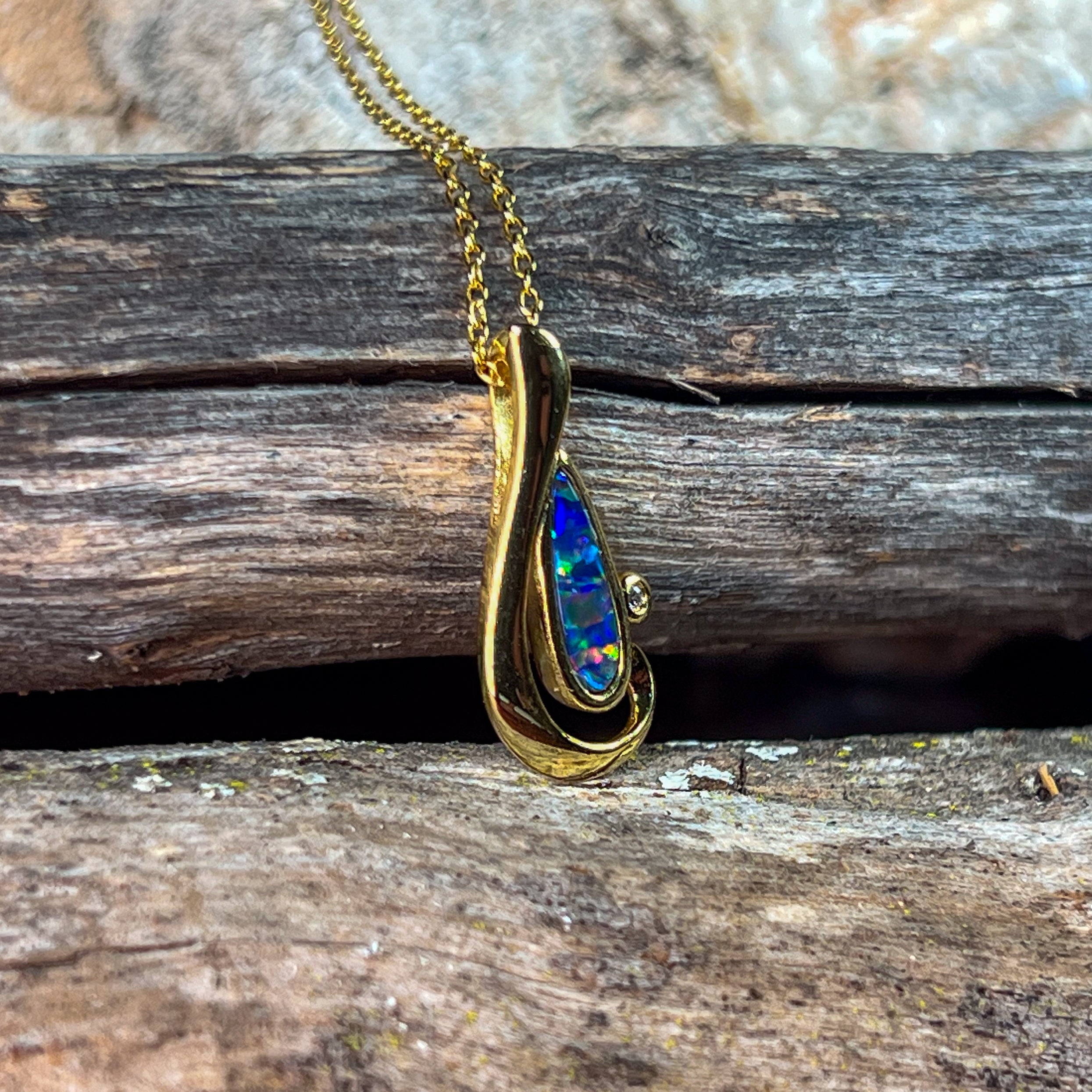 Elevate your jewellery collection with this striking Gold Plated Silver Note Shape Opal Doublet Pendant. Crafted to capture light beautifully, the distinctive note silhouette showcases a mesmerising opal doublet that displays nature's most enchanting colour play. The luxurious gold plating adds warmth and sophistication, making it the perfect statement piece for those who appreciate fine craftsmanship and unique design. Whether worn as a daily treasure or reserved for special occasions, this pendant transforms any outfit into something extraordinary. A timeless investment in wearable art that celebrates the natural beauty of Australian opal.