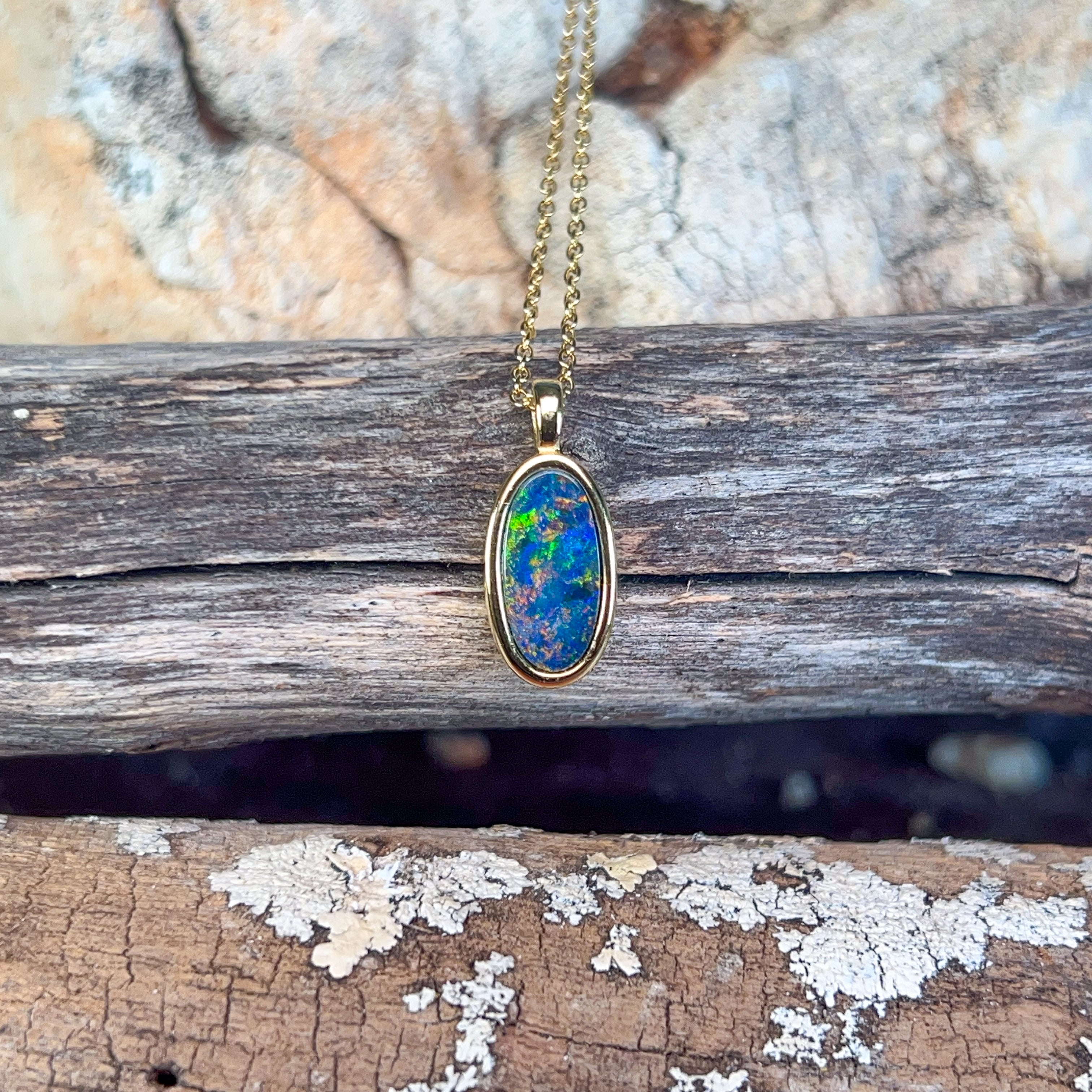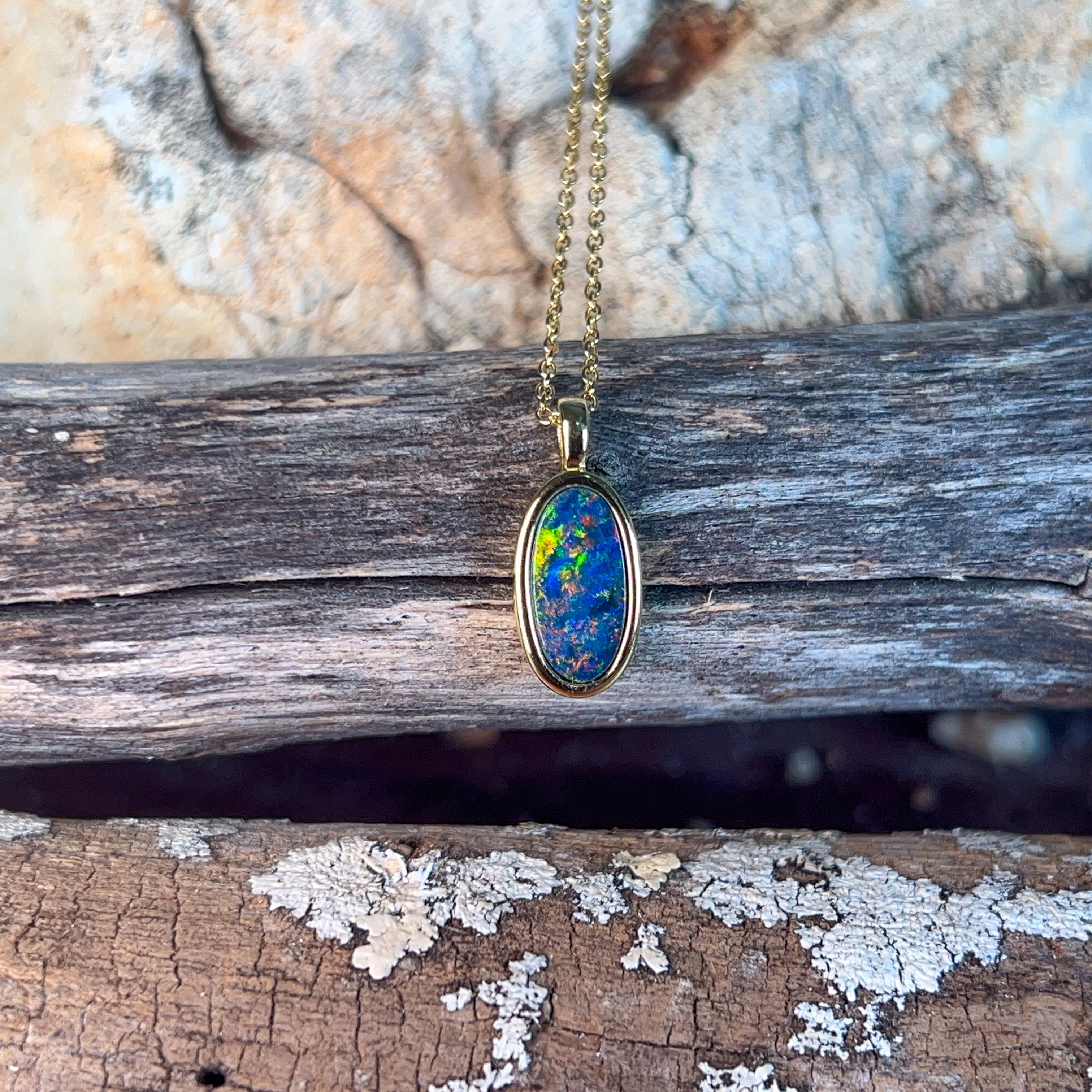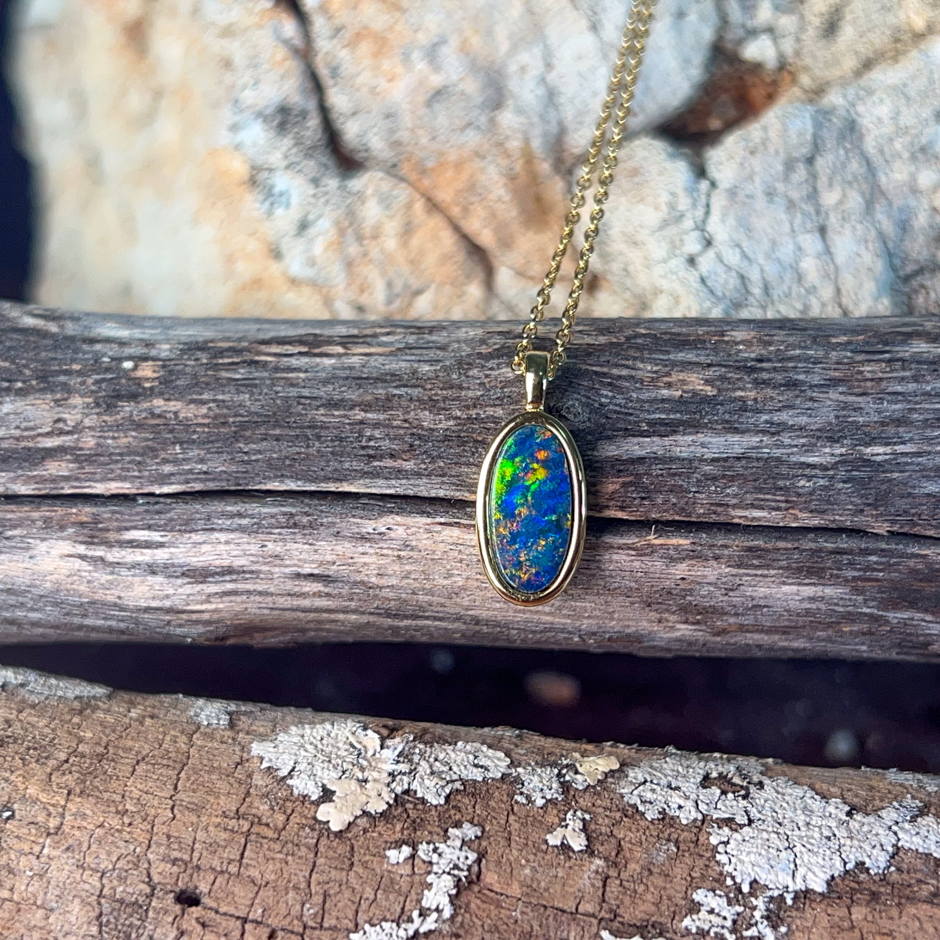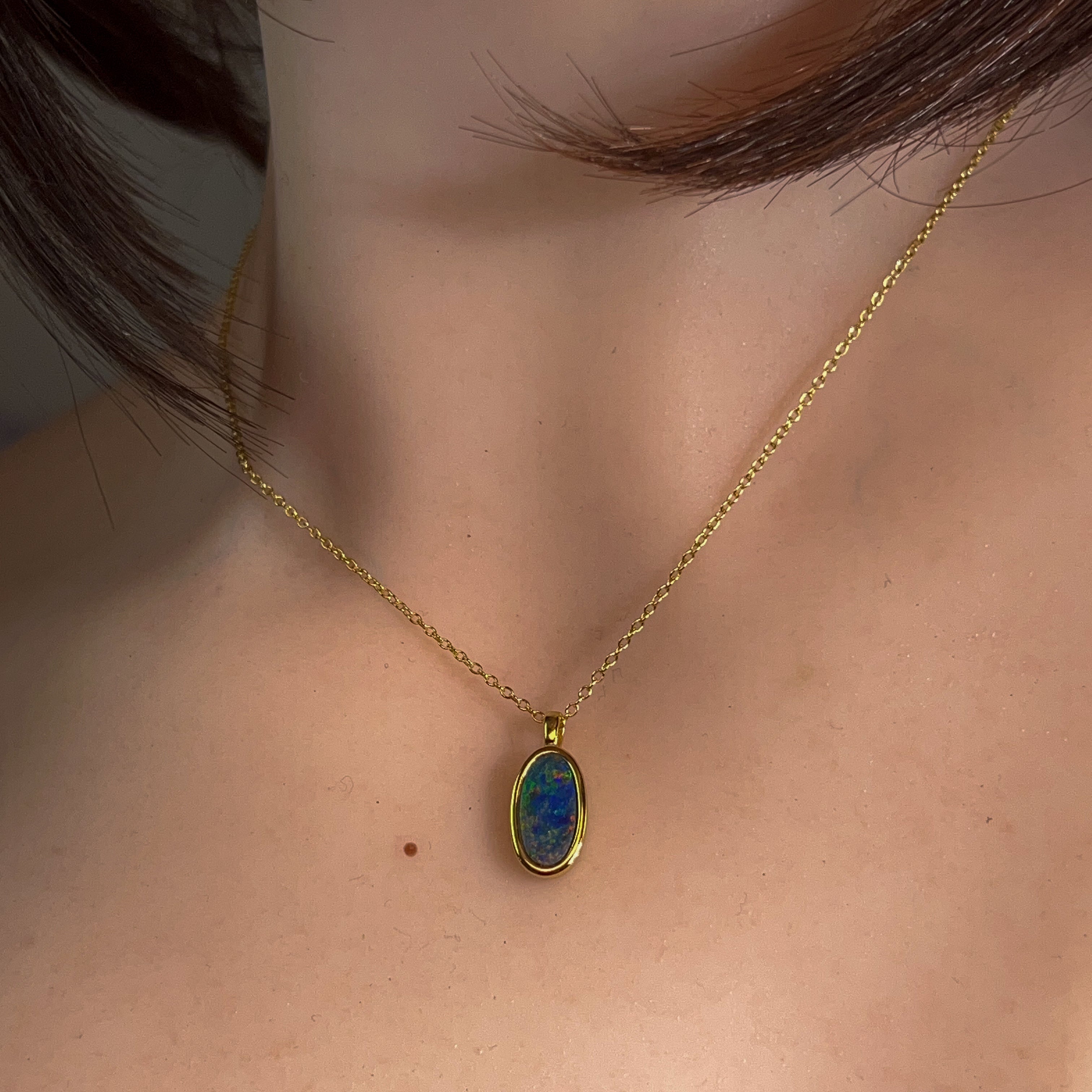 Gold Plated Silver Opal doublet 12x7mm pendant