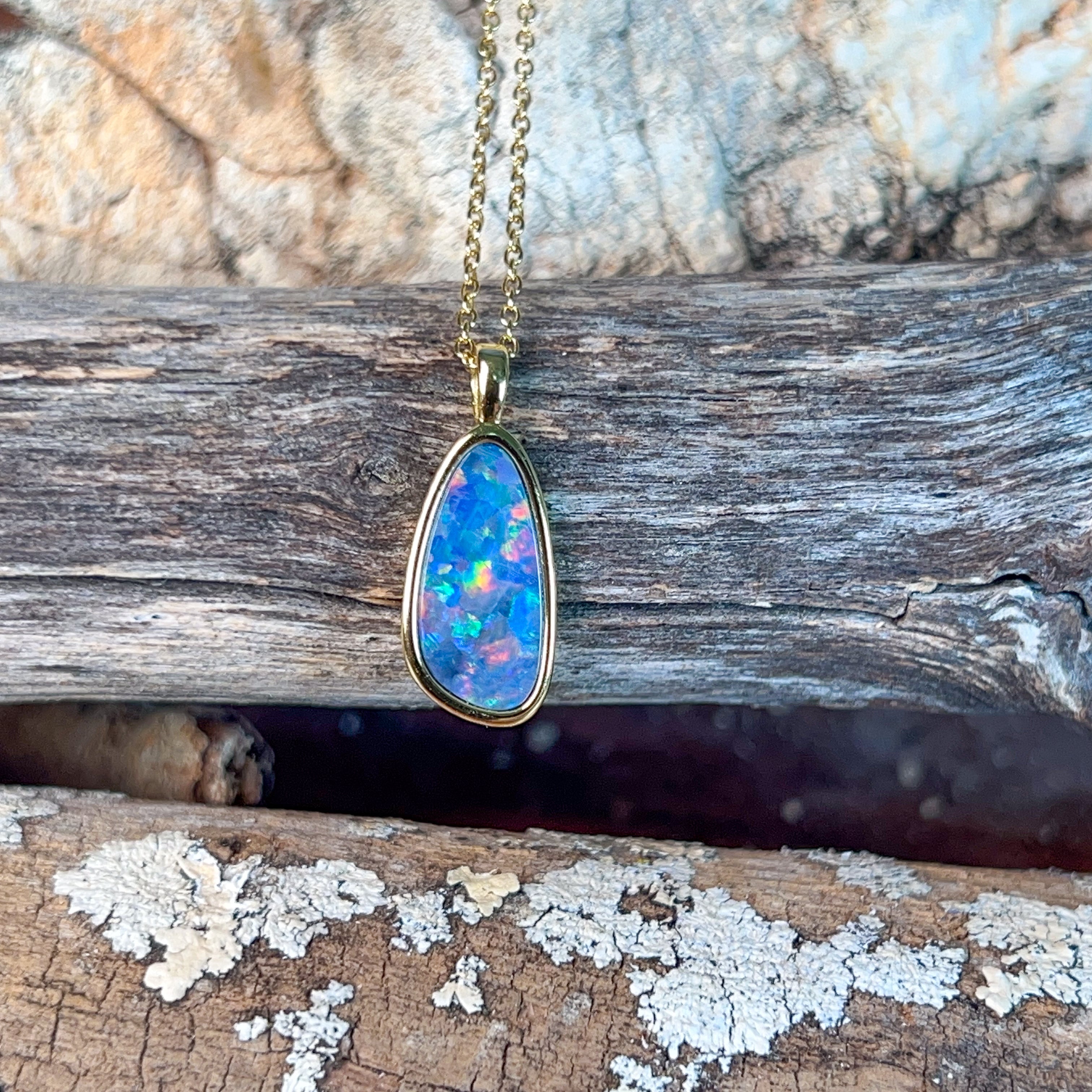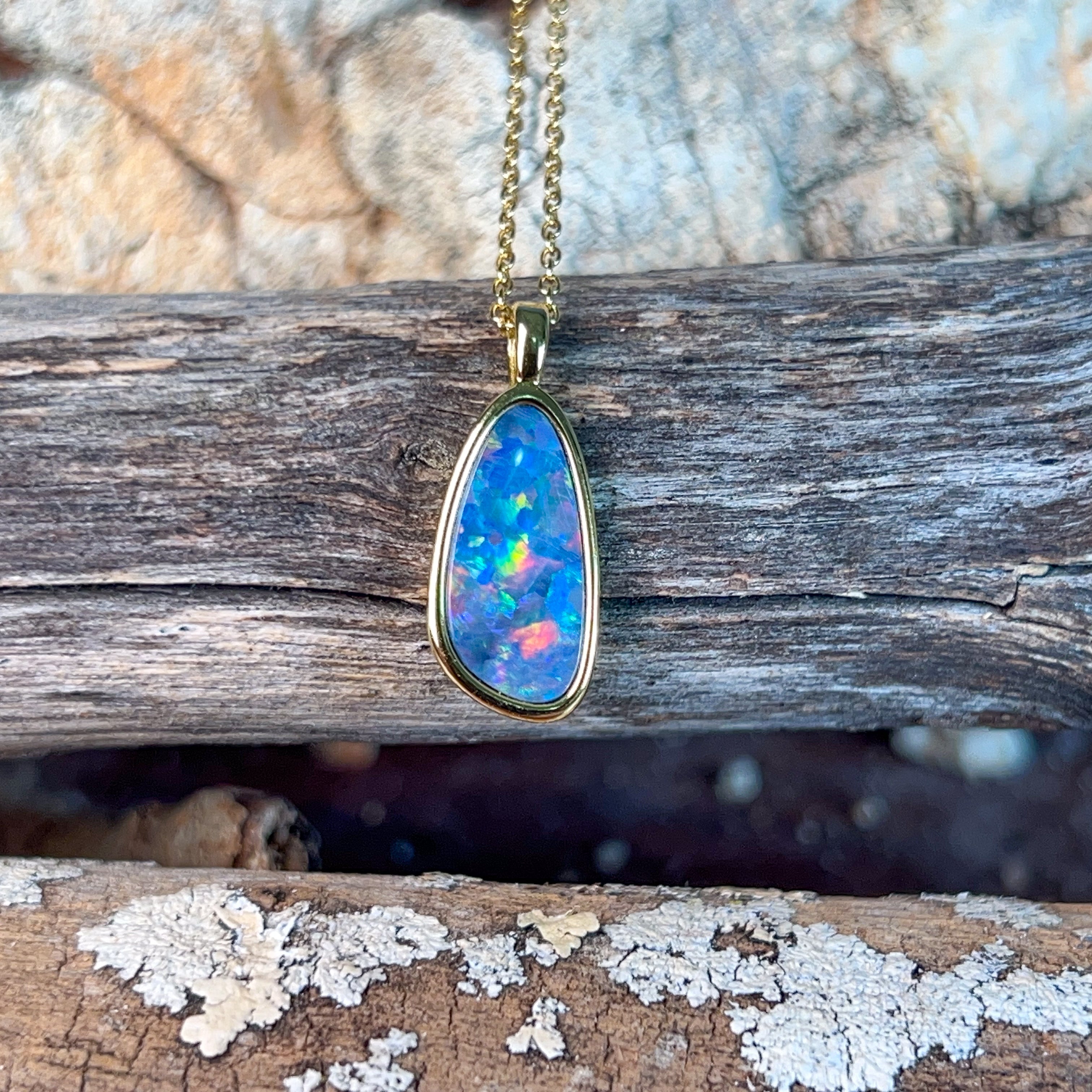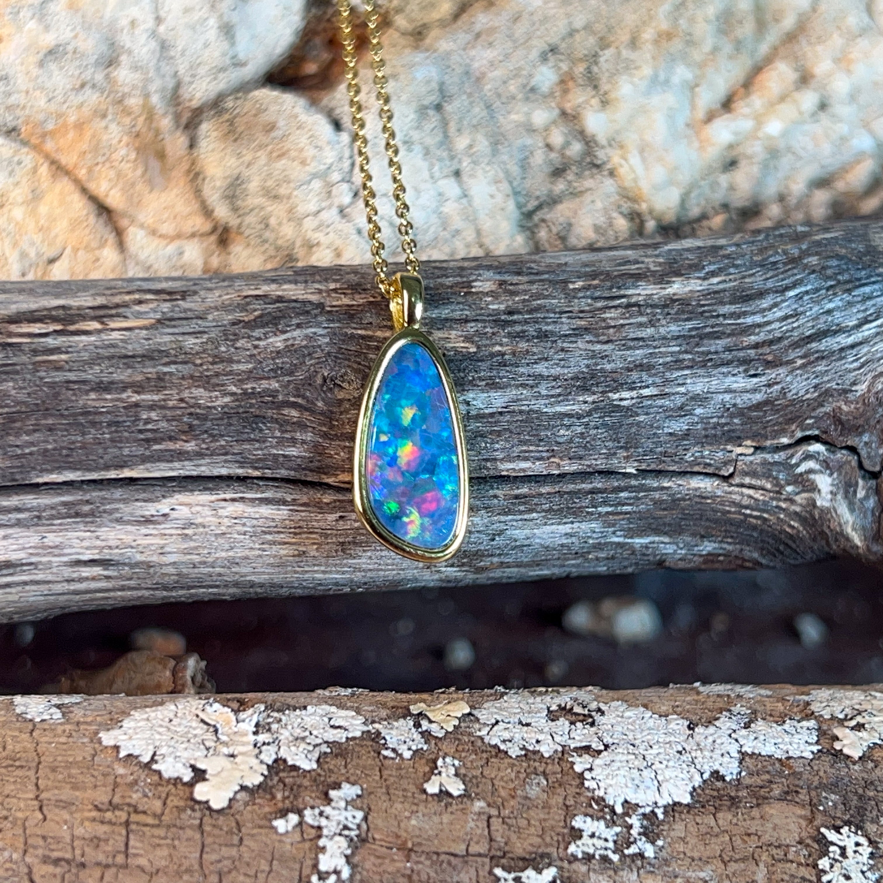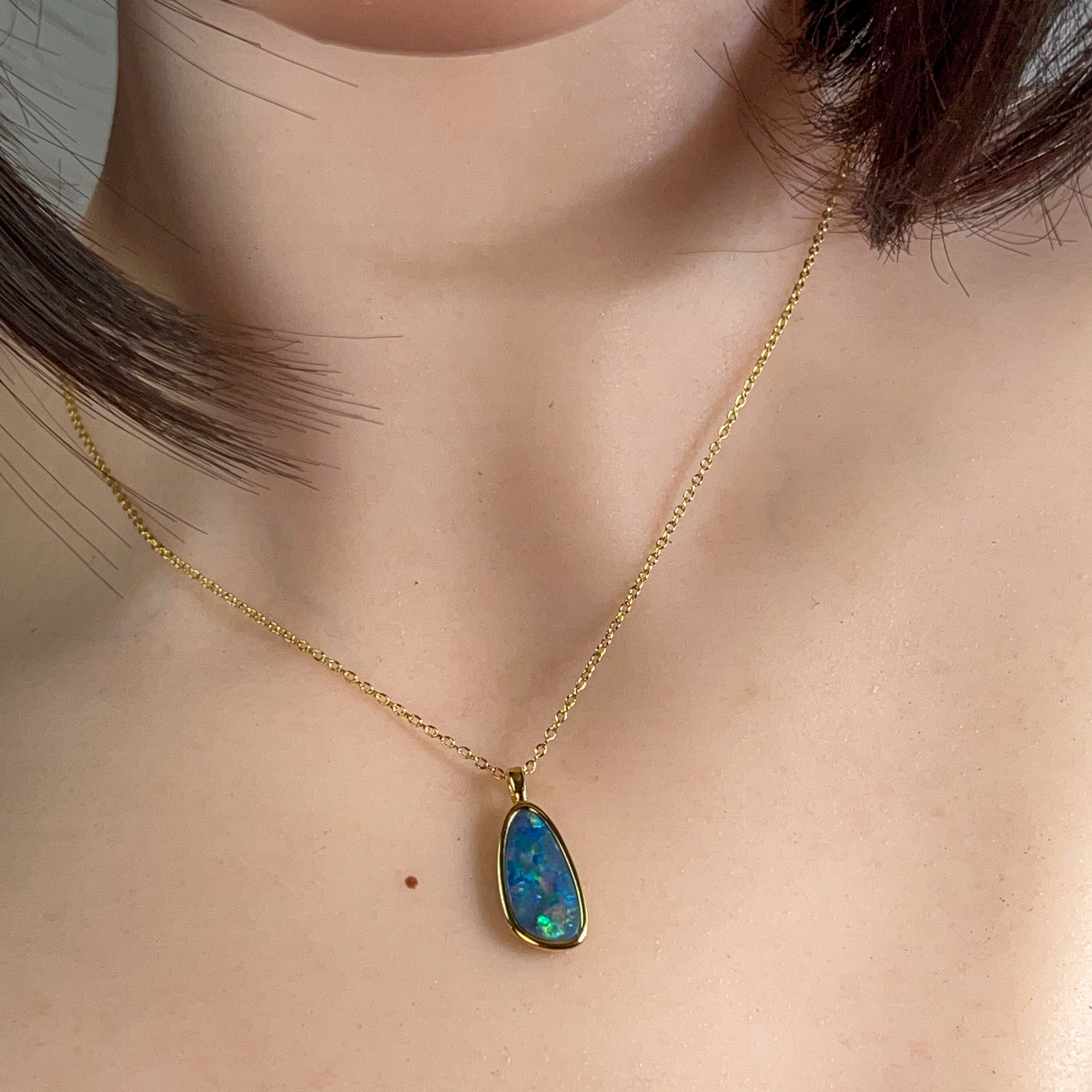 Elevate your jewellery collection with this stunning opal doublet pendant, where timeless elegance meets contemporary design. Crafted from quality silver and finished with luxurious gold plating, this 17x9mm piece showcases the mesmerising play of colour that makes opals so captivating. The doublet construction ensures durability while maintaining that coveted opal brilliance. Perfect for layering or wearing solo, this versatile pendant adds a touch of sophistication to any outfit. Whether you're drawn to opals for their natural beauty or their symbolic significance, this piece delivers both style and substance in one wearable treasure.