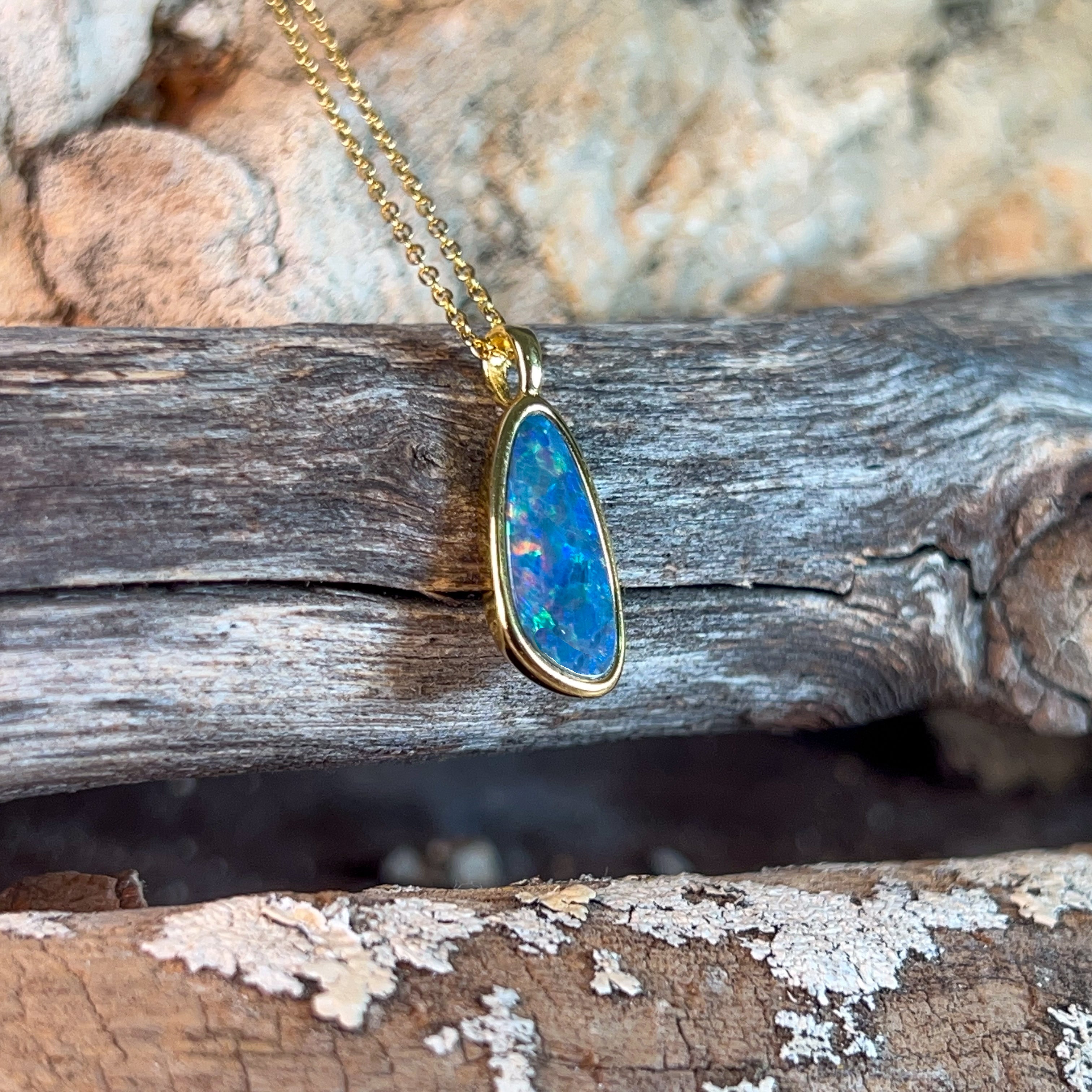 Gold plated silver opal doublet 17x9mm pendant