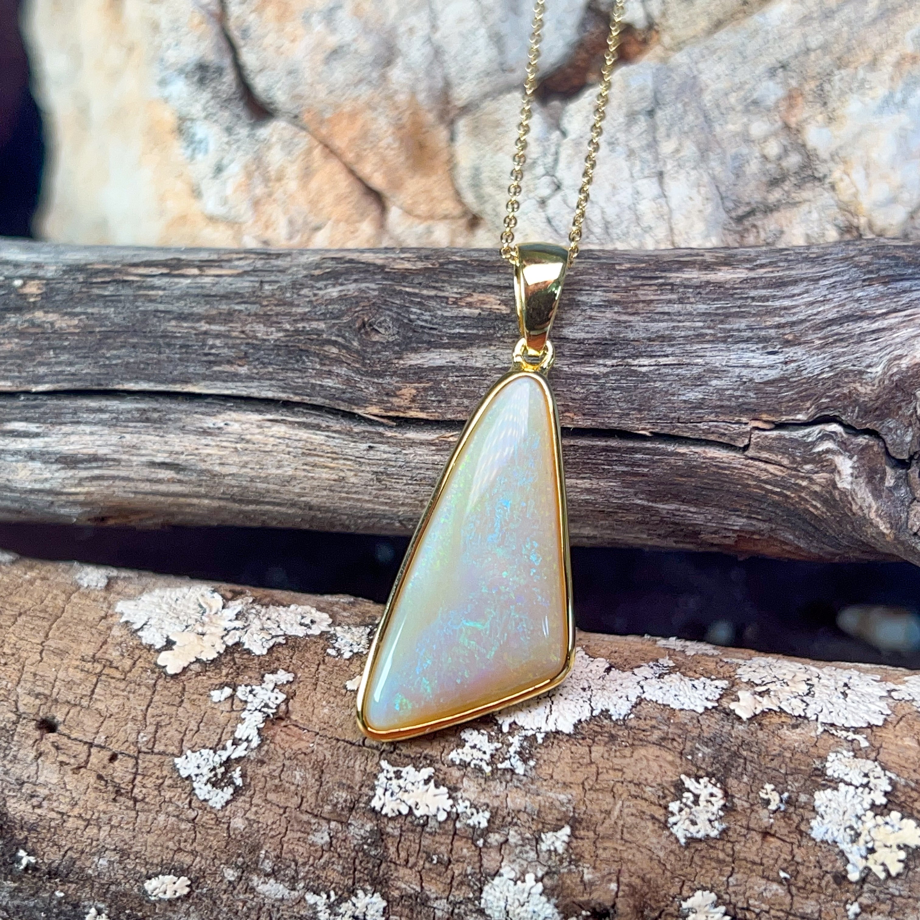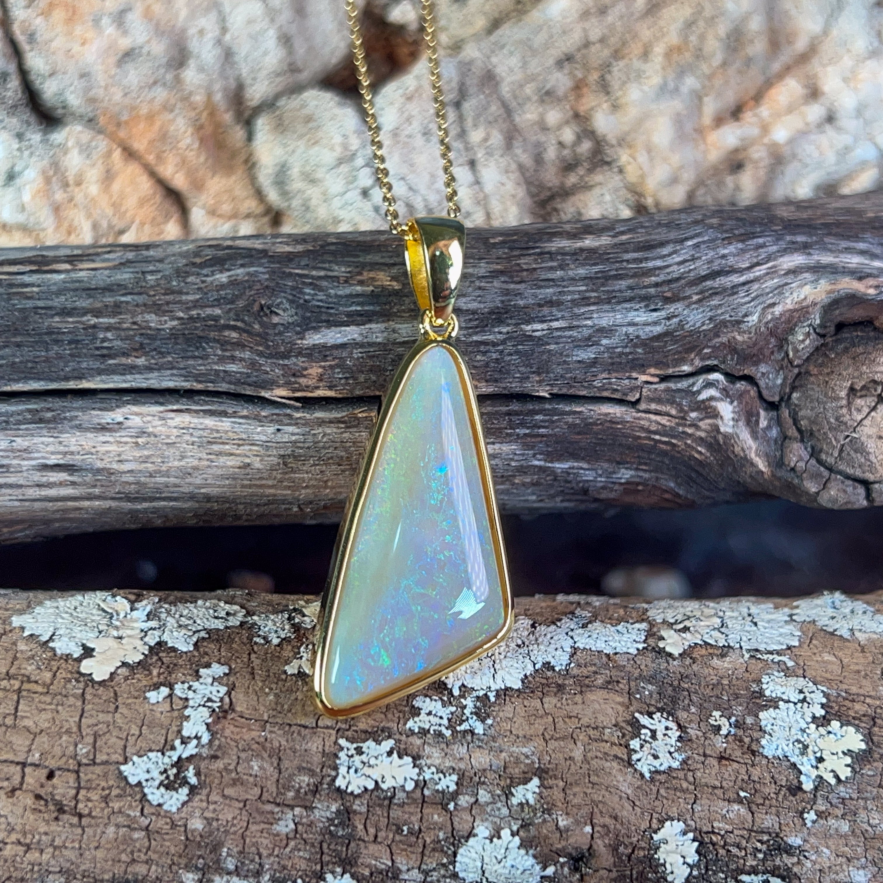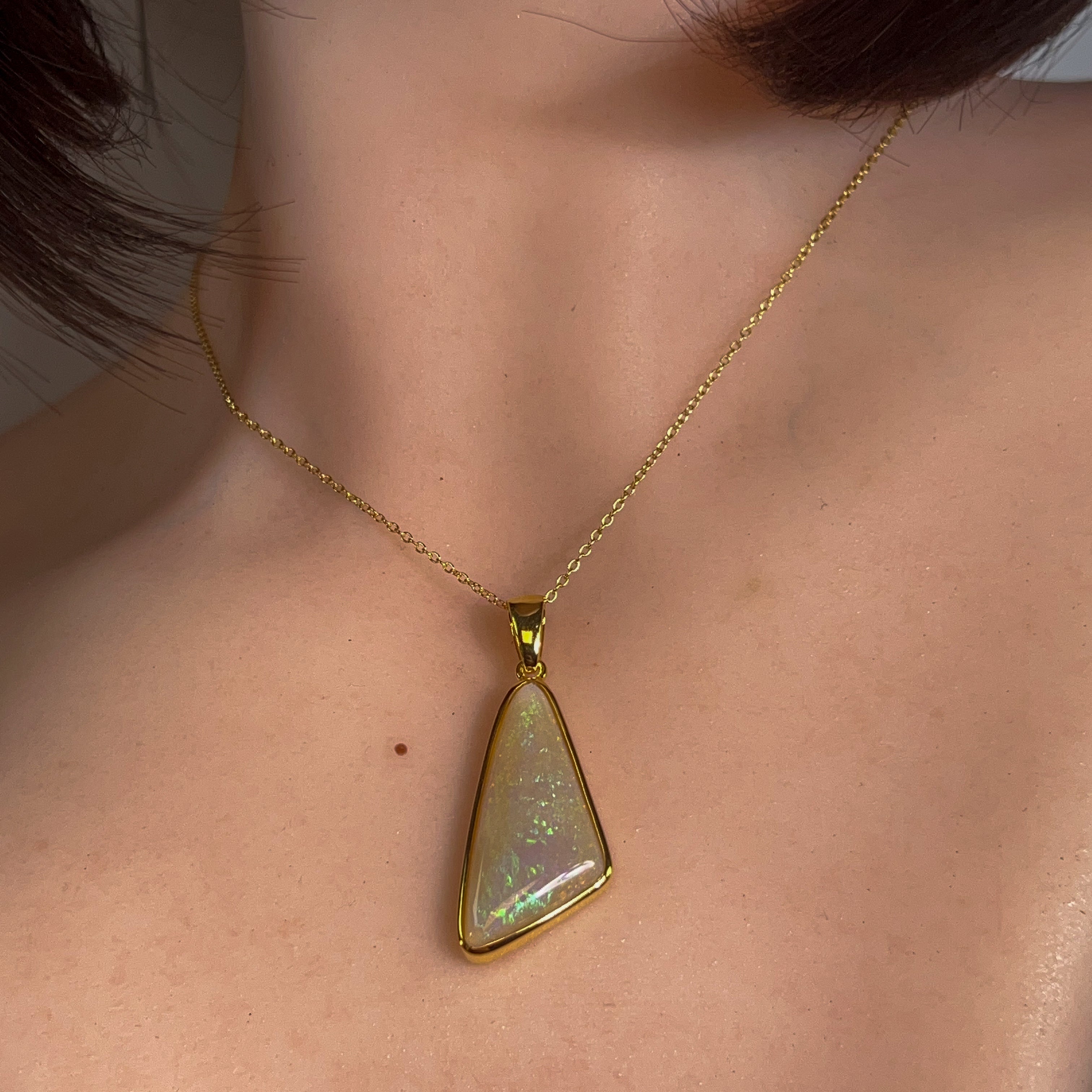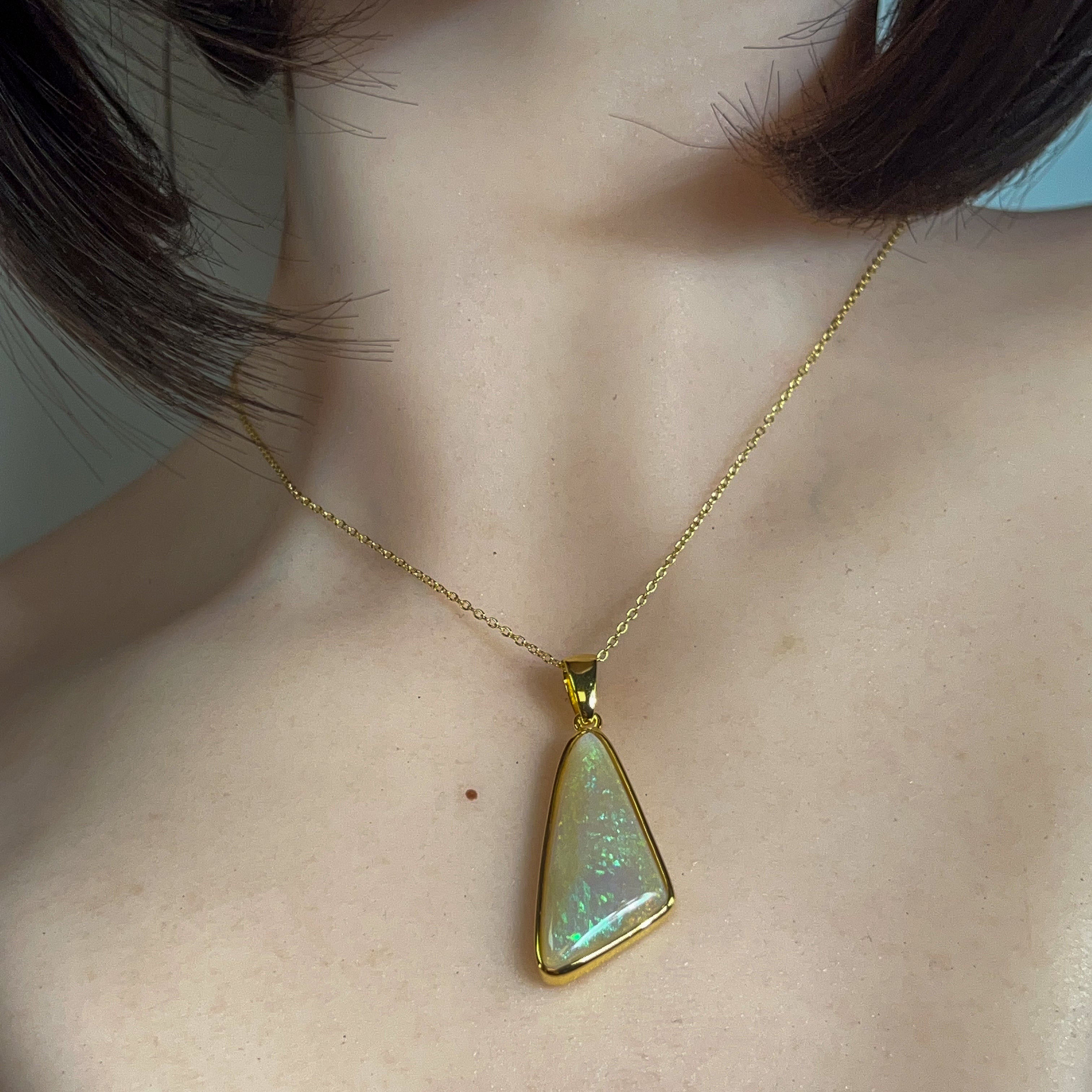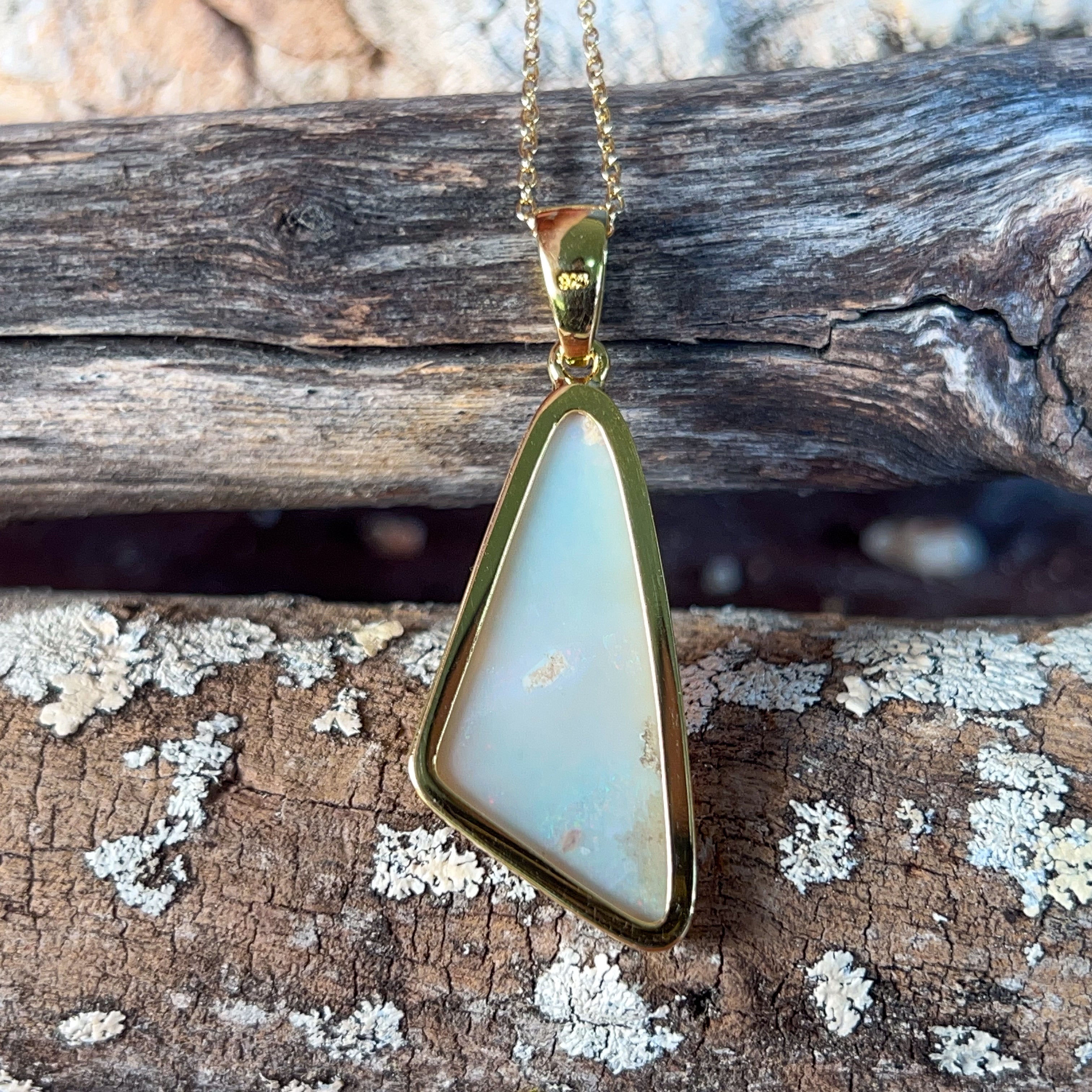 Gold Plated Silver triangular 8.5ct White Opal pendant