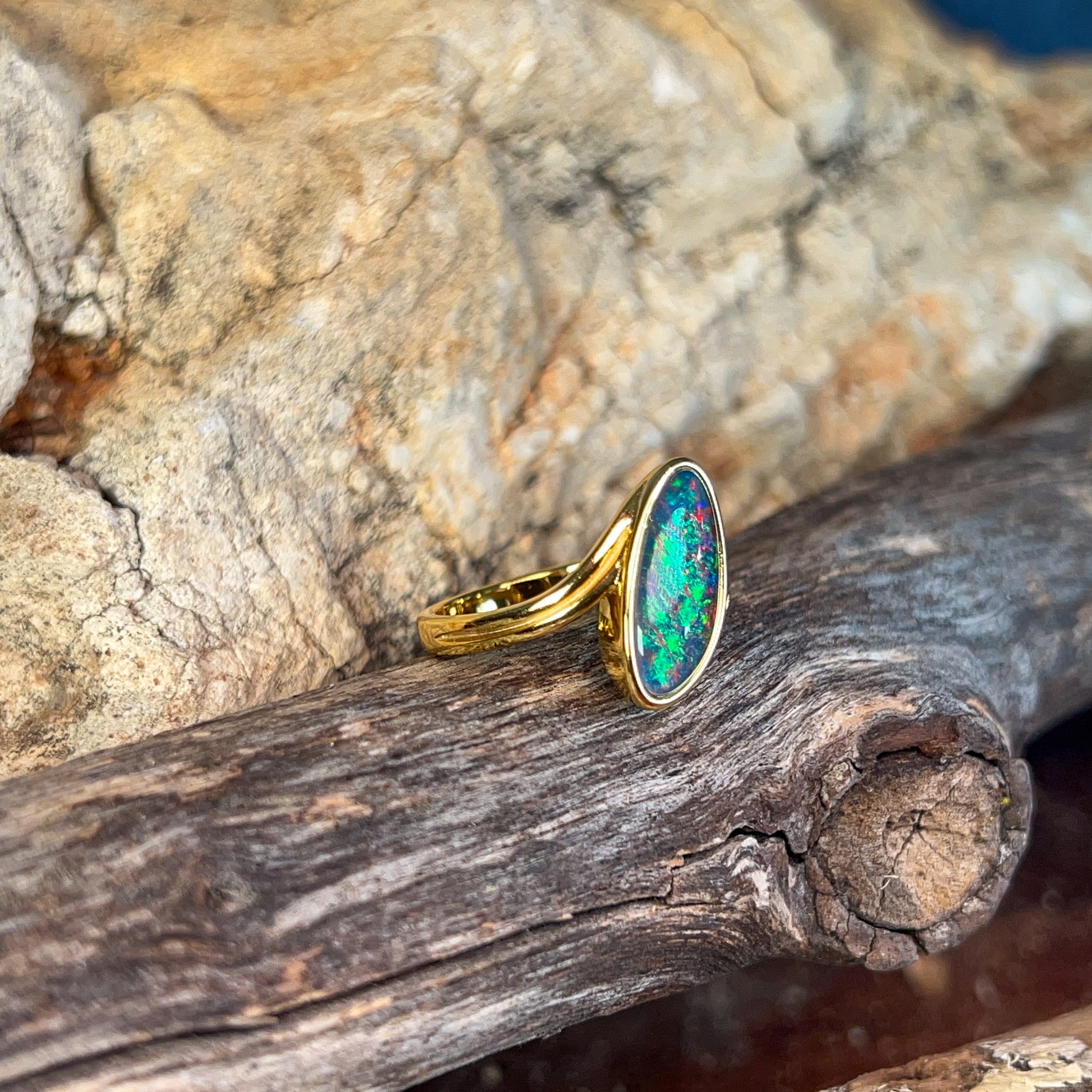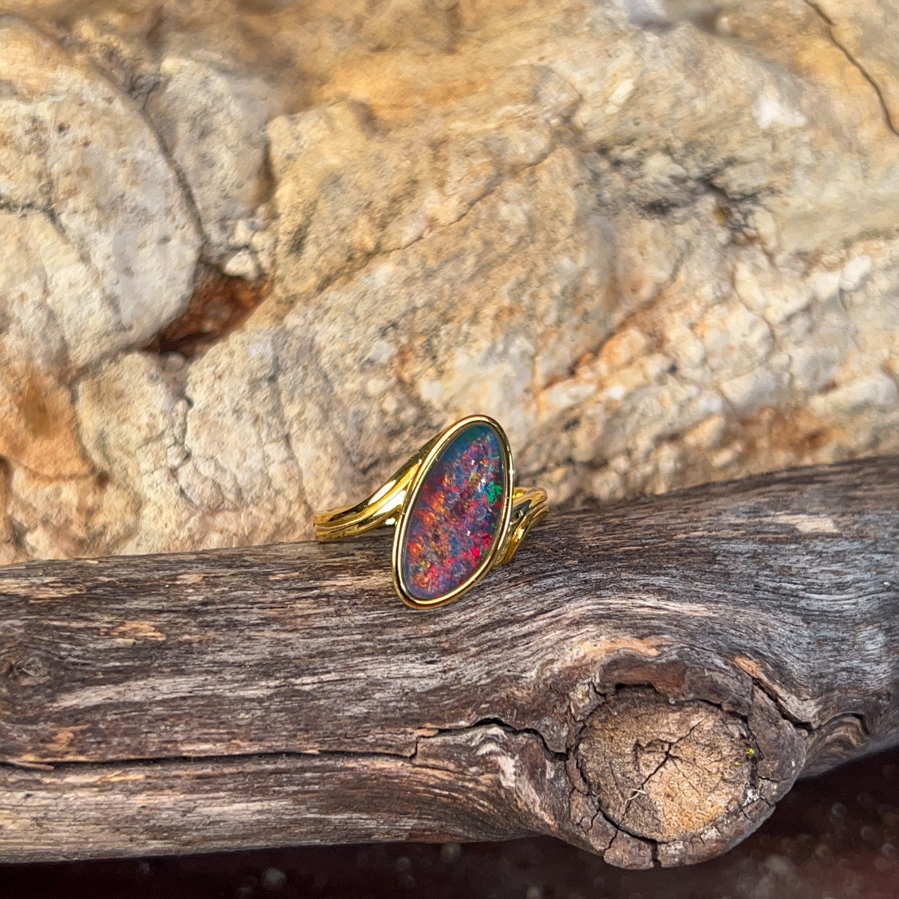 Gold Plated Silver Triplet 17x9mm Opal ring