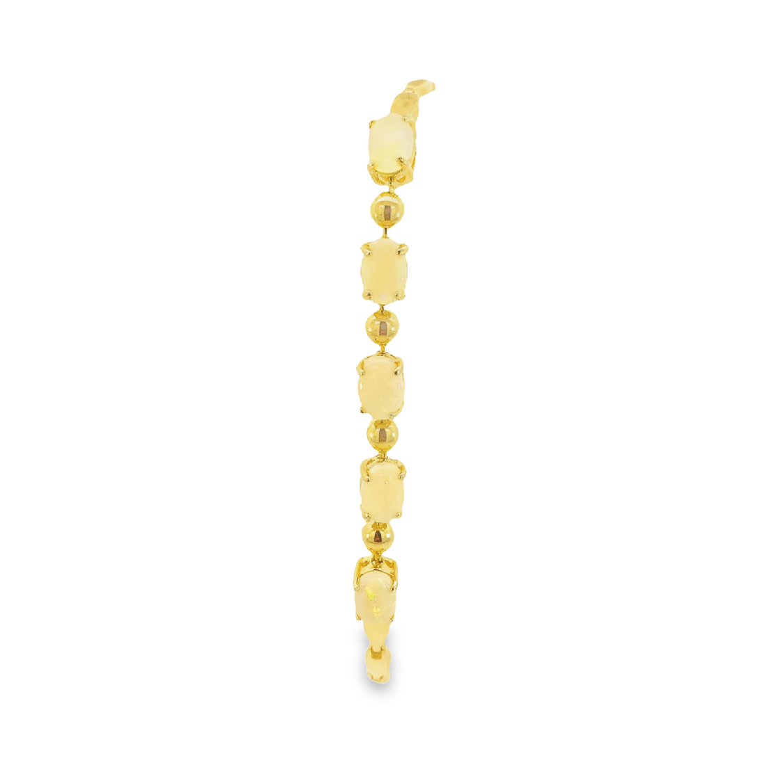 Gold plated Sterling Silver 7x5mm White Opal and ball alternating bracelet