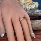 Elevate your elegance with this gold plated sterling silver ring, featuring a stunning 9x7mm opal triplet set horizontally. Its unique design captures light beautifully, adding a radiant glow to any outfit. Perfect for special occasions or everyday glamour, this dress ring combines timeless sophistication with a modern touch, making it a must-have accessory to showcase your refined style.