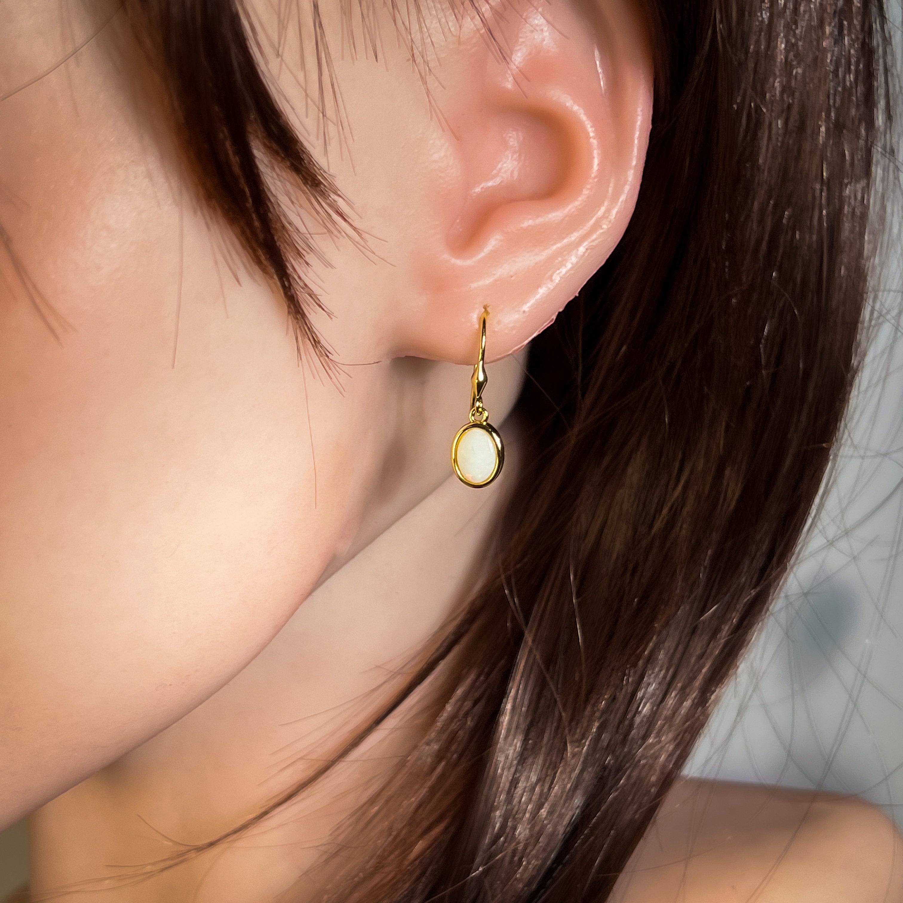 Crafted with expertly sourced White Opal from South Australia, these Gold Plated Sterling Silver drop earrings showcase a stunning 8x6mm bezel set stone. Elevate your style with the timeless beauty of these opulent earrings, perfect for gifting or treating yourself to a luxurious accessory.