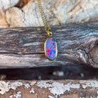 Gold Plated Sterling Silver opal doublet 15x8mm pendant