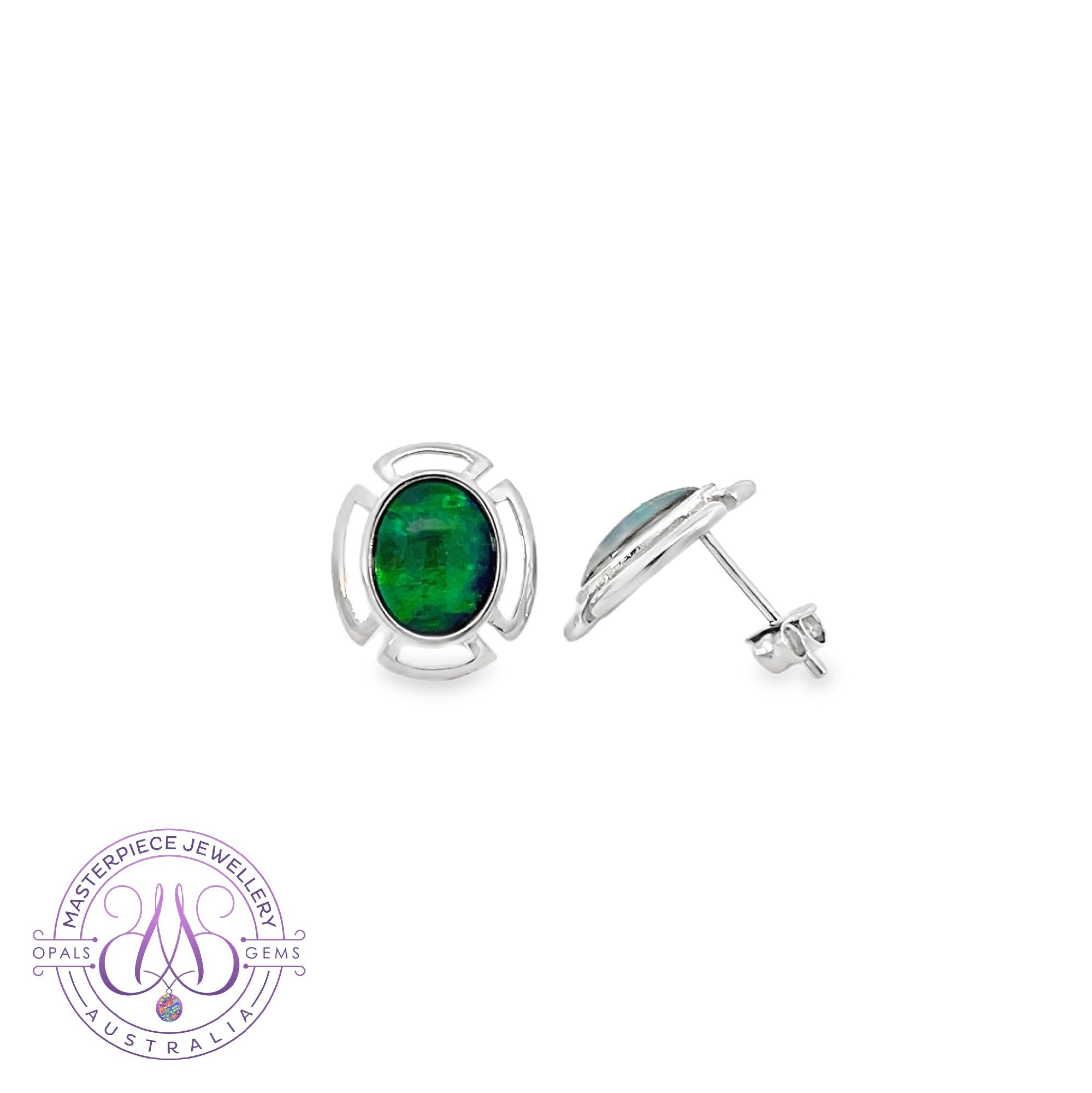 Pair of Sterling Silver 9x7mm Opal Triplet cut out earrings