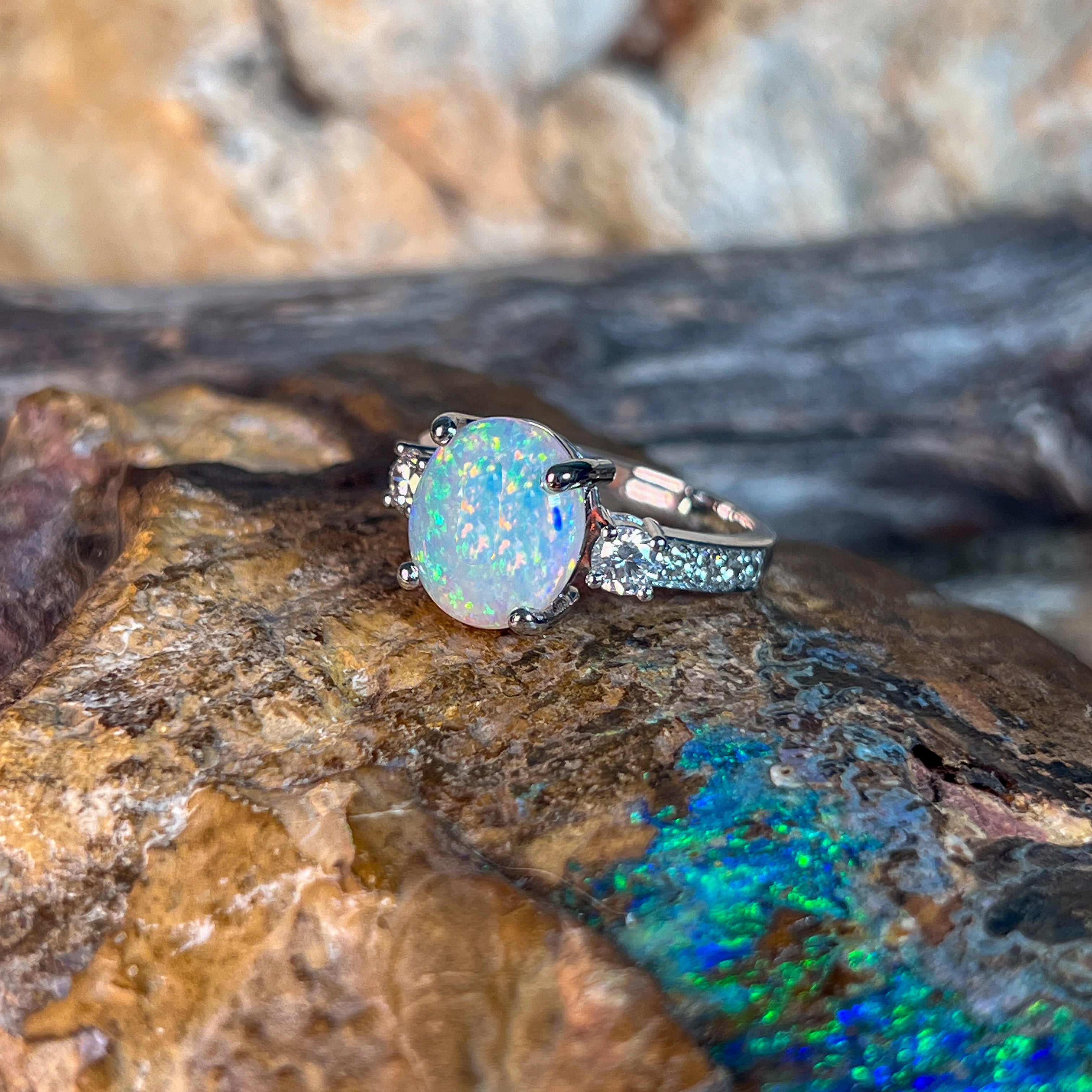 Platinum Crystal Opal 2.6ct and diamond ring