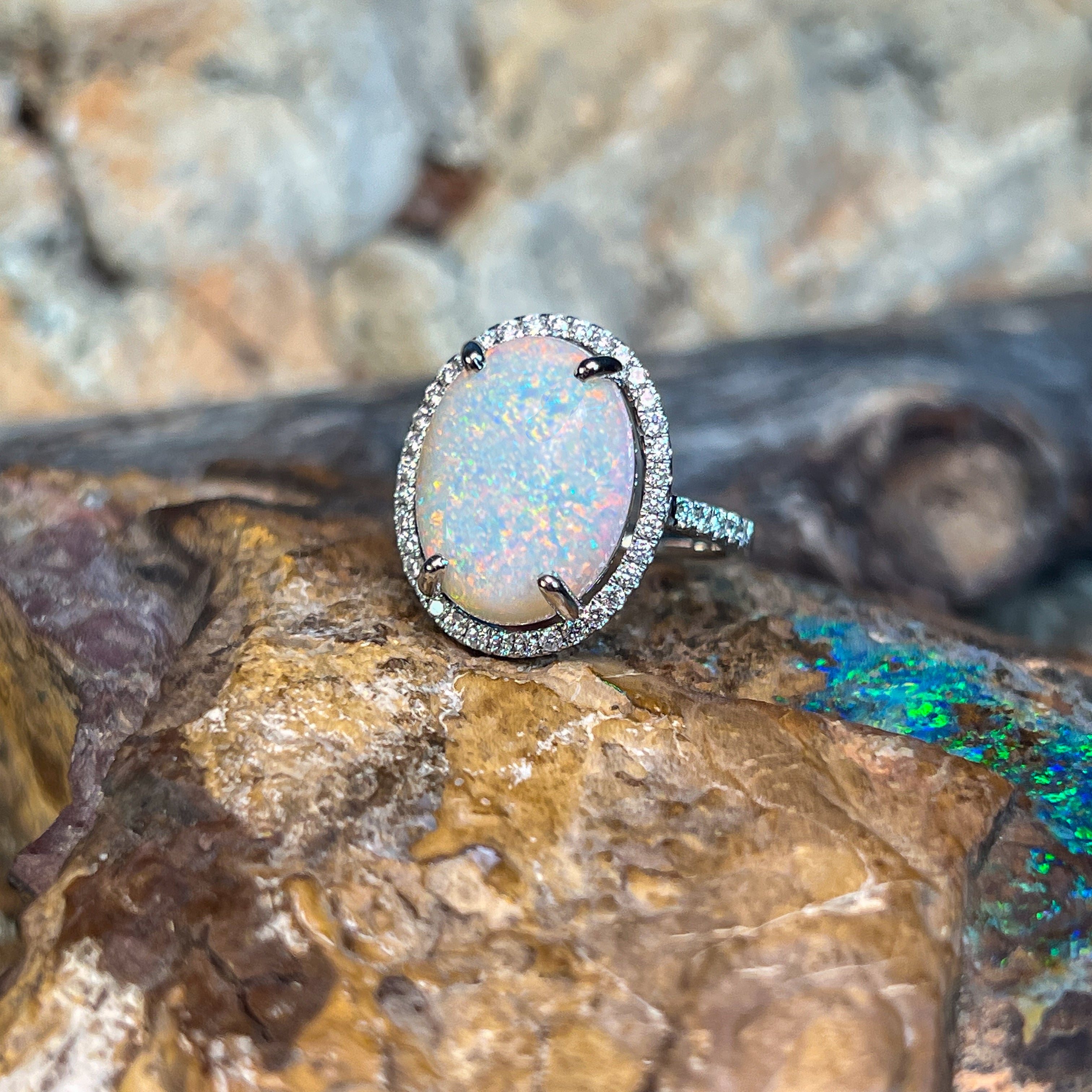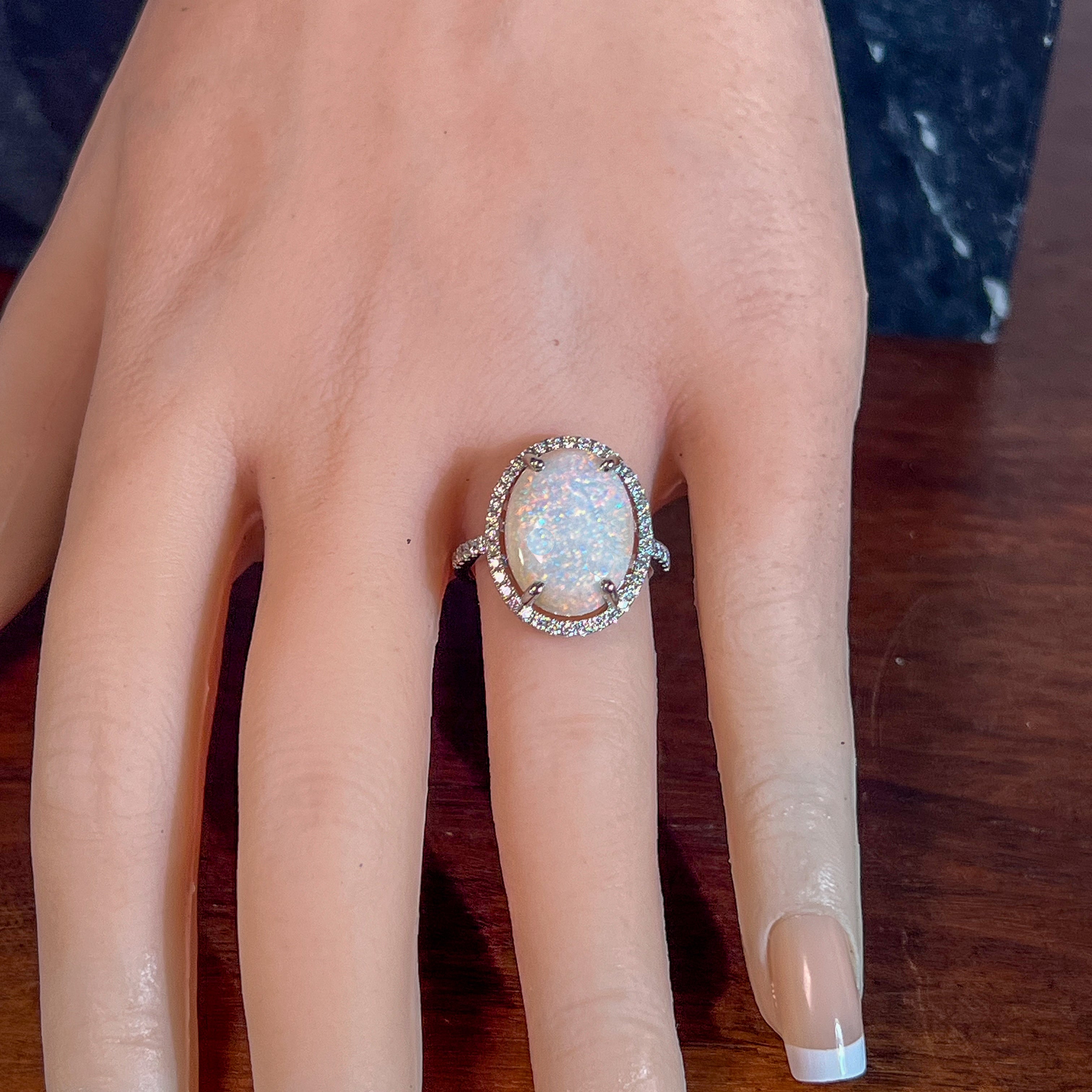 Platinum Halo White Opal 5.36ct and diamond cluster ring
