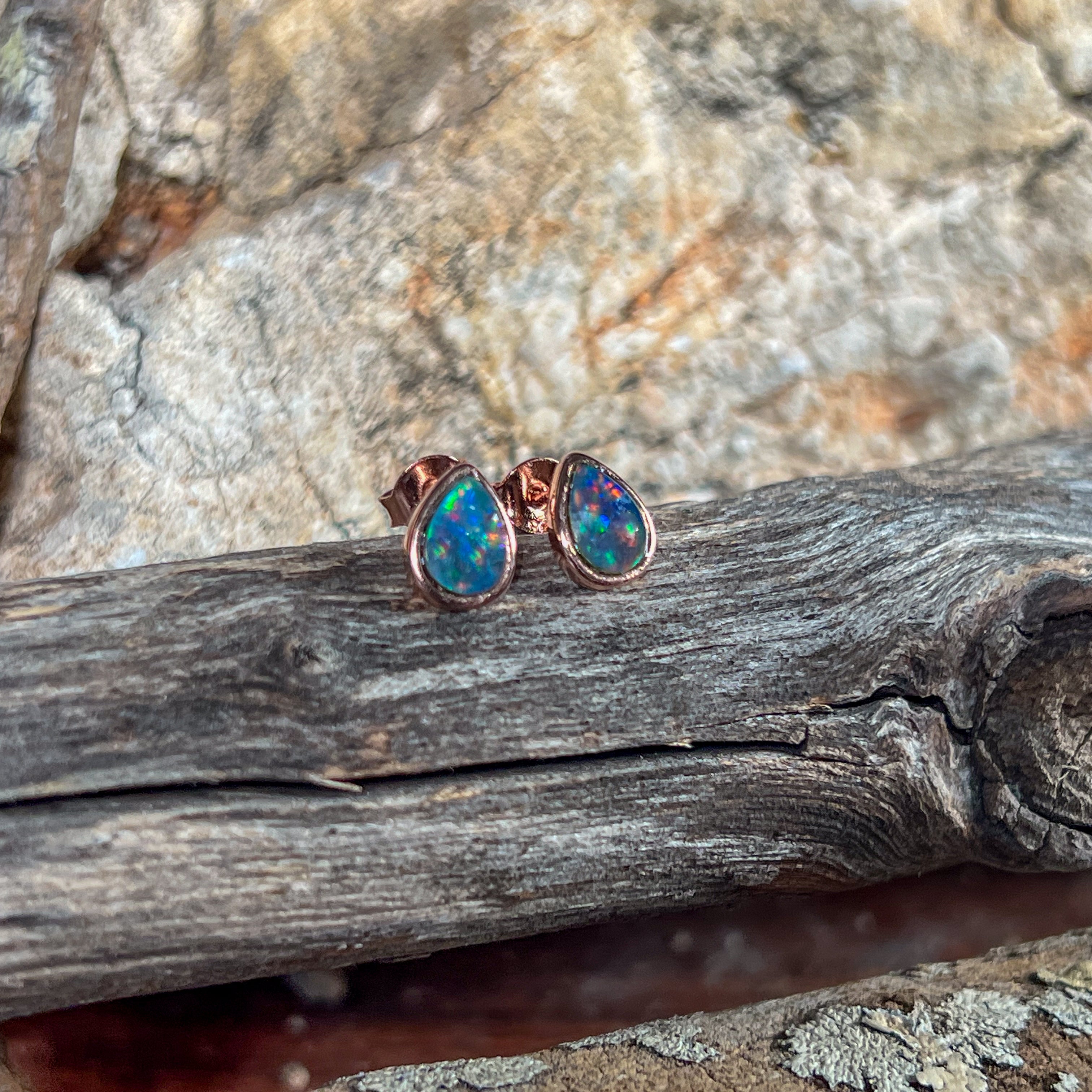 Rose Gold plated 8x5mm Opal Triplet pear shape bezel studs