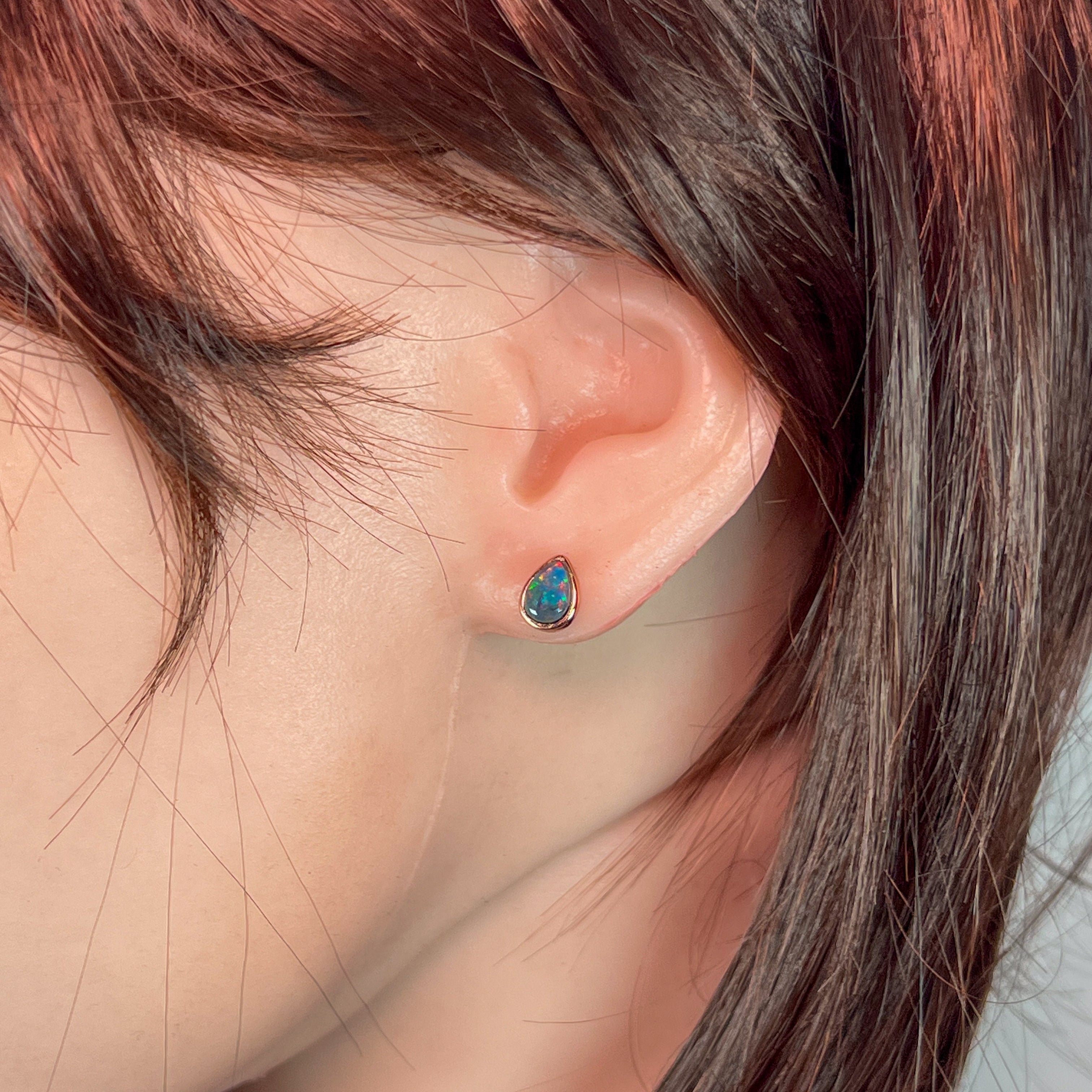 These petite rose gold plated studs feature 8x5mm pear-shaped opal triplets that shimmer with captivating multi-colours. Their delicate bezel setting ensures durability while showcasing the stones’ vibrant play of colour. Perfect for adding a subtle yet elegant touch to any outfit, these earrings bring timeless charm and radiant beauty to your everyday style.